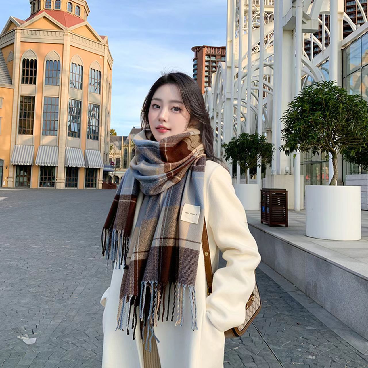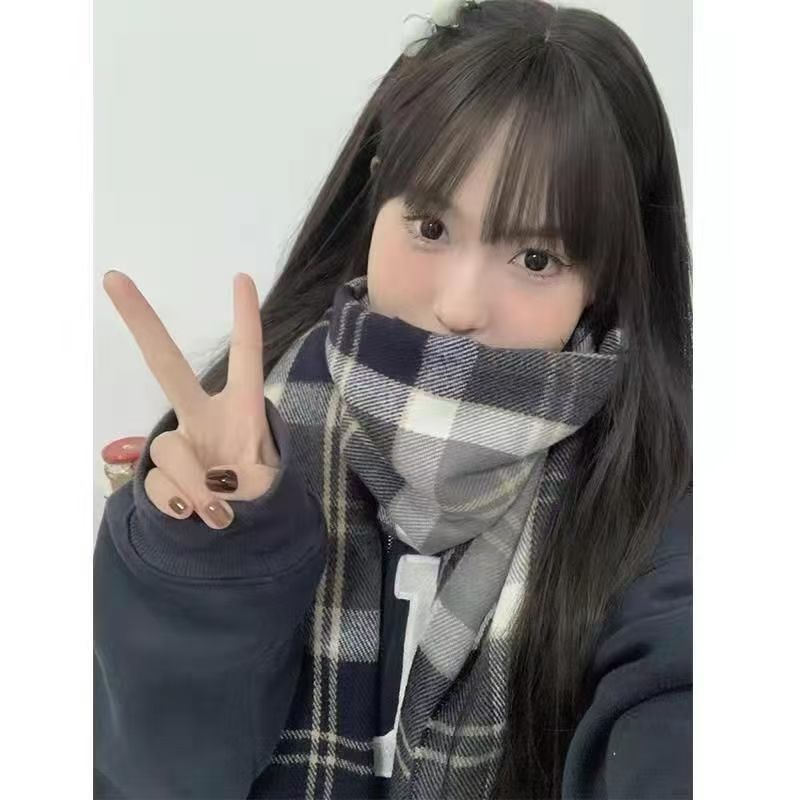 2024 년 새 가을 겨울 스카프 패션 올매치 한국 스타일 격자 두꺼운 남녀 학생 스카프 커플 따뜻한 목도리스토어 가기