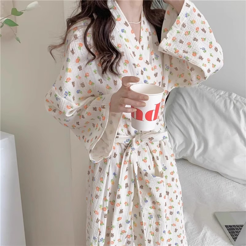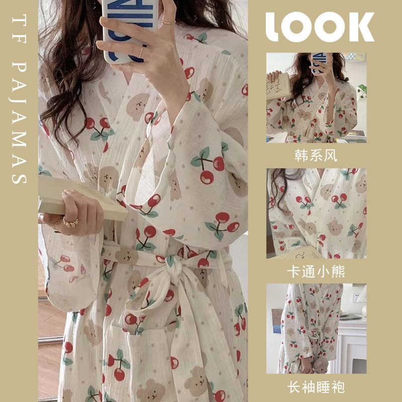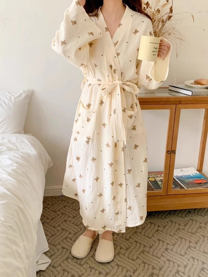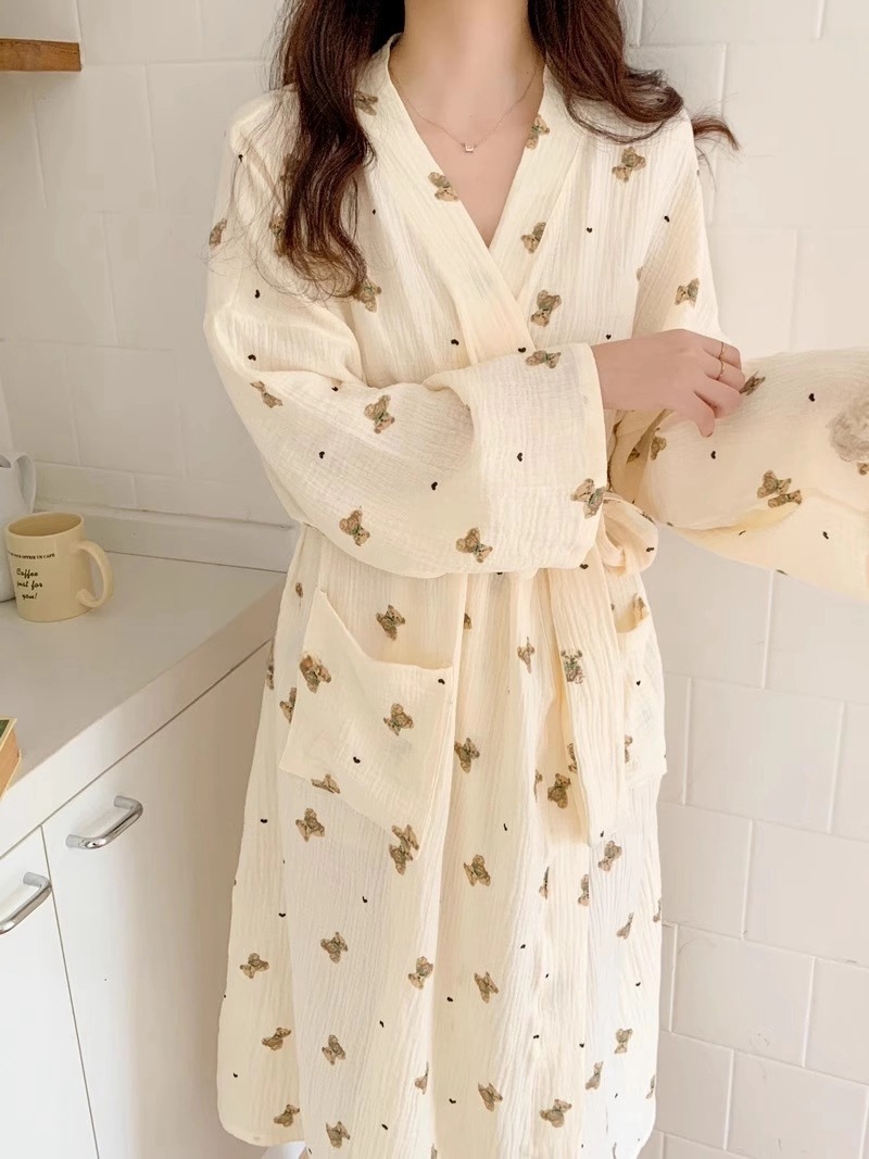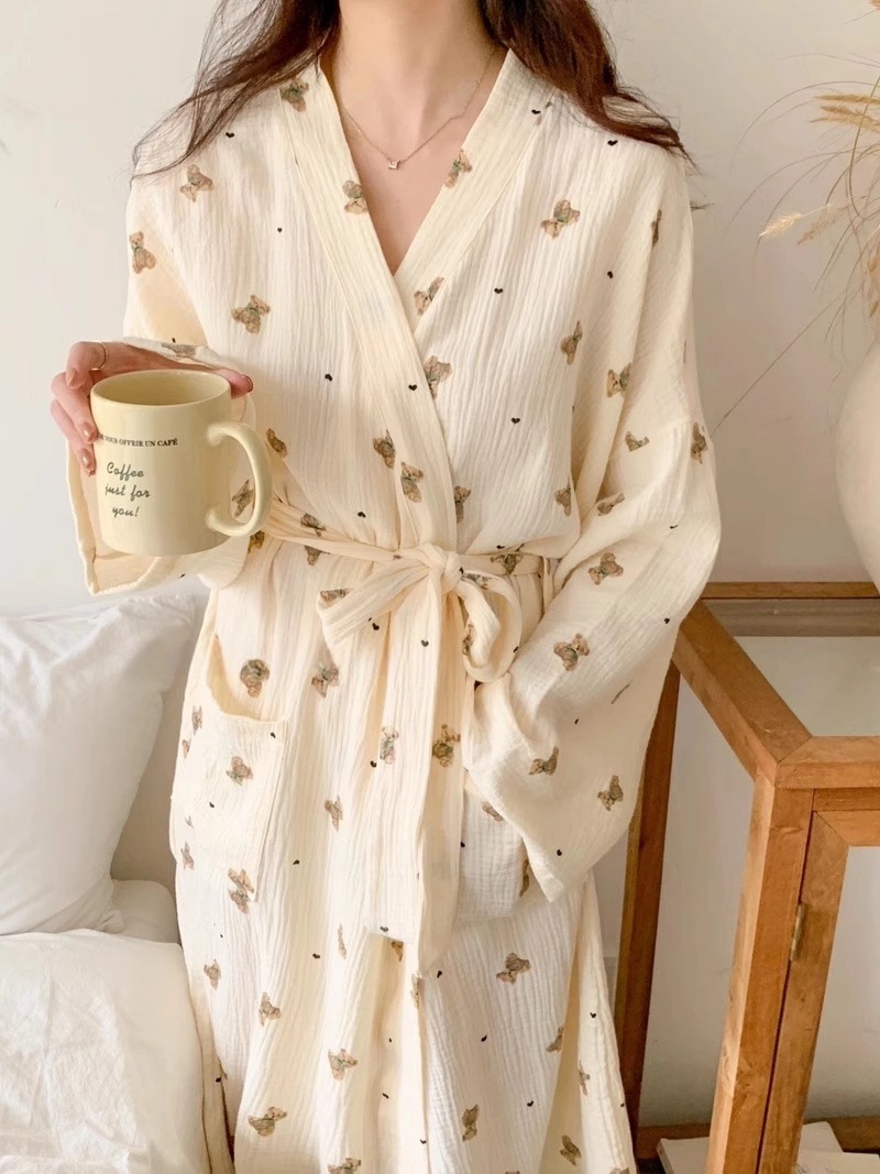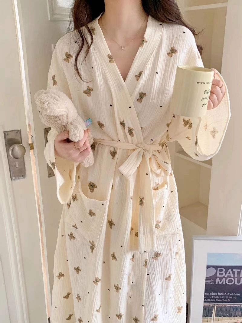 가을 만화 귀여운 Ins Bear 인쇄 목욕 가운 잠옷 여성 봄과 가을 긴 소매 홈 옷스토어 가기