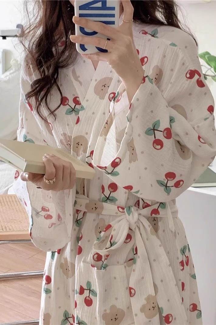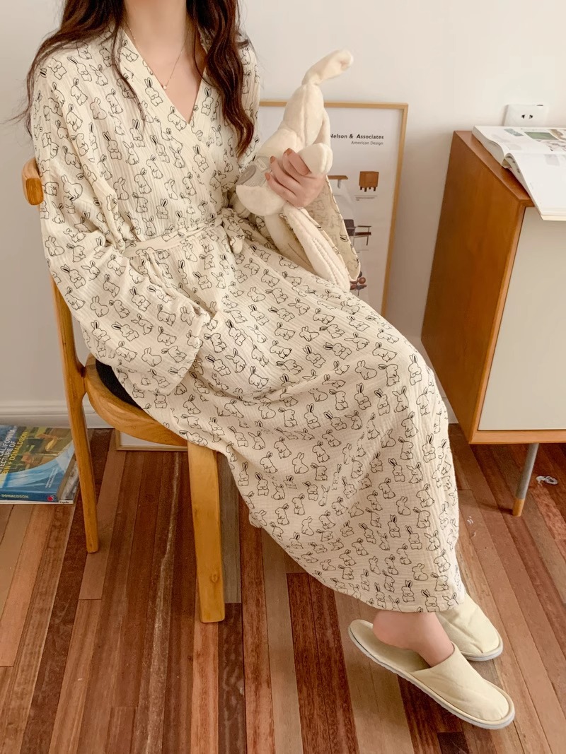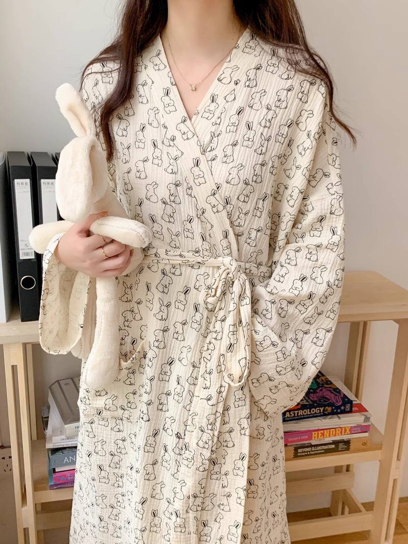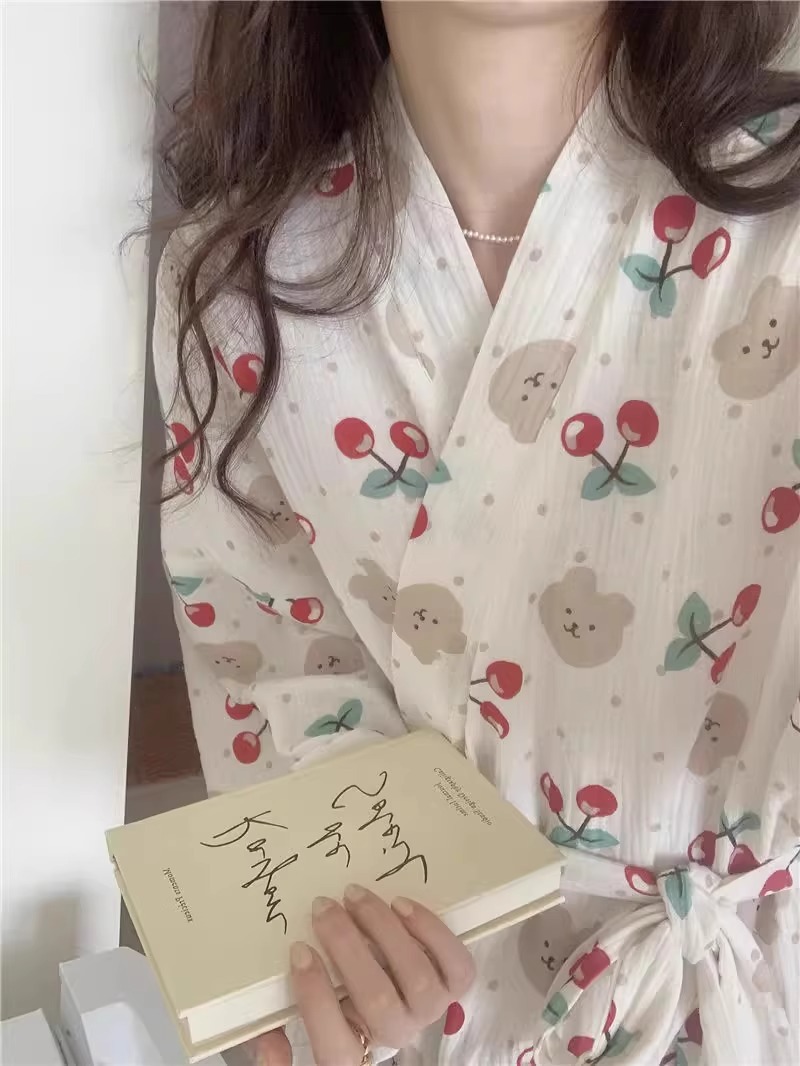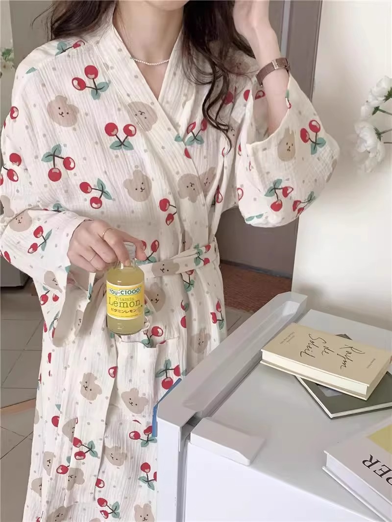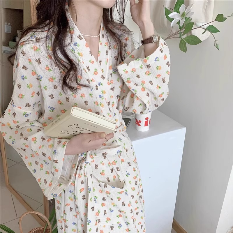 가을 만화 귀여운 Ins Bear 인쇄 목욕 가운 잠옷 여성 봄과 가을 긴 소매 홈 옷스토어 가기