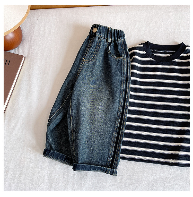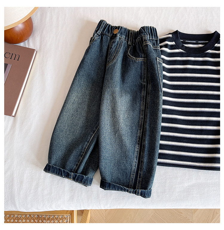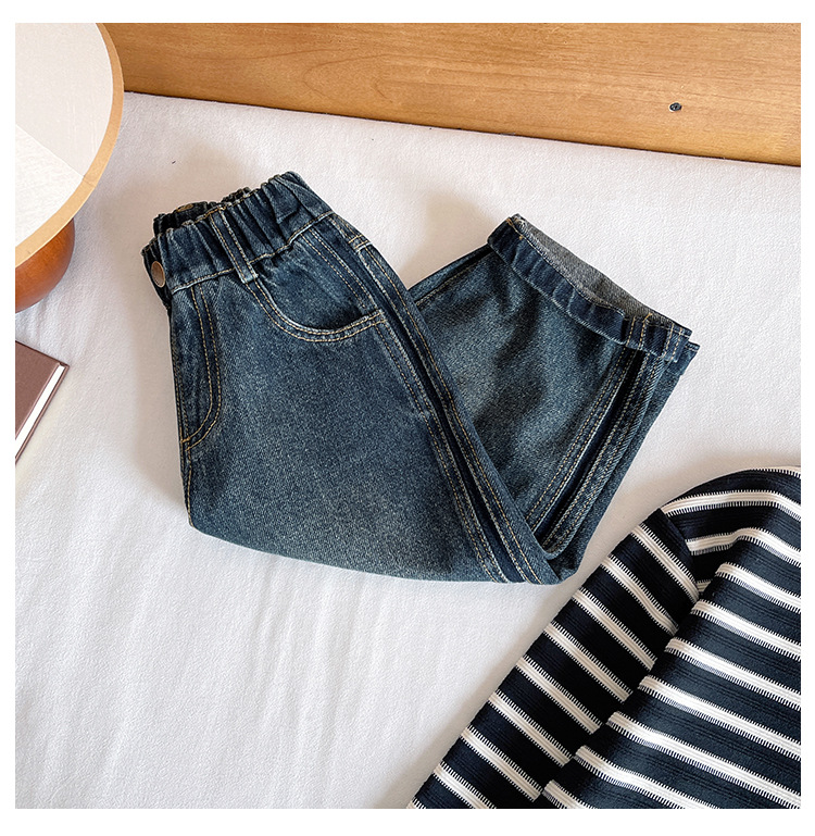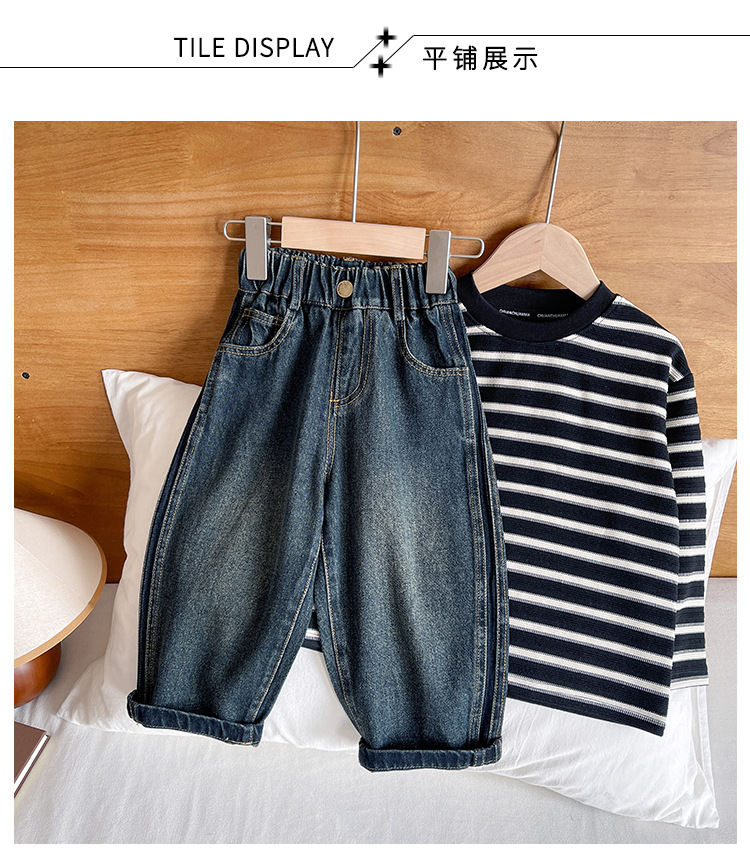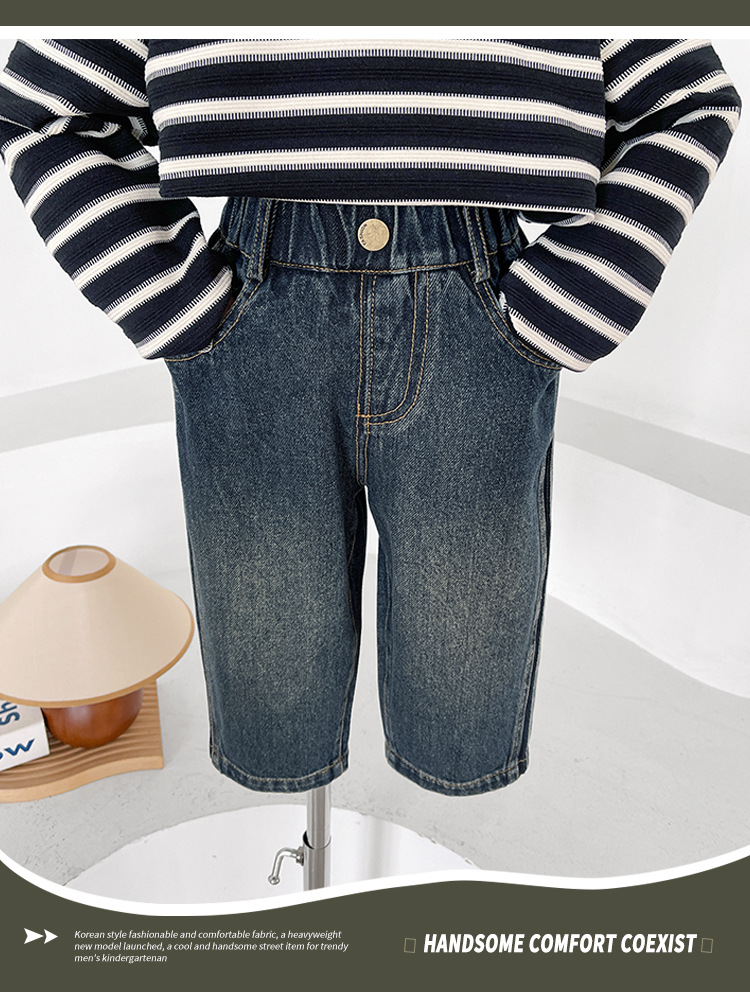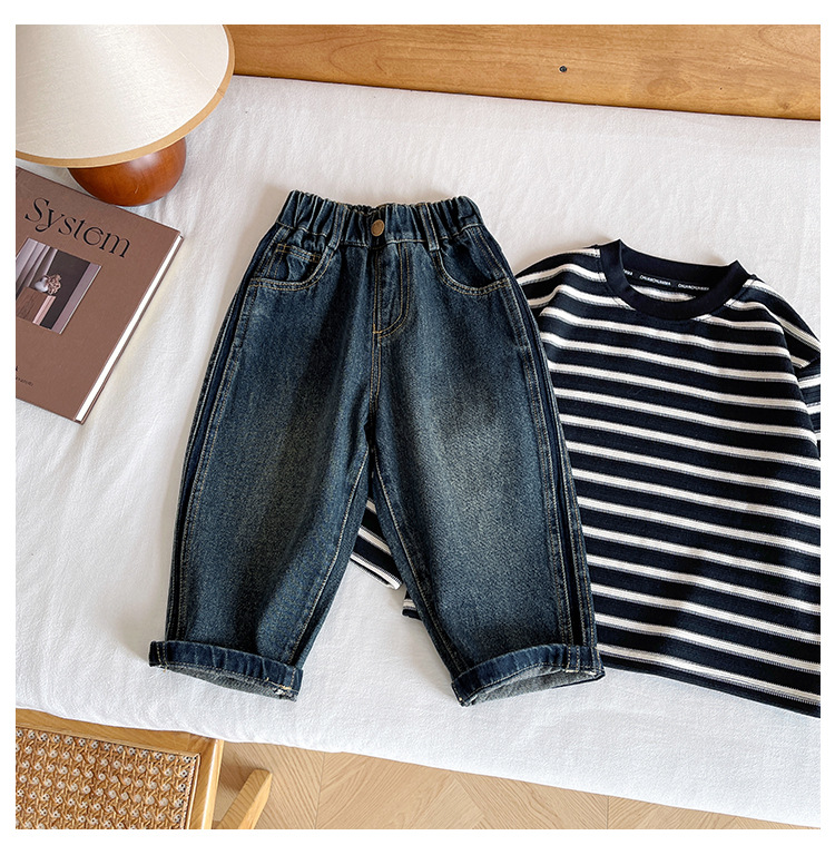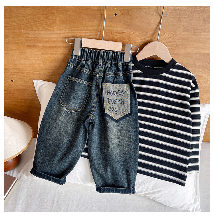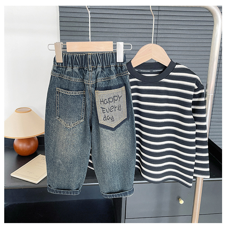 윈드 밸리 2024 가을 새 어린이 바지 한국 스타일 맞춤형 편지 포켓 청바지 소년을위한 복고풍 바지