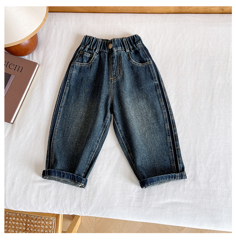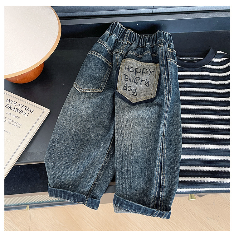 윈드 밸리 2024 가을 새 어린이 바지 한국 스타일 맞춤형 편지 포켓 청바지 소년을위한 복고풍 바지스토어 가기