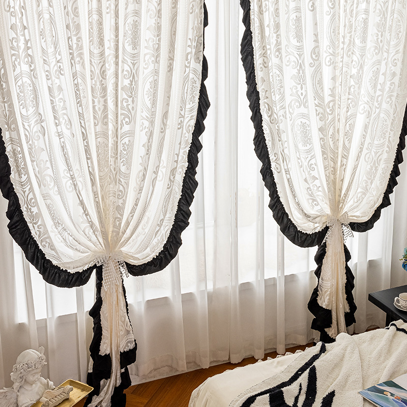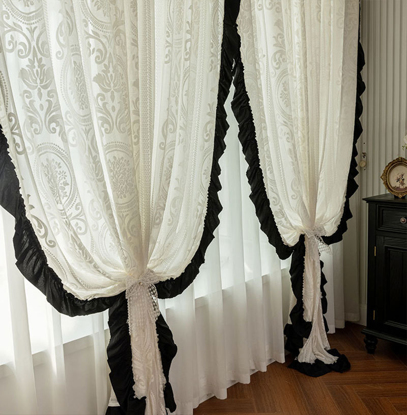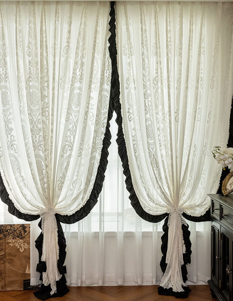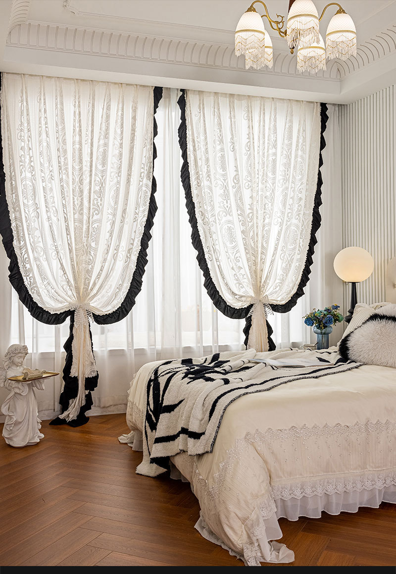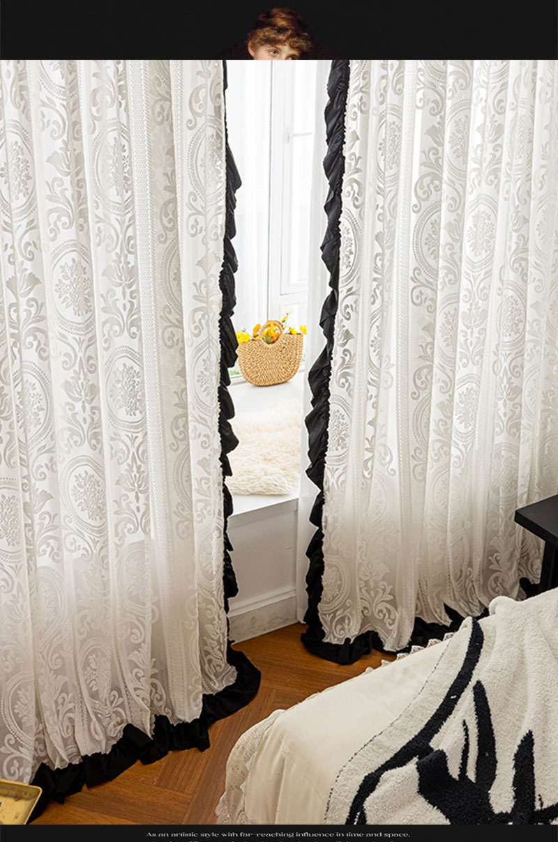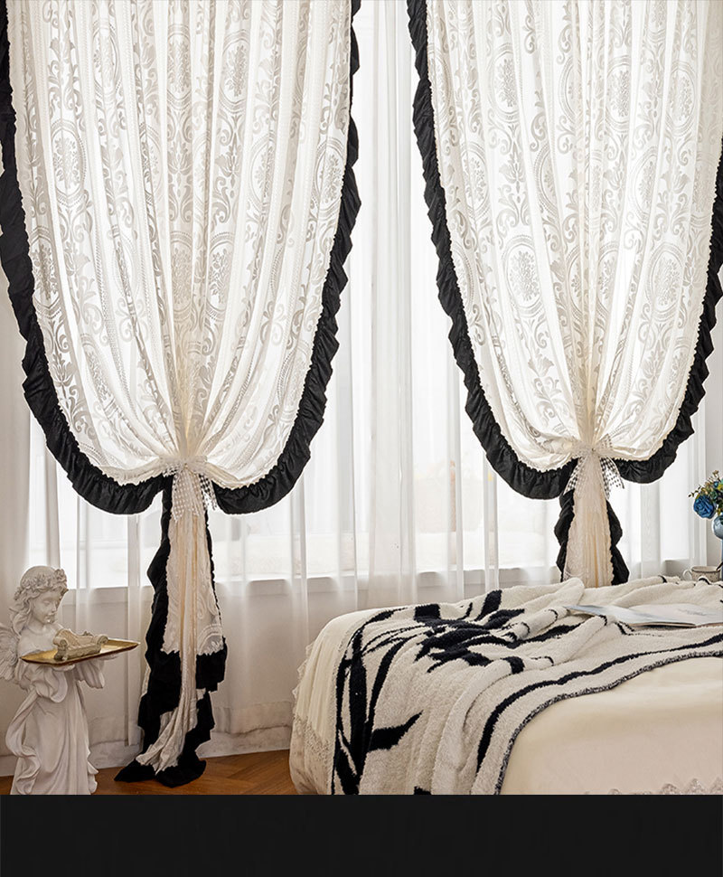 프렌치 레트로 양각 로즈 레트로 레이스 쉬운 블랙 레이스 투명 실내 장식 창 화면
