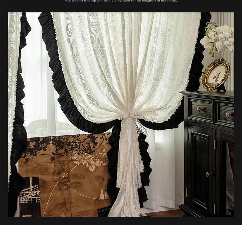 프렌치 레트로 양각 로즈 레트로 레이스 쉬운 블랙 레이스 투명 실내 장식 창 화면스토어 가기
