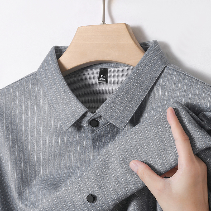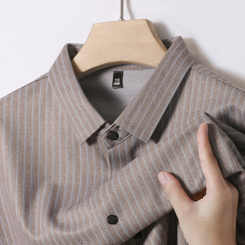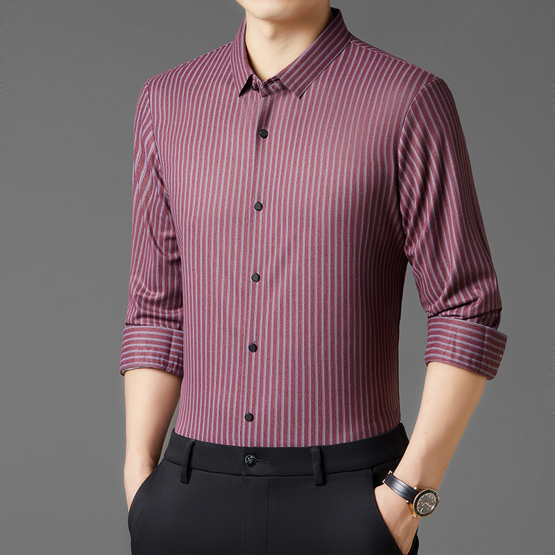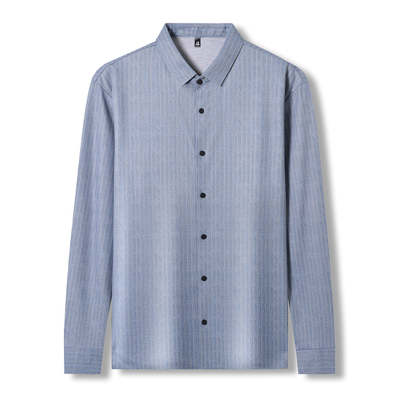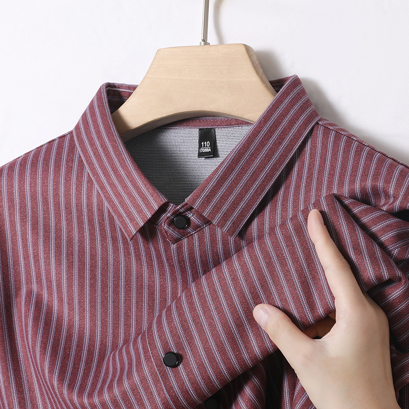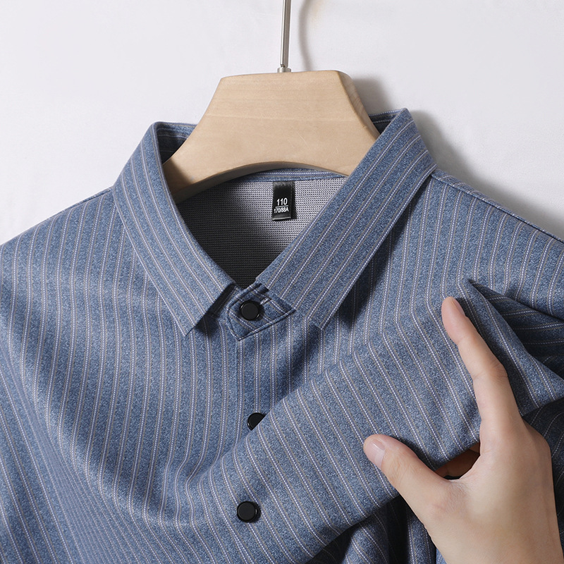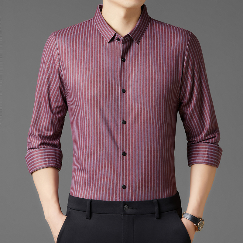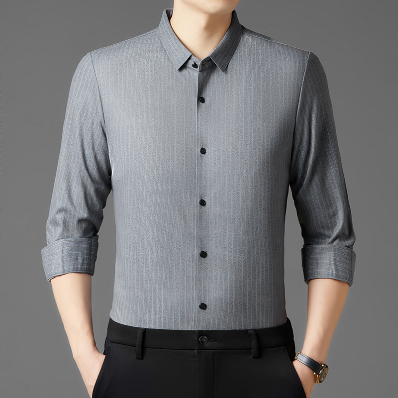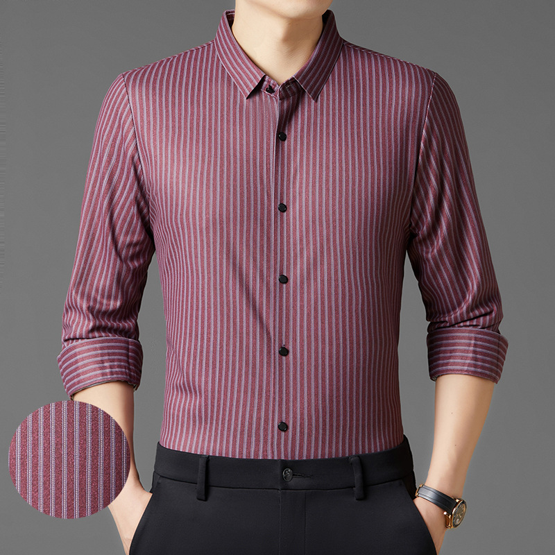 봄과 가을 남성 줄무늬 긴팔 셔츠 중년 비즈니스 캐주얼 양모 비 주름 방지 탄성 비 표시 셔츠