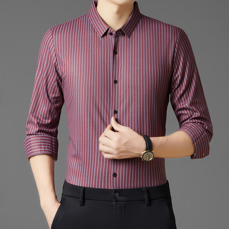 봄과 가을 남성 줄무늬 긴팔 셔츠 중년 비즈니스 캐주얼 양모 비 주름 방지 탄성 비 표시 셔츠스토어 가기