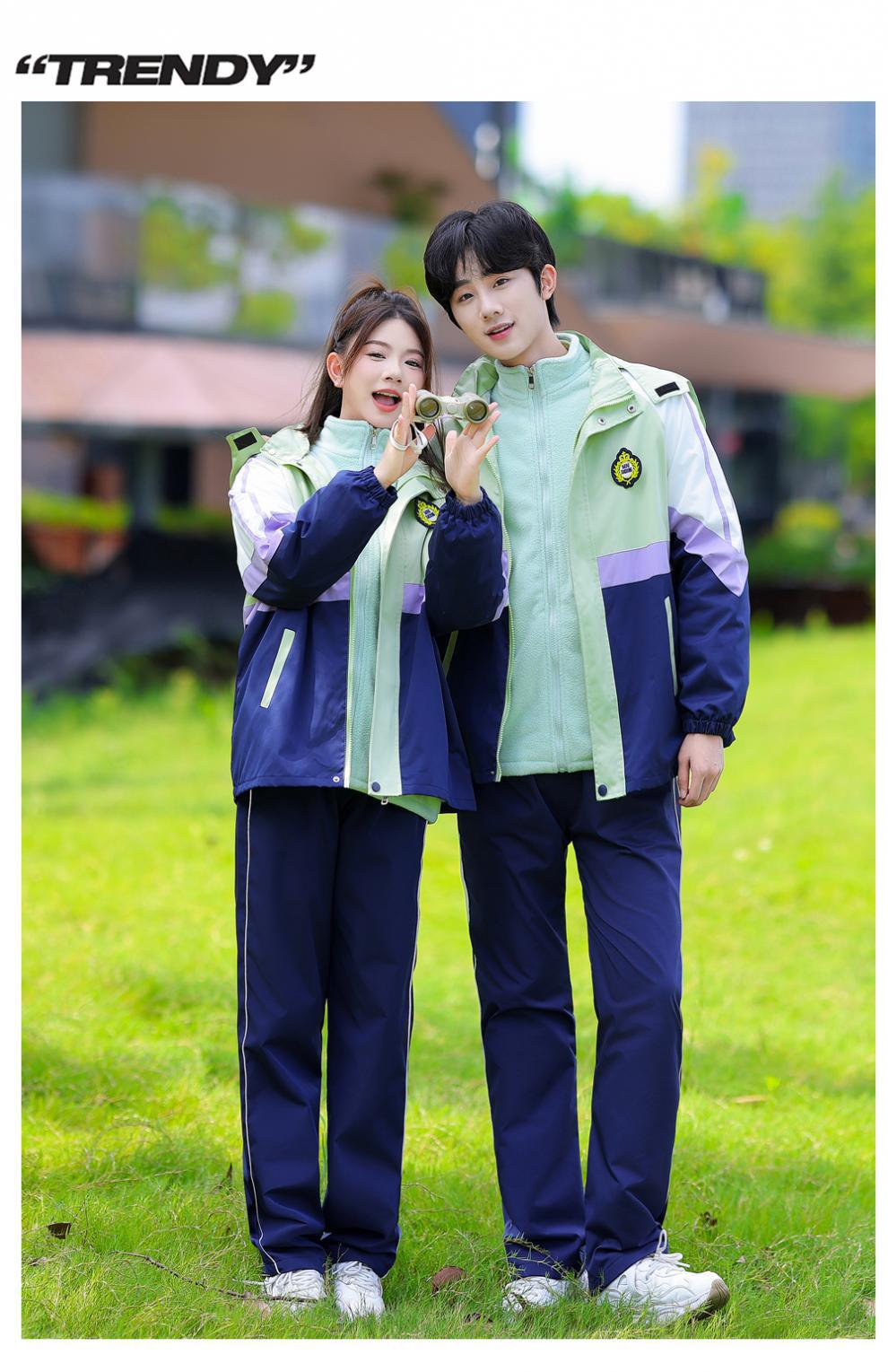 2024 년 가을 커플 원피스 학생 수업 유니폼 학교 유니폼 3 피스 재킷 바지 티셔츠 마오