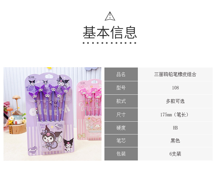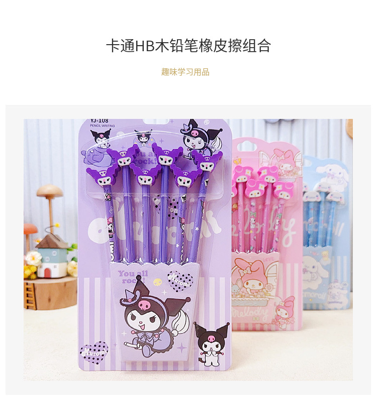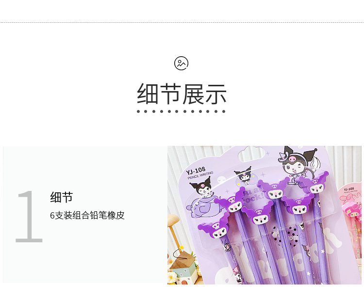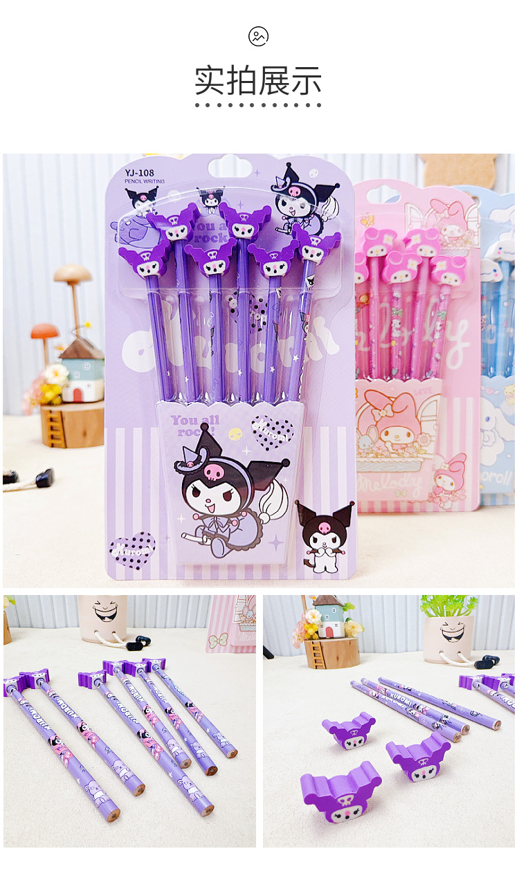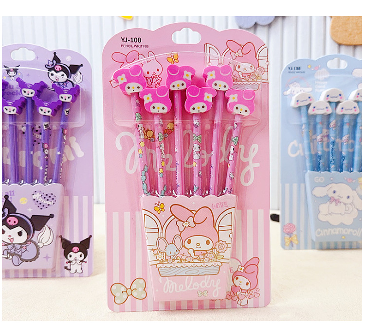 만화 6 팩 HB 연필 초등학교 아이들의 새로운 산리오 3 차원 지우개 조합 세트 문구스토어 가기