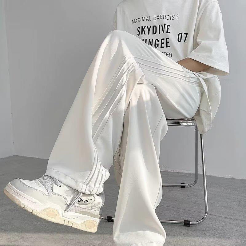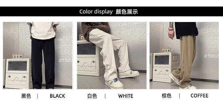 여름 트렌디 브랜드 느슨한 미국 스타일 레트로 바지 남성 디자인 센스 틈새 투약 센스 스트레이트 캐주얼 스포츠 바지