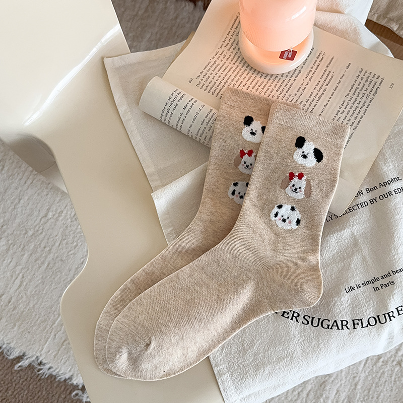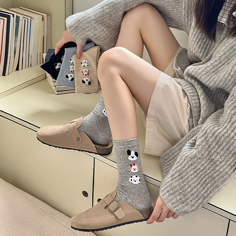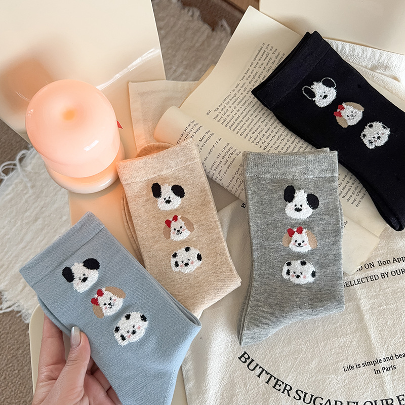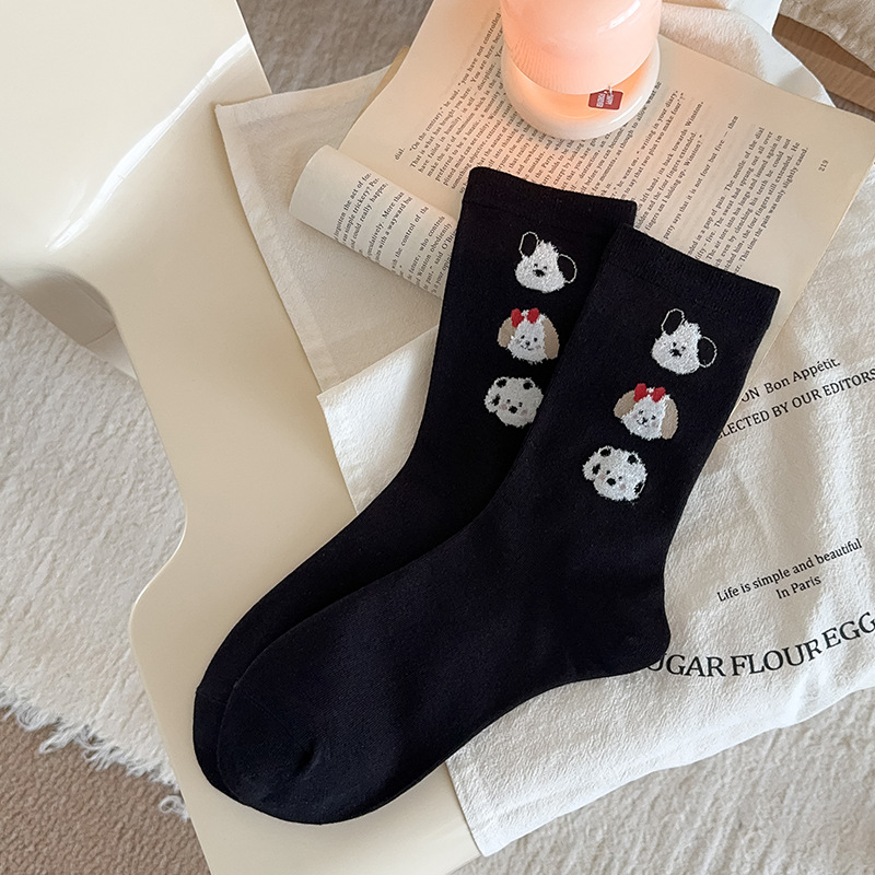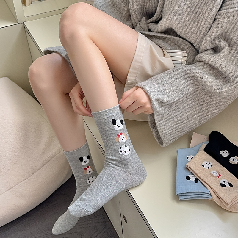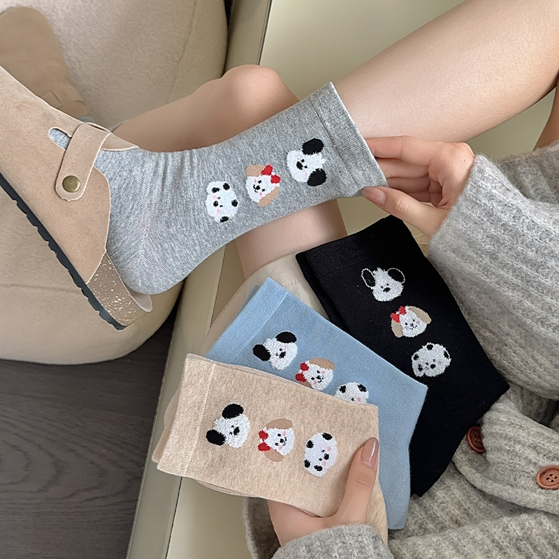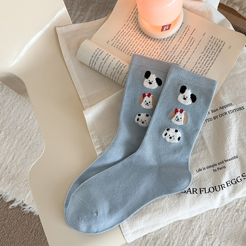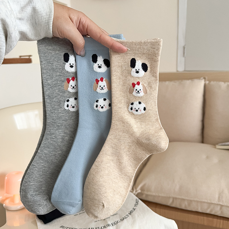 순면 잠금 양말 여성의 귀여운 만화 일본 스타일 3 차원 강아지 중간 길이 양말 가을과 겨울 인터넷 빨간 창조적 인 강아지 스타킹스토어 가기