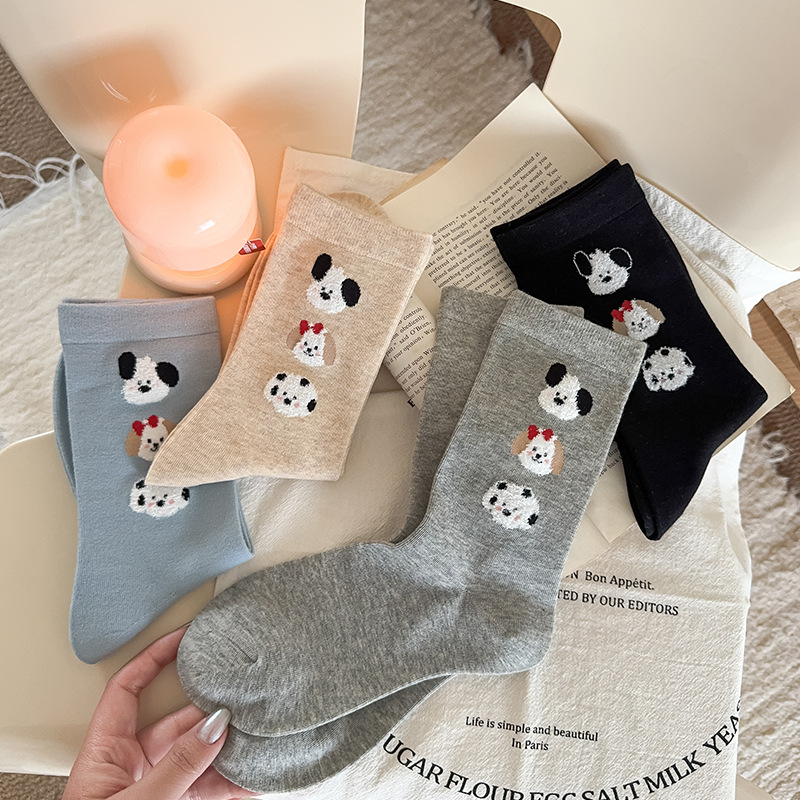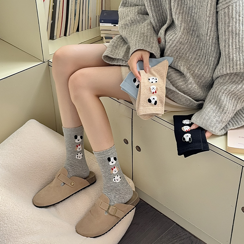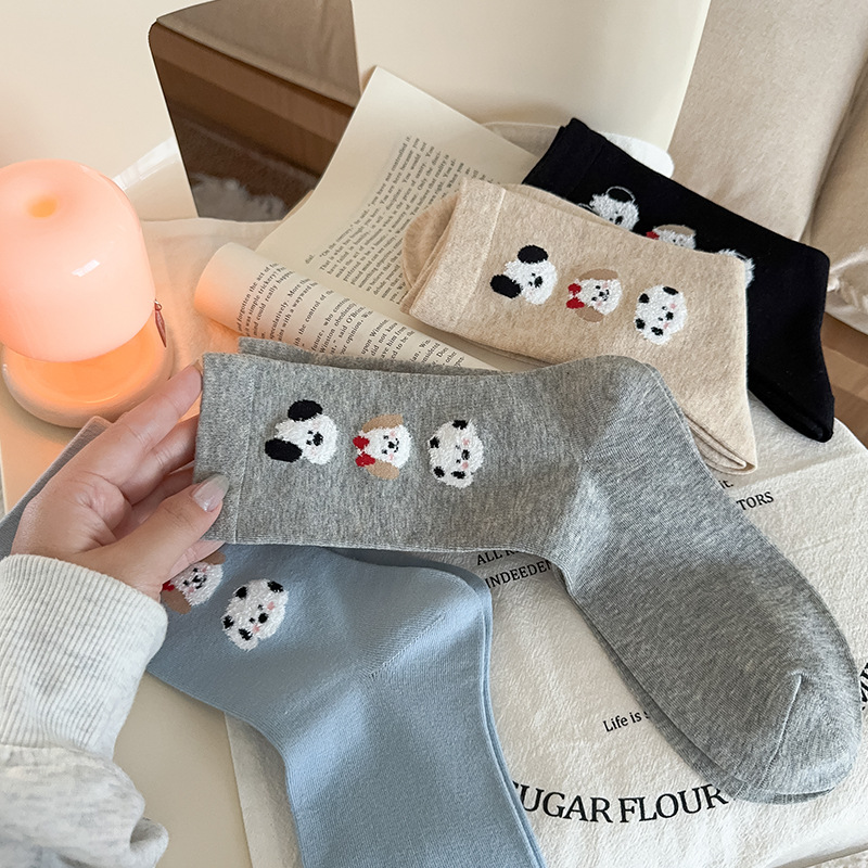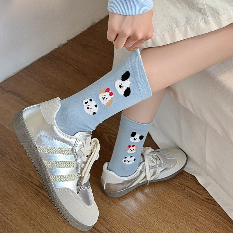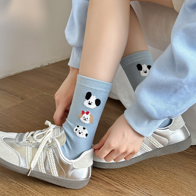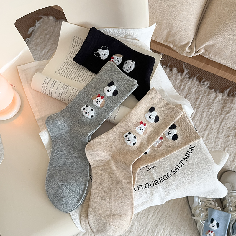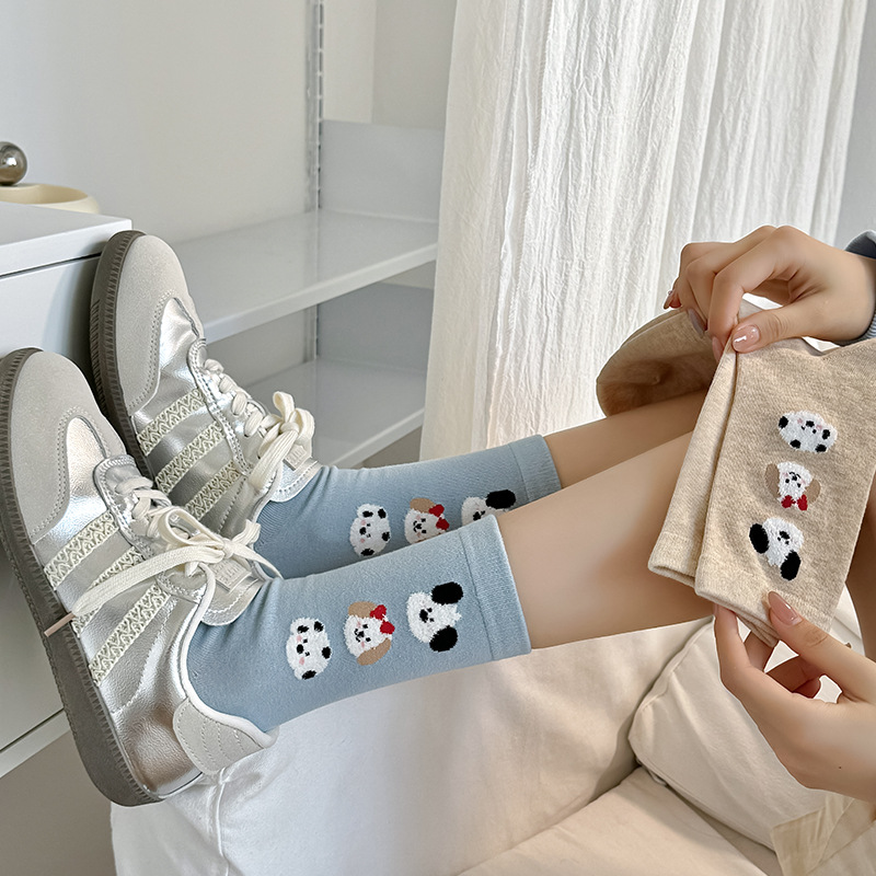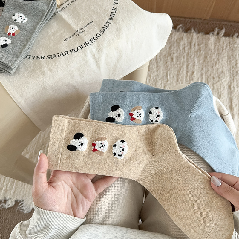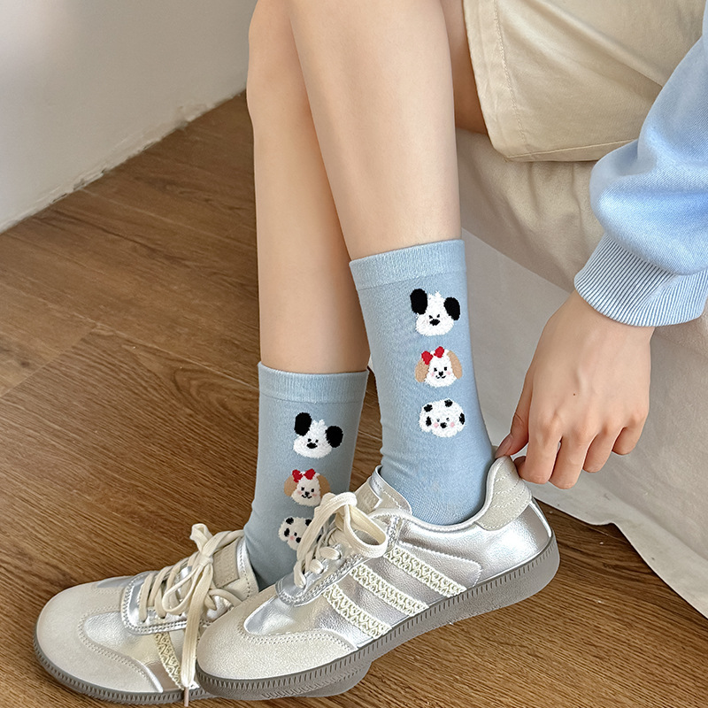 순면 잠금 양말 여성의 귀여운 만화 일본 스타일 3 차원 강아지 중간 길이 양말 가을과 겨울 인터넷 빨간 창조적 인 강아지 스타킹스토어 가기