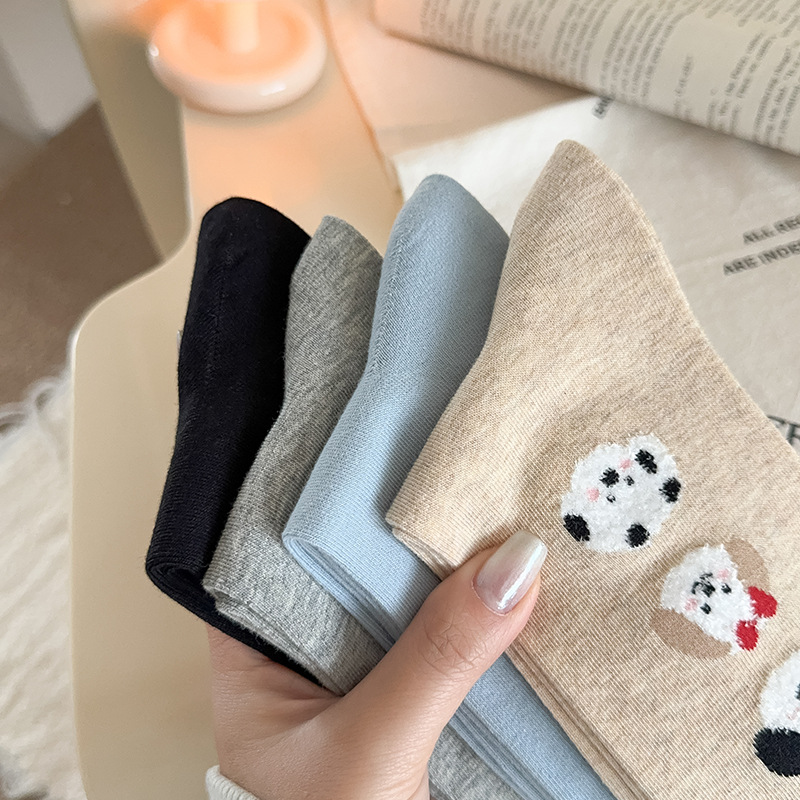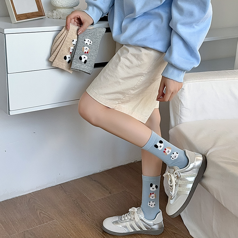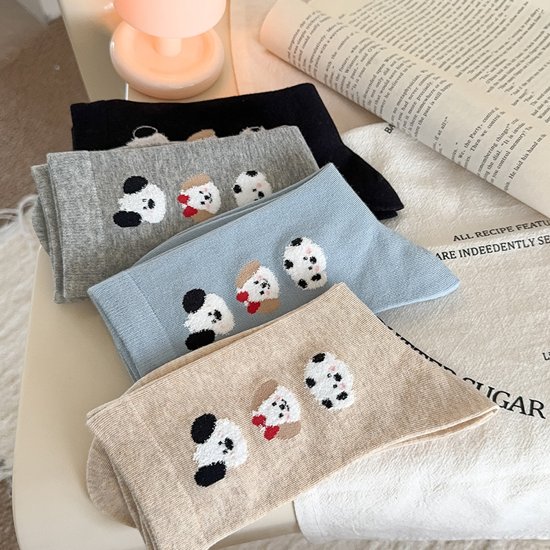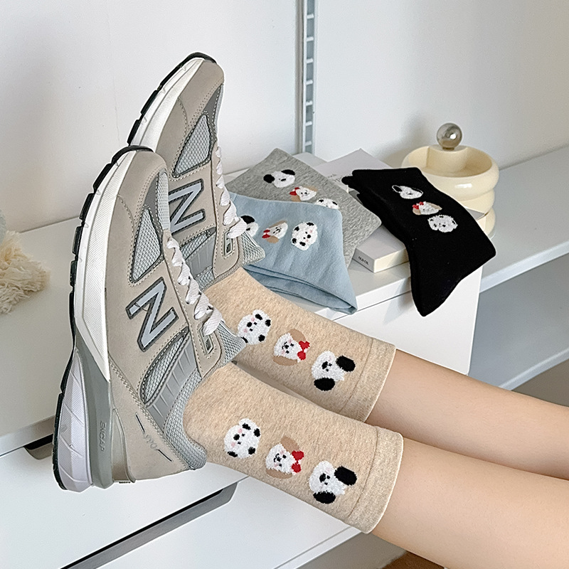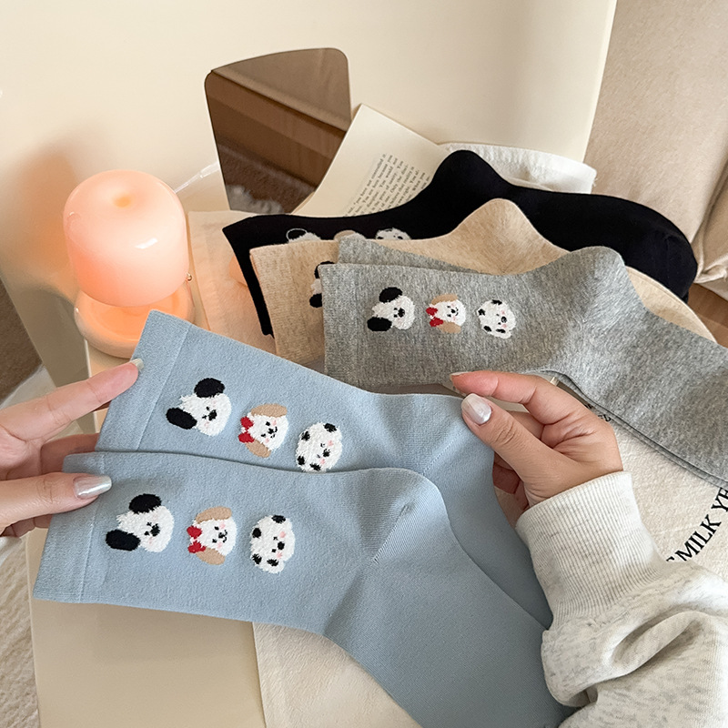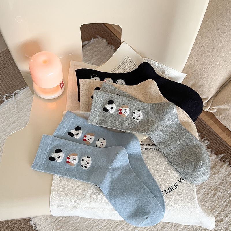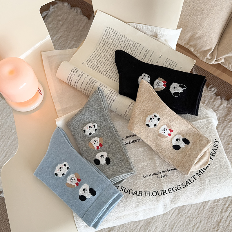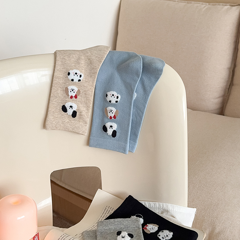 순면 잠금 양말 여성의 귀여운 만화 일본 스타일 3 차원 강아지 중간 길이 양말 가을과 겨울 인터넷 빨간 창조적 인 강아지 스타킹스토어 가기