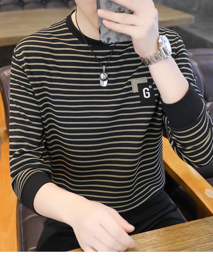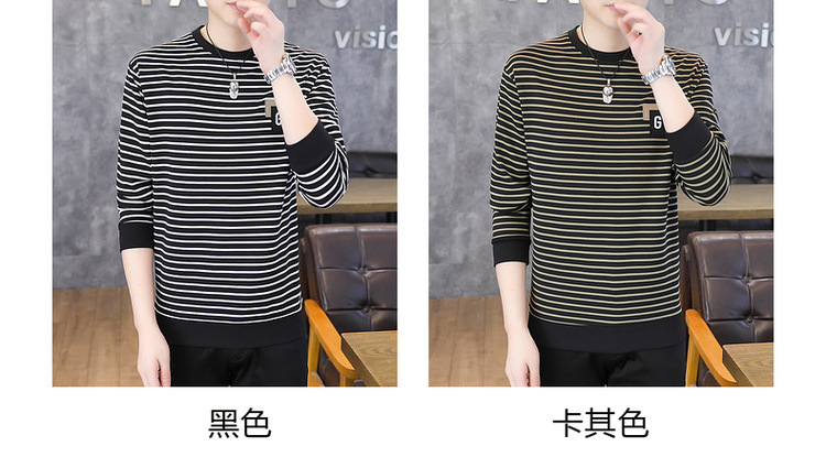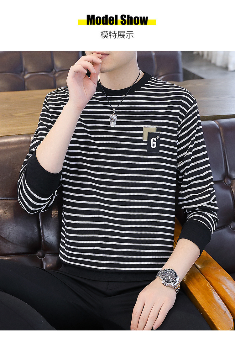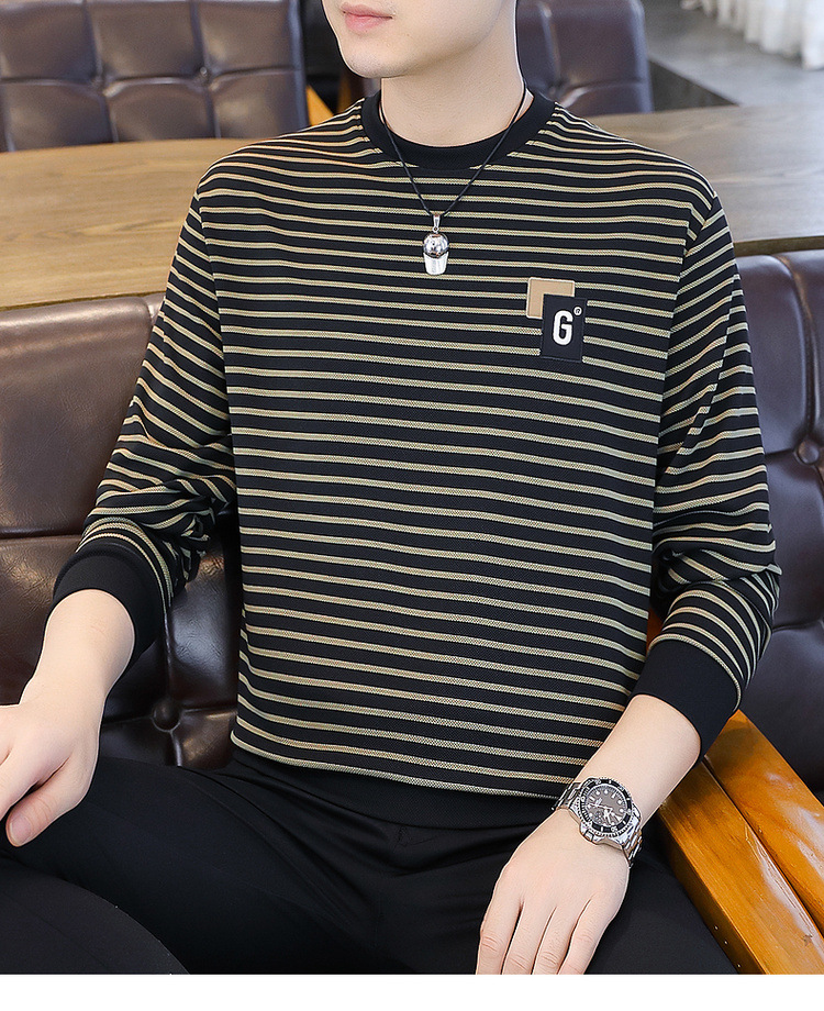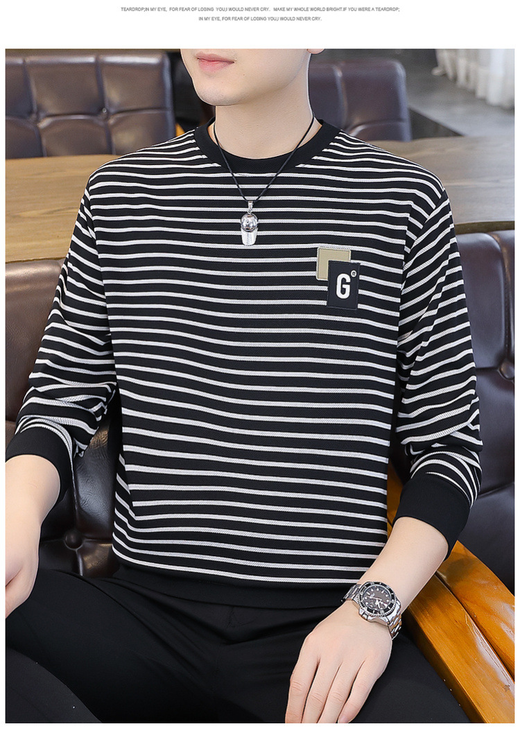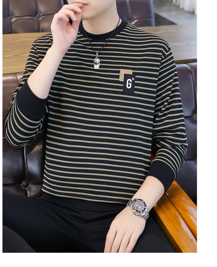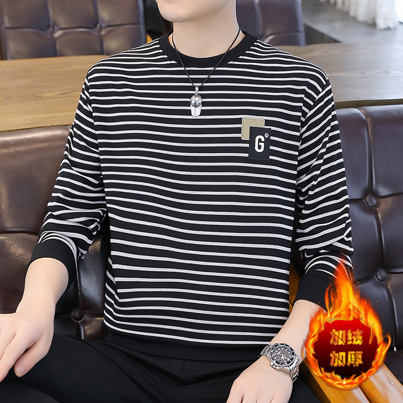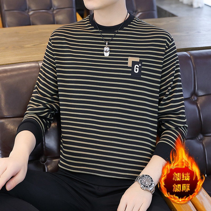 가을 겨울 신상 남성용 기모 스웨트셔츠, 캐주얼 라운드넥 긴팔 티셔츠, 남성용 스트라이프 루즈핏 아우터웨어