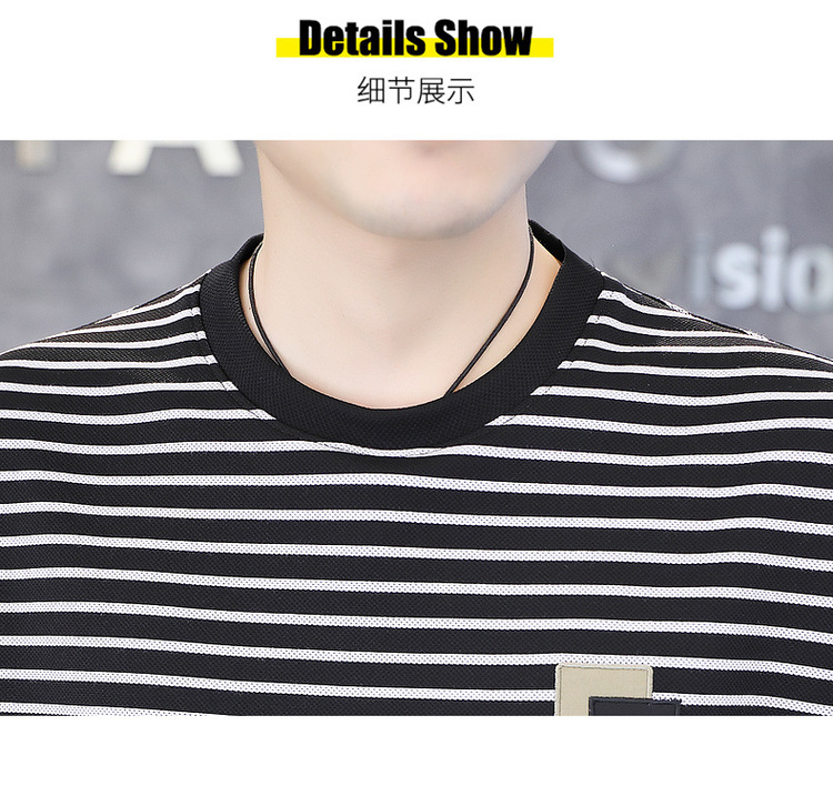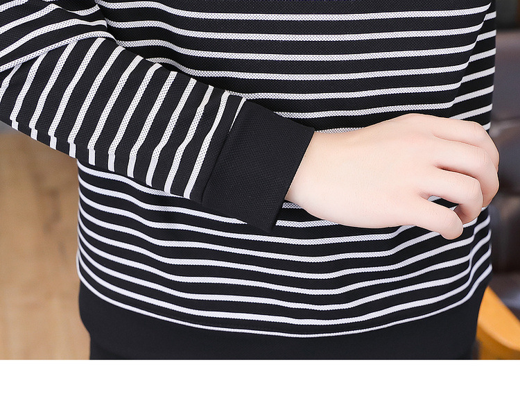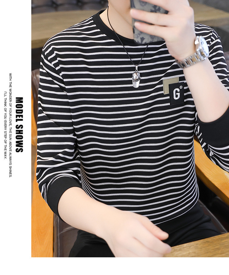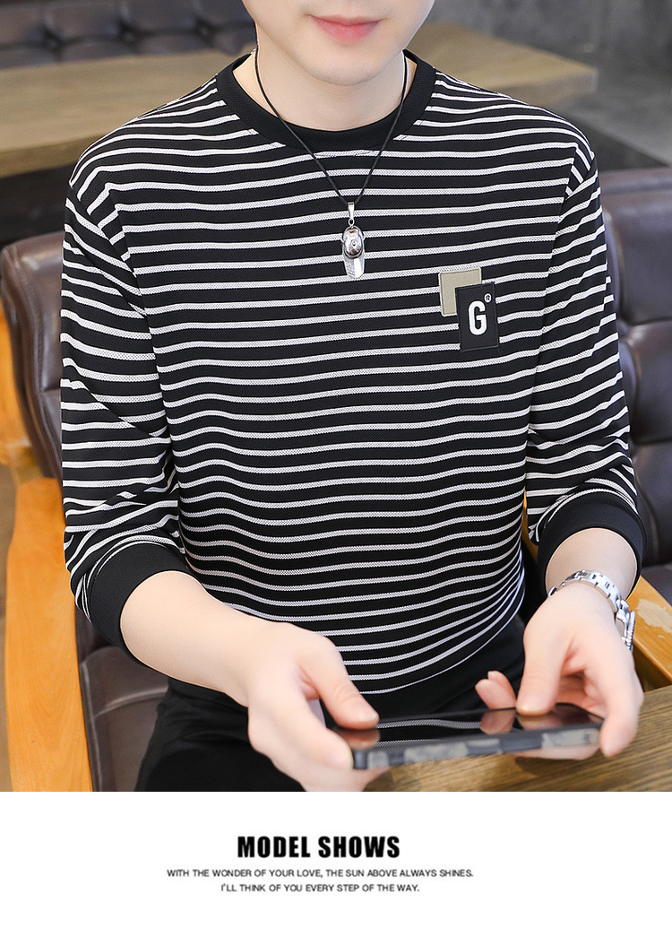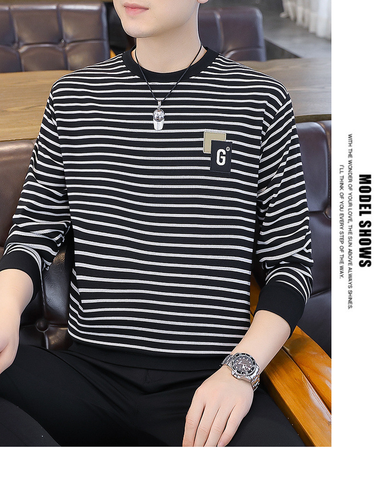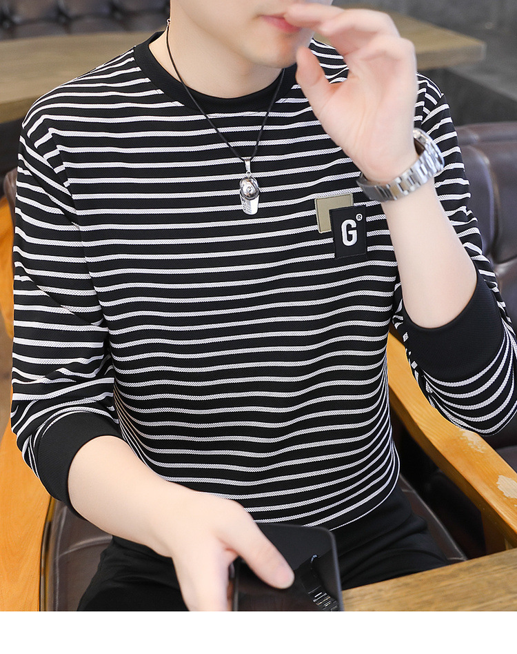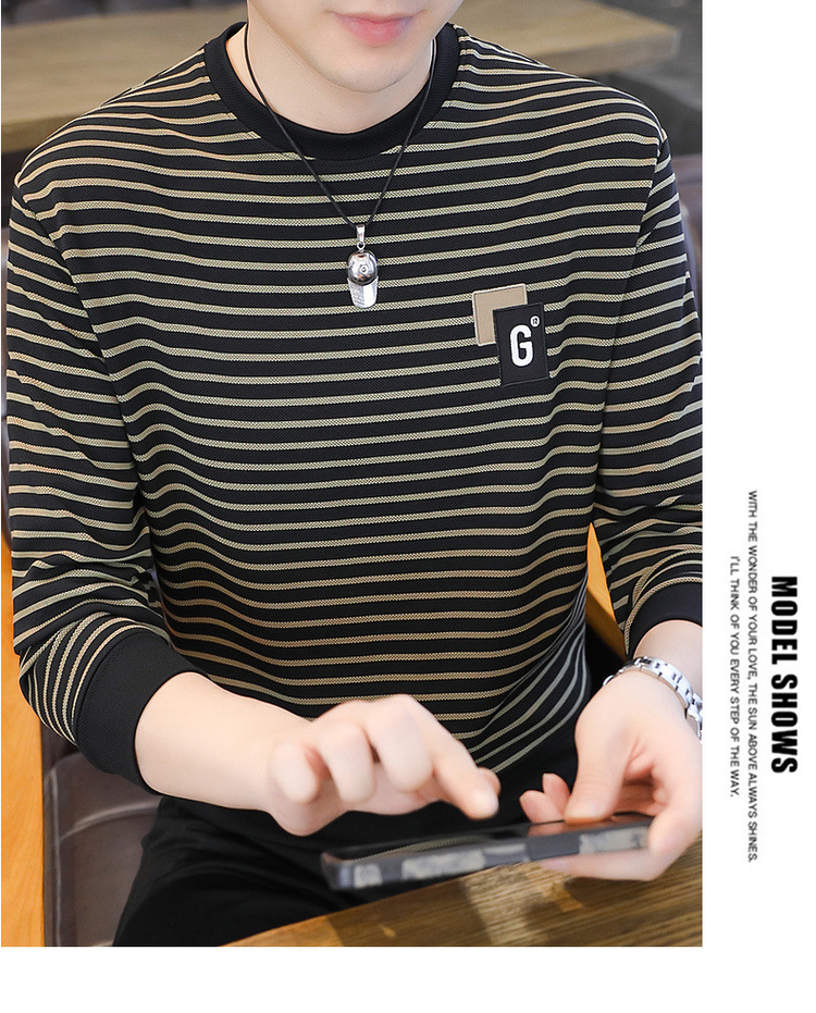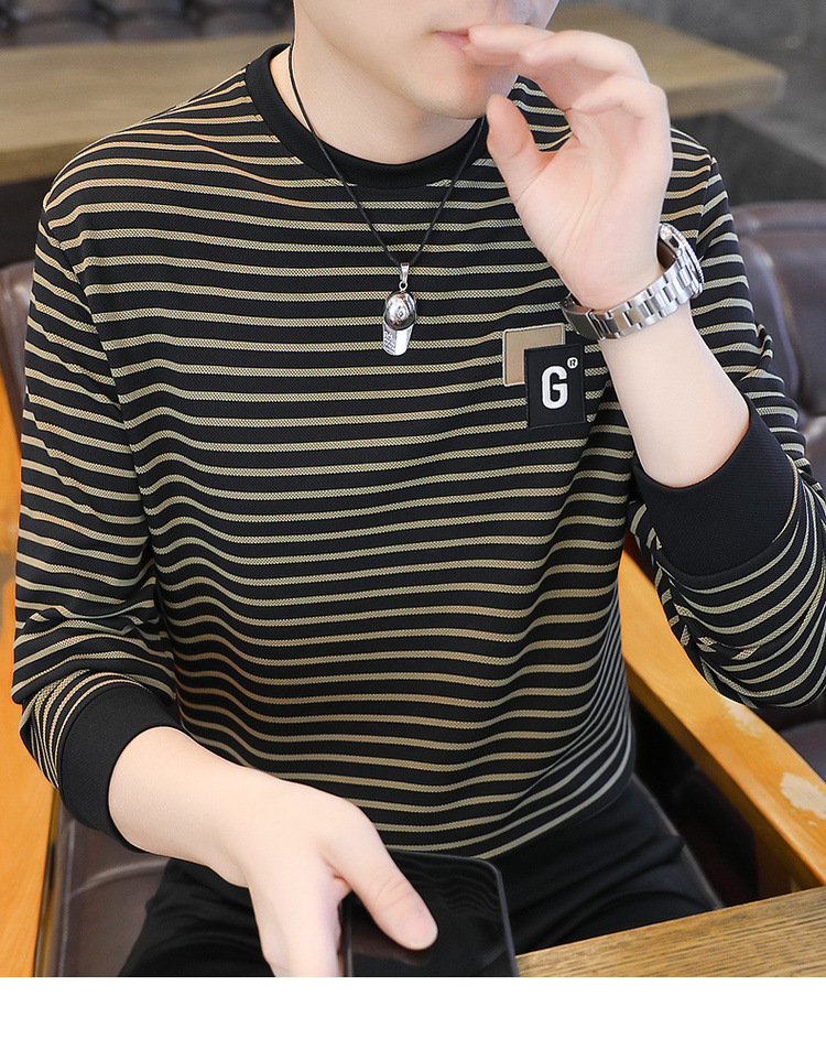 가을 겨울 신상 남성용 기모 스웨트셔츠, 캐주얼 라운드넥 긴팔 티셔츠, 남성용 스트라이프 루즈핏 아우터웨어