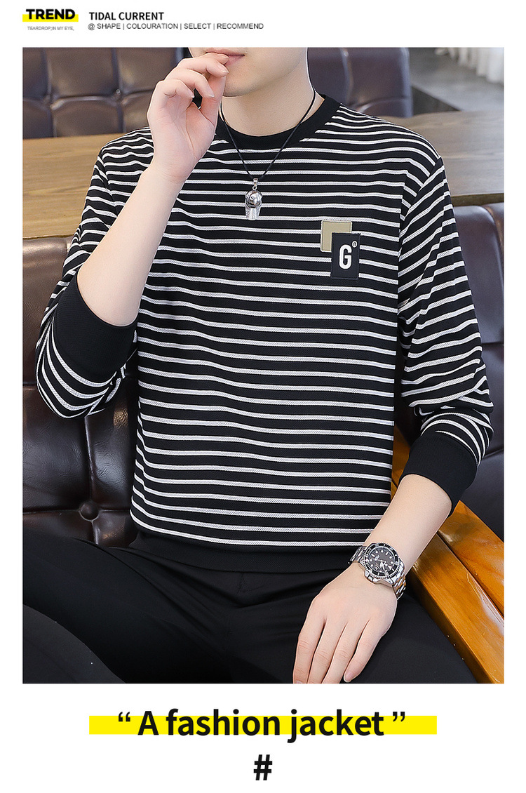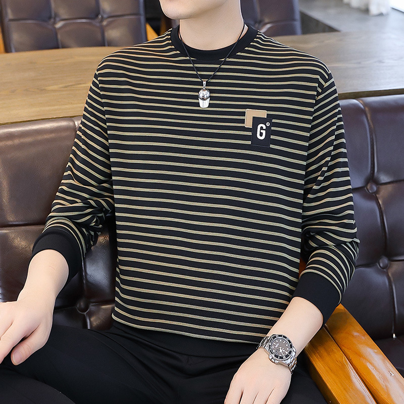 가을 겨울 신상 남성용 기모 스웨트셔츠, 캐주얼 라운드넥 긴팔 티셔츠, 남성용 스트라이프 루즈핏 아우터웨어스토어 가기