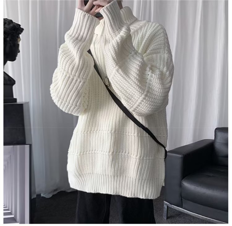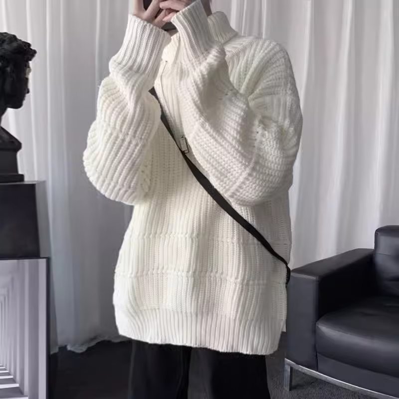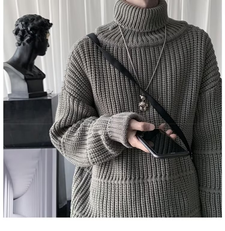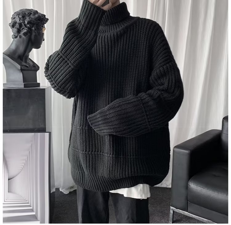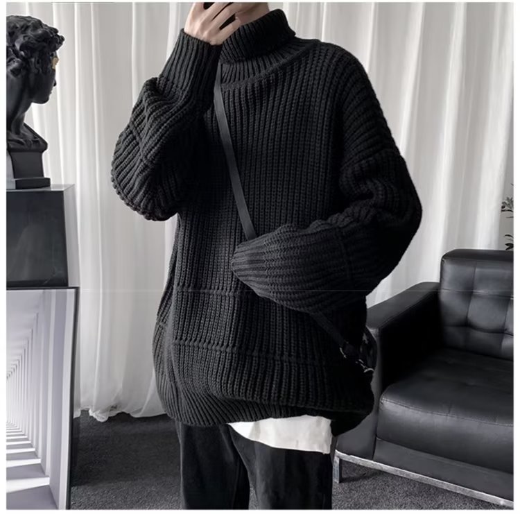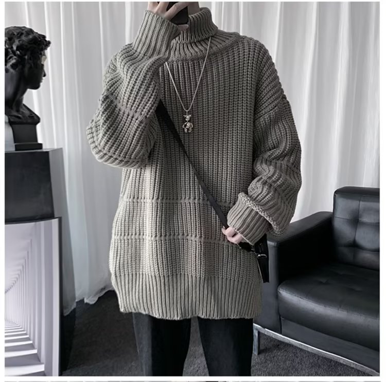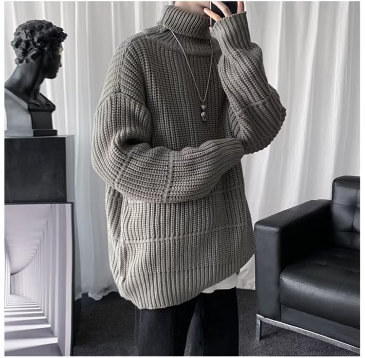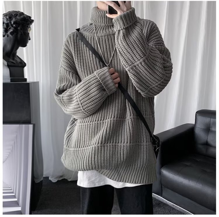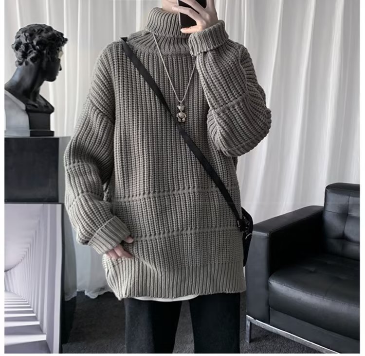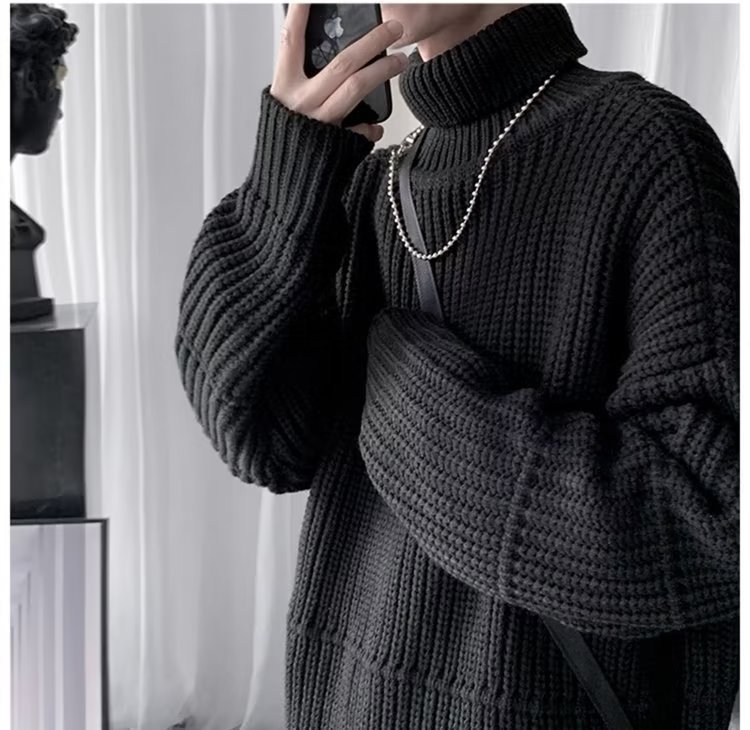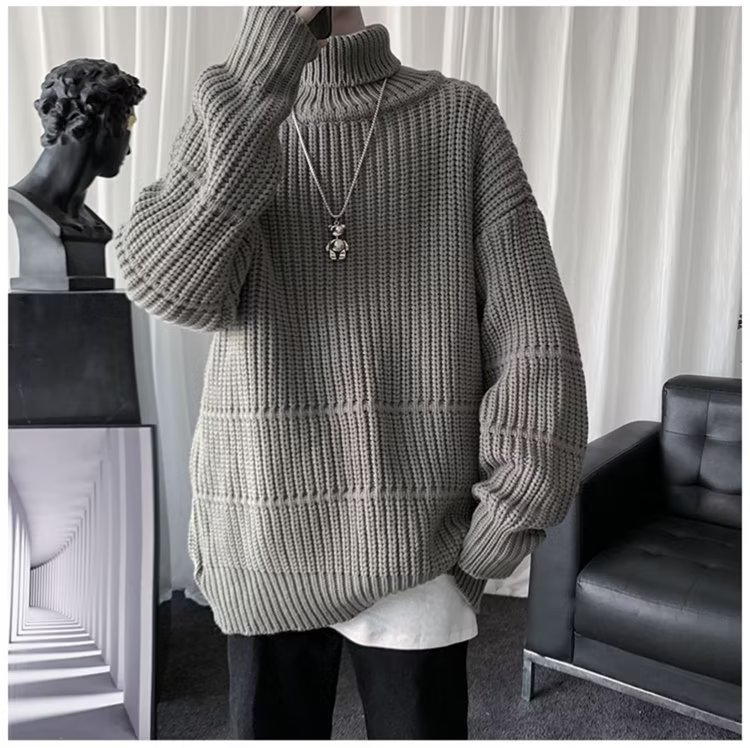 가을과 겨울 캐주얼베이스 셔츠 터틀넥 스웨터 남성용 트렌디 솔리드 컬러 올 매치 홍콩 스타일 풀오버 스웨터 재킷스토어 가기