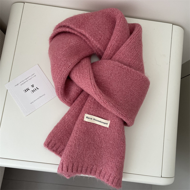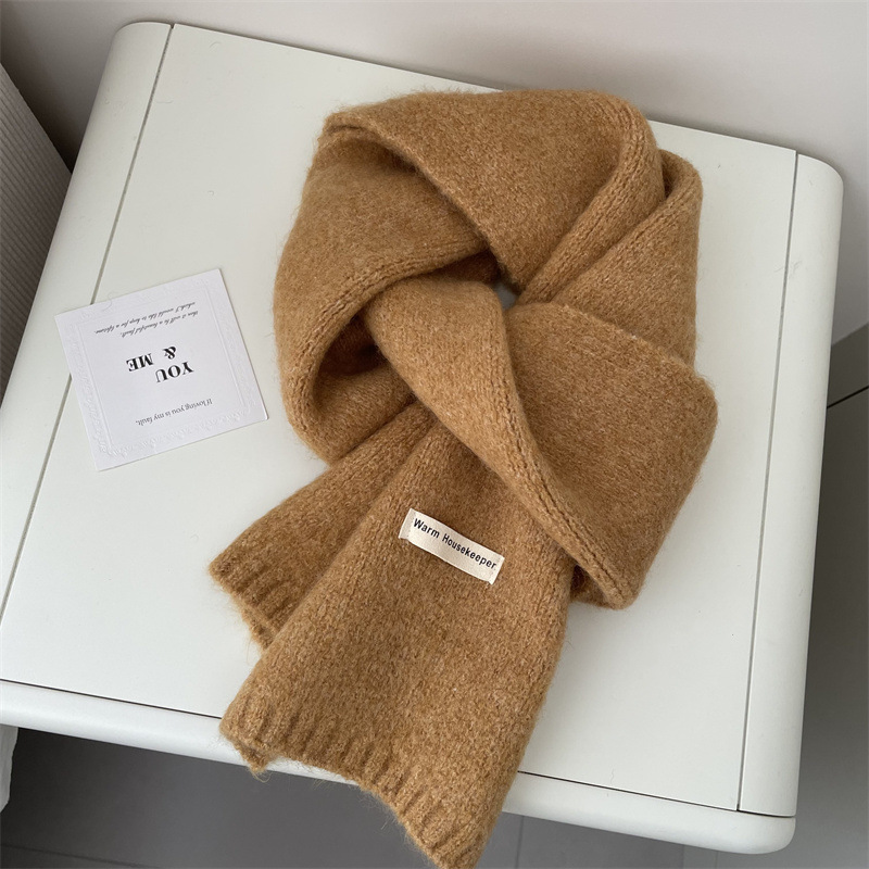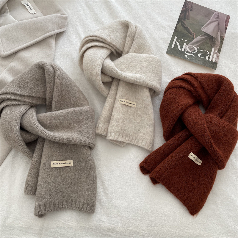 부드럽고 왁스 피부 친화적 인 단색 올 매치 니트 스카프 여성의 겨울 따뜻한 양모 스카프 편안한 흰색 학생 커플 한국어스토어 가기