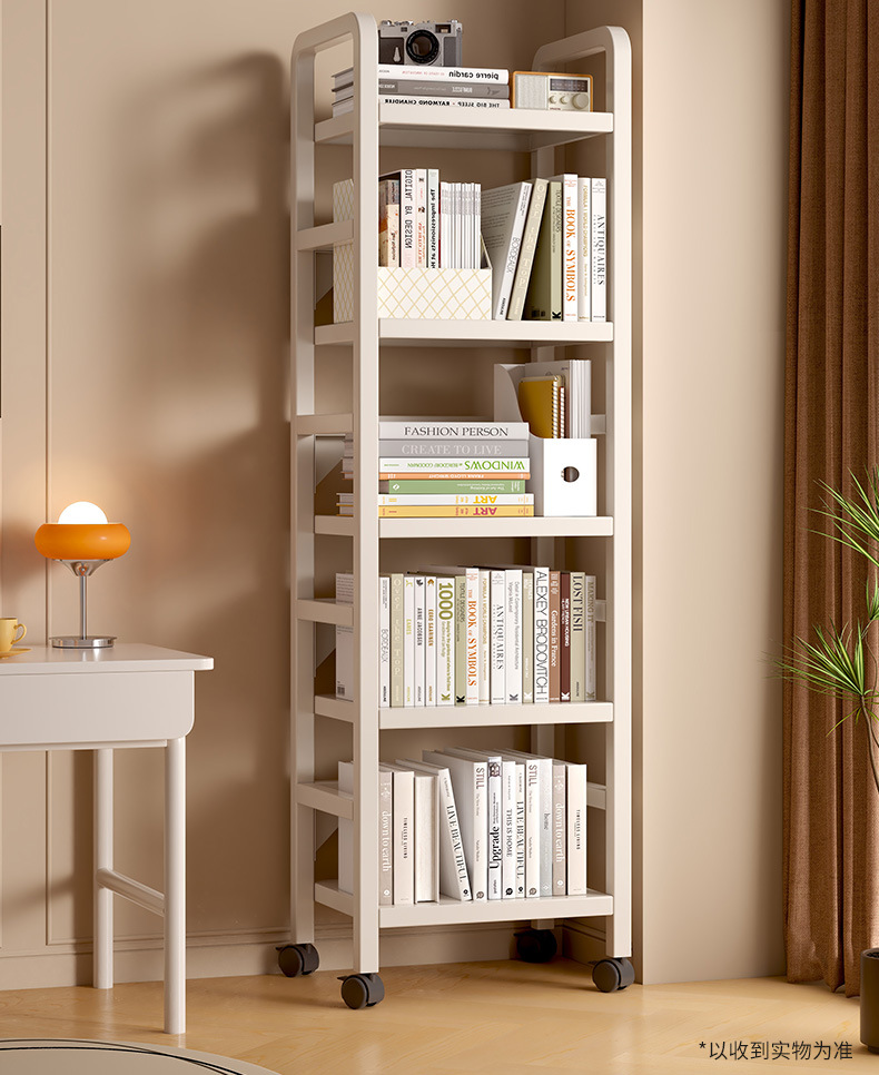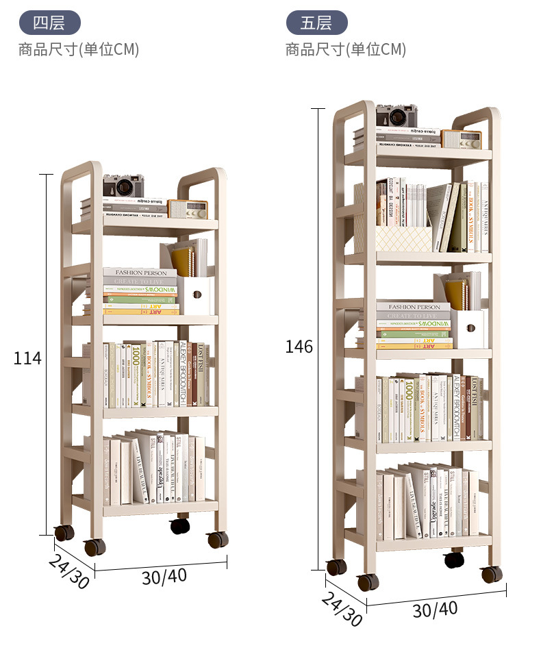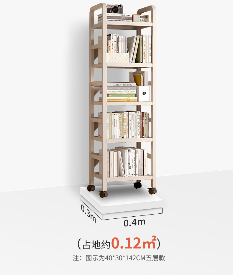 铁艺书架置物架落地多层带轮可移动书桌旁小书架简易墙边窄收纳柜