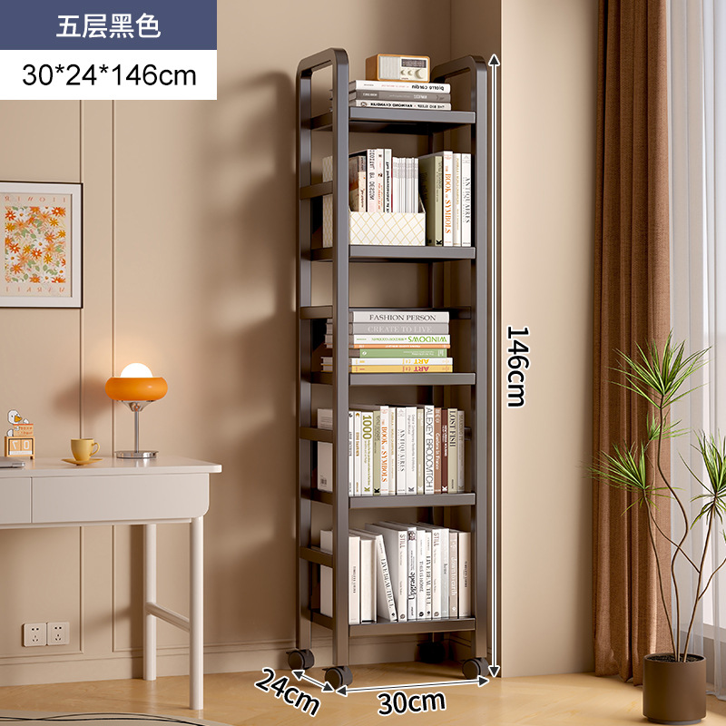 철 책장 보관 선반 바닥 다층 바퀴 움직일 수있는 책상 측면 작은 책장 간단한 벽 좁은 보관 캐비닛스토어 가기