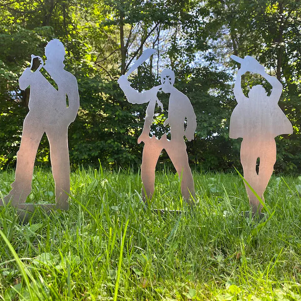 국경 간 새로운 할로윈 장식 텍사스 전기 톱 학살 금속 실루엣 철 예술 프로젝션 야외 진자 플러그인