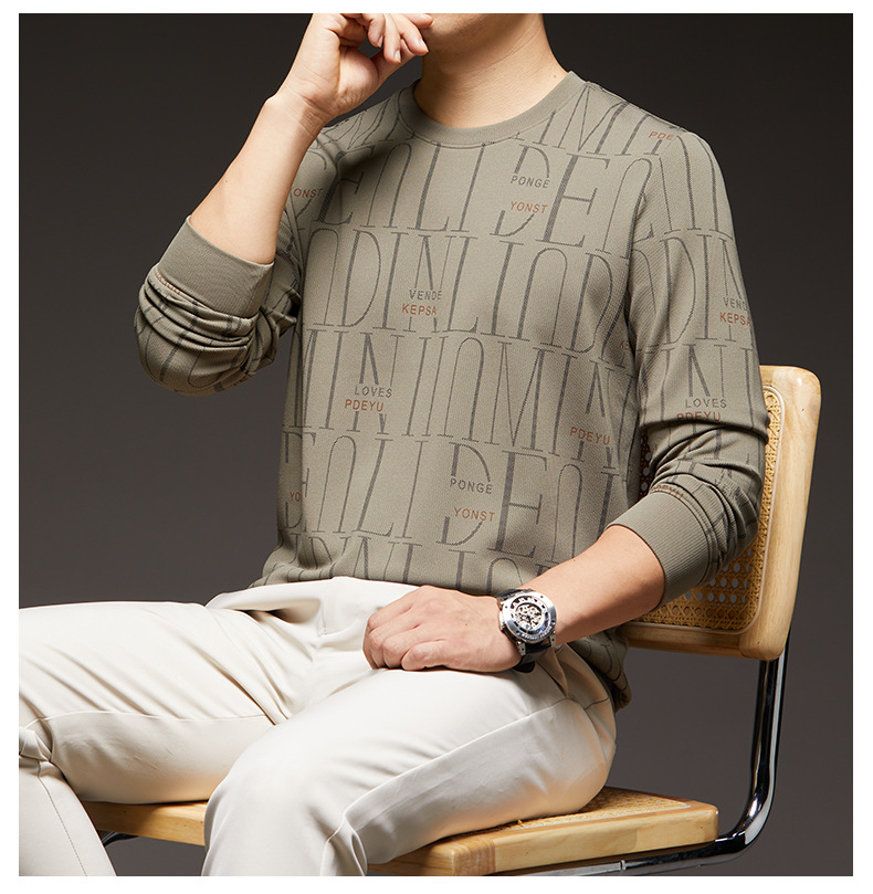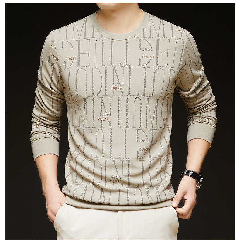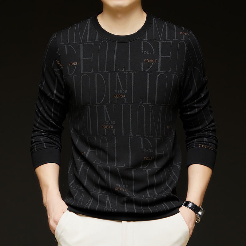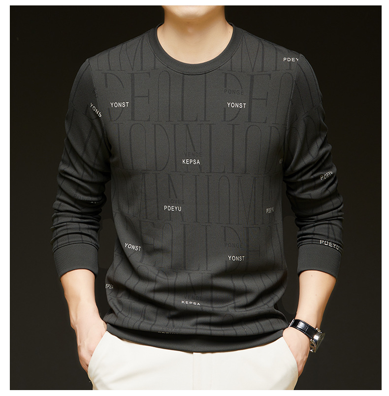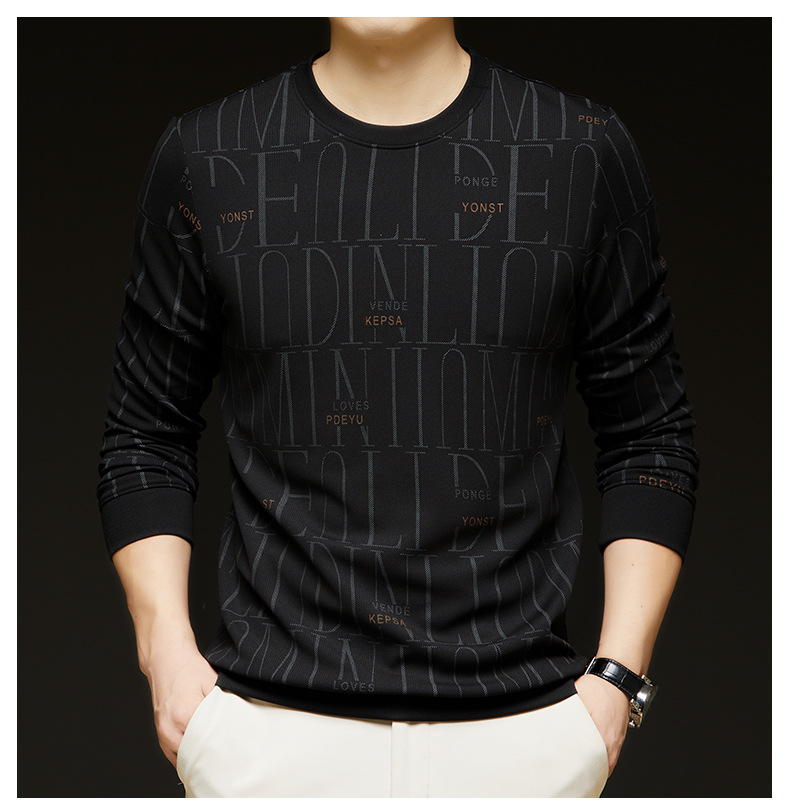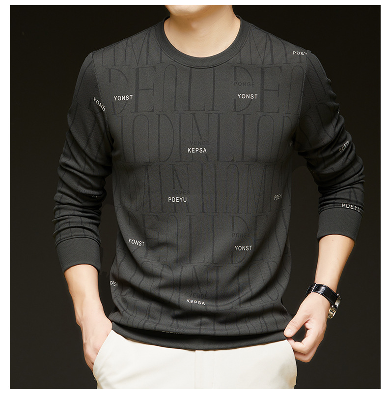 가을 새 남성 긴팔 둥근 목 스웨터 젊고 중년 캐주얼 코튼 프린트 티셔츠 피부 친화적 인 편안한베이스 셔츠스토어 가기