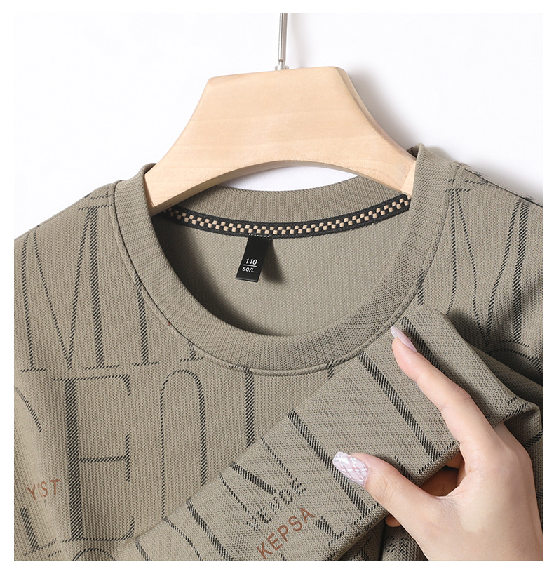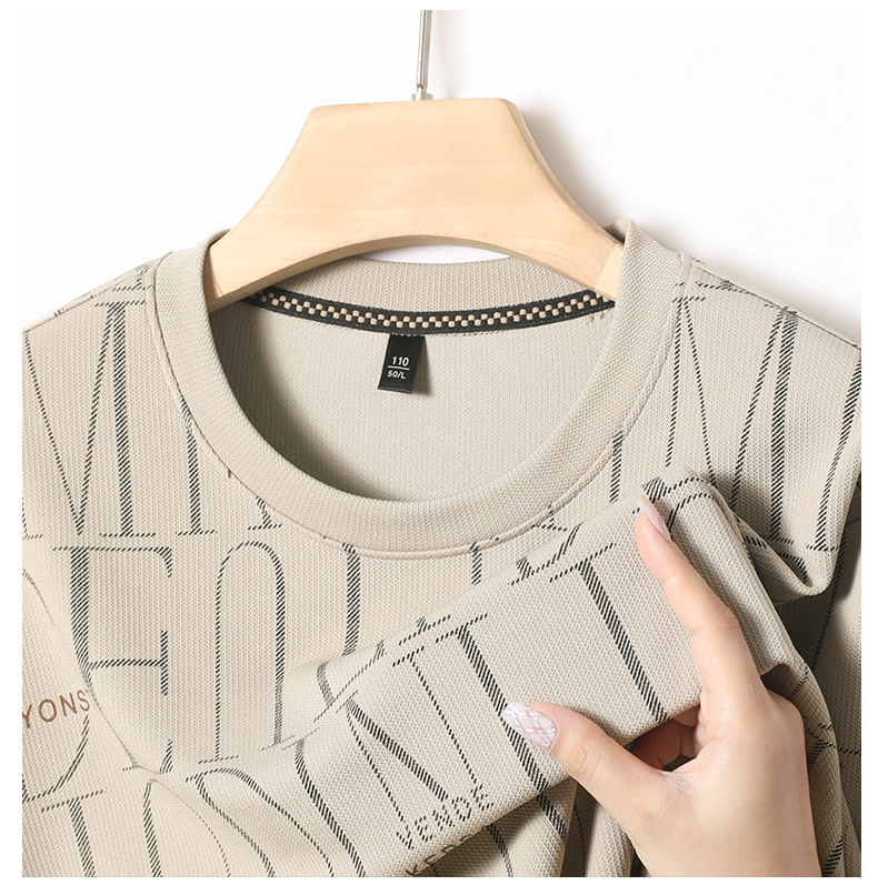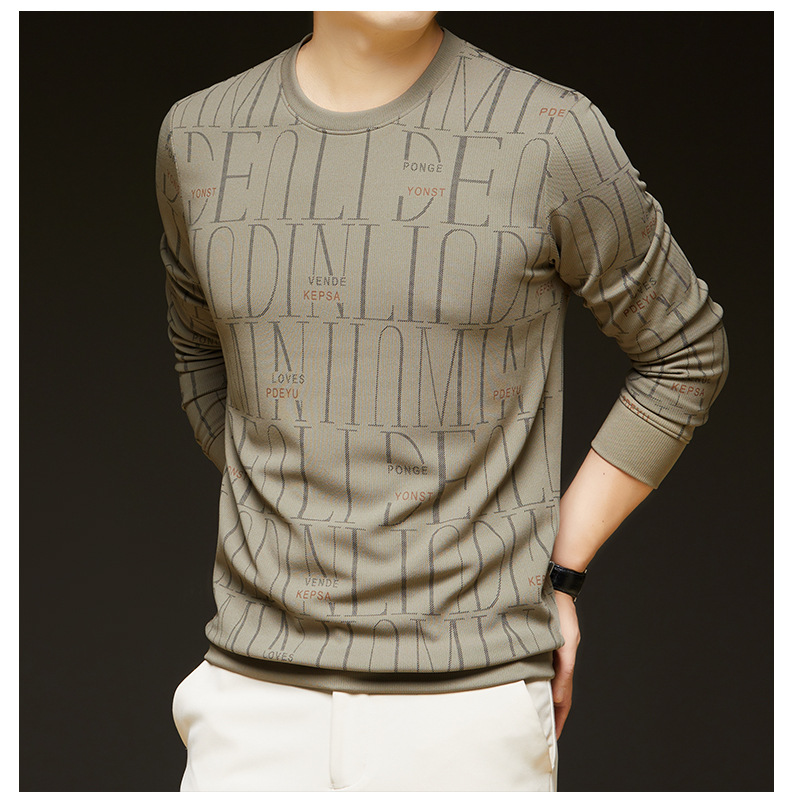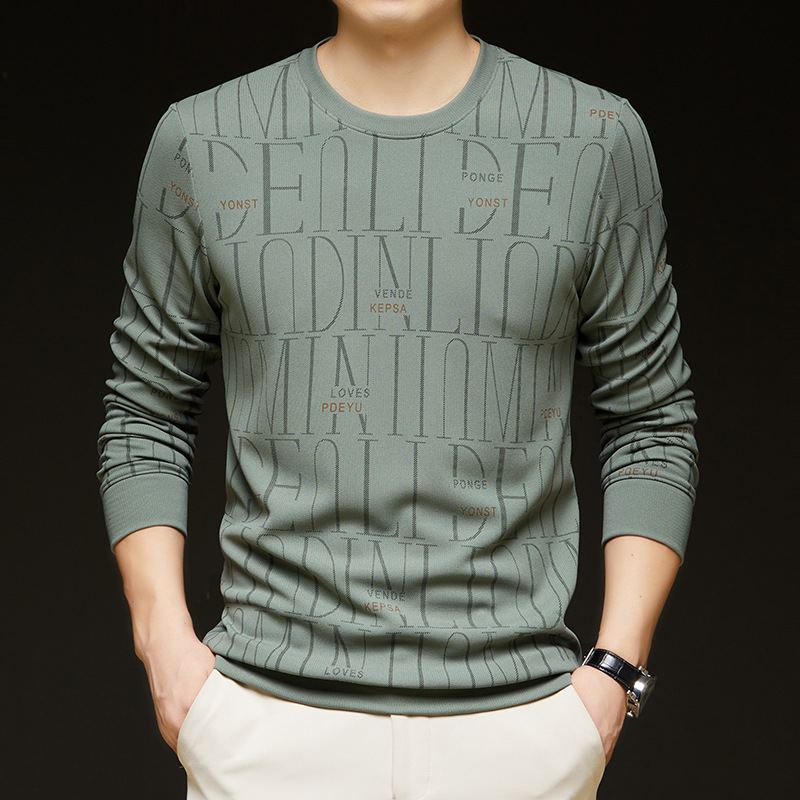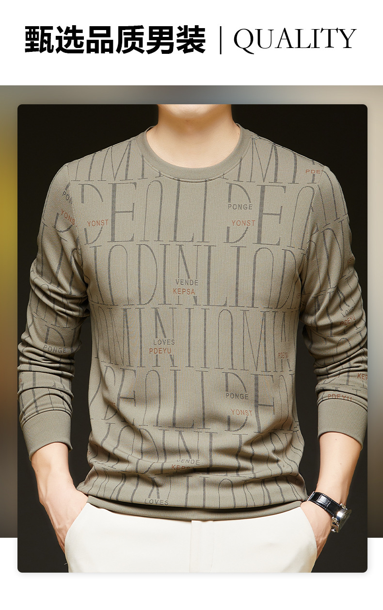 가을 새 남성 긴팔 둥근 목 스웨터 젊고 중년 캐주얼 코튼 프린트 티셔츠 피부 친화적 인 편안한베이스 셔츠스토어 가기