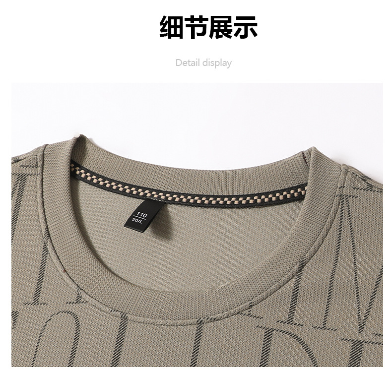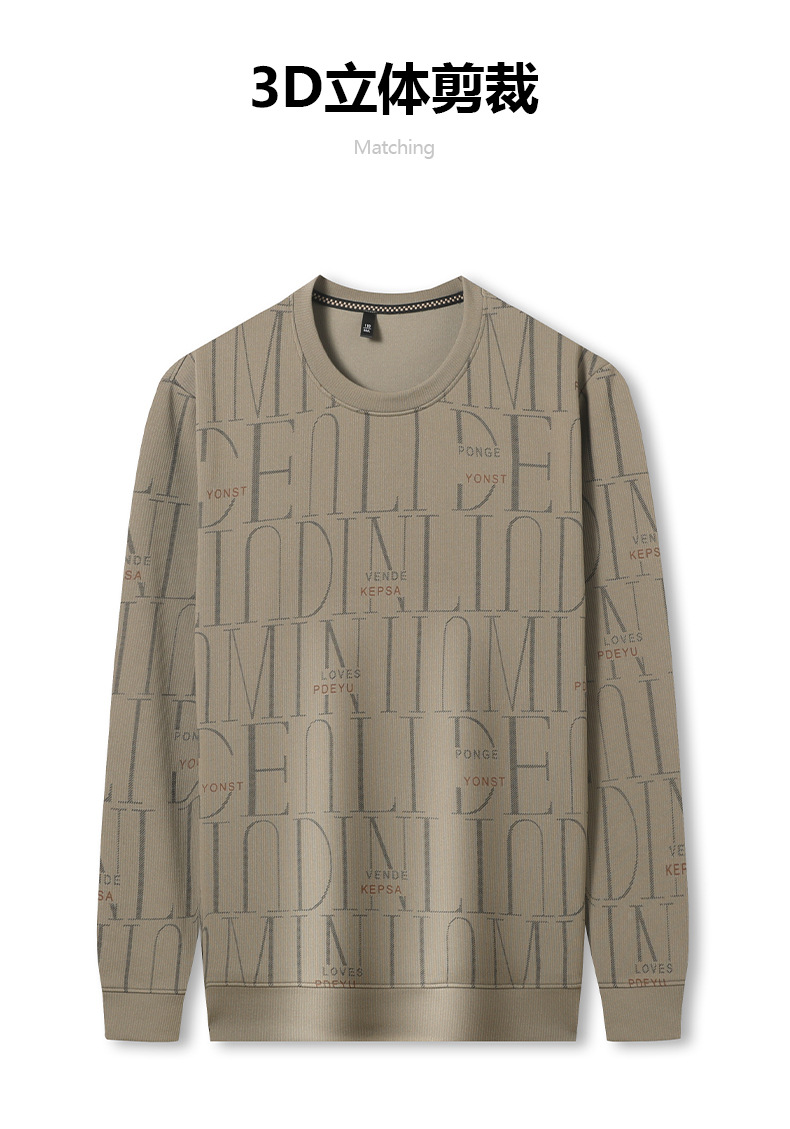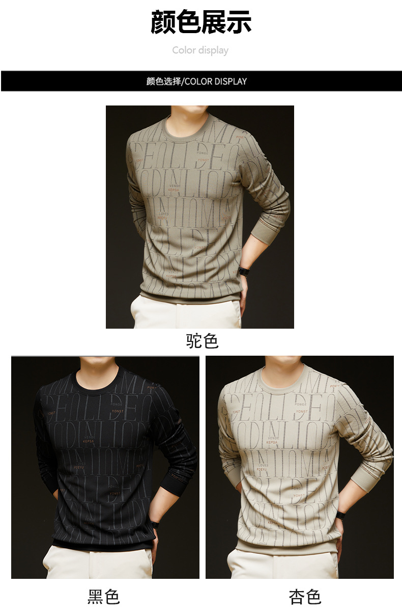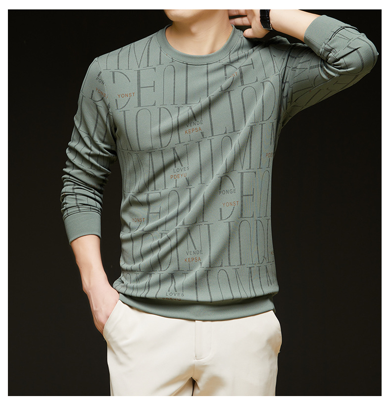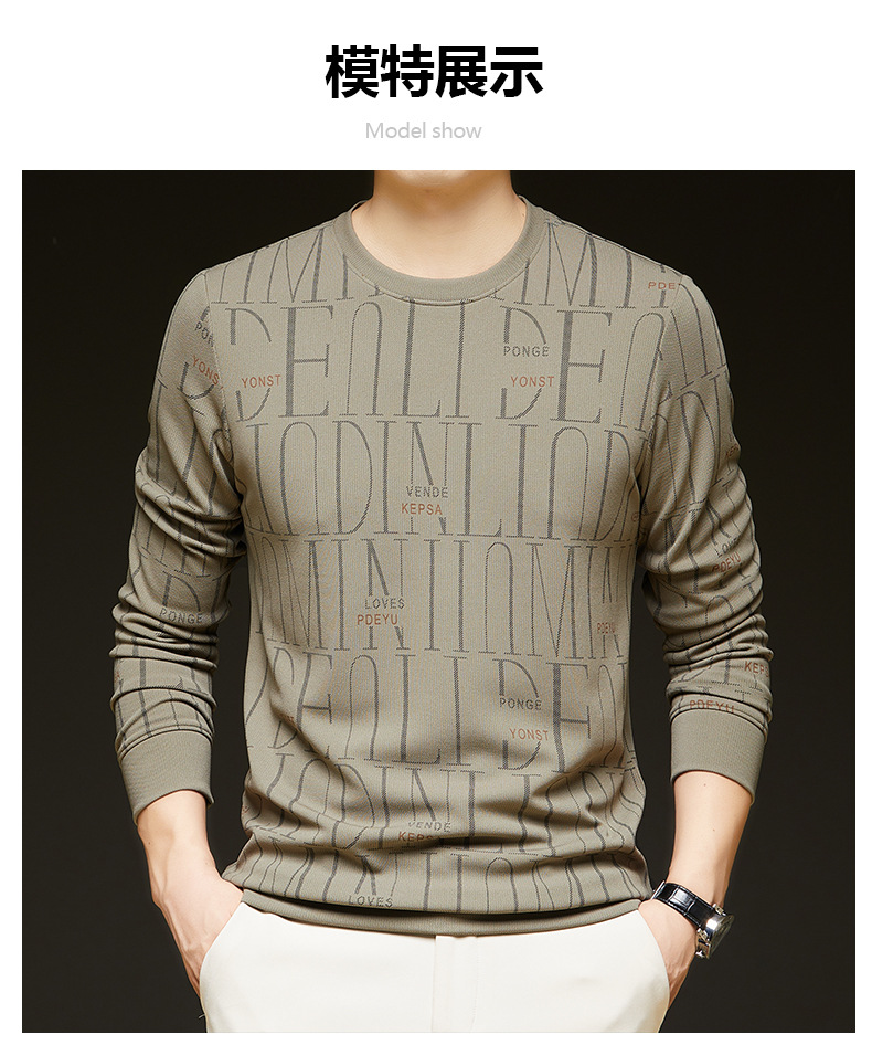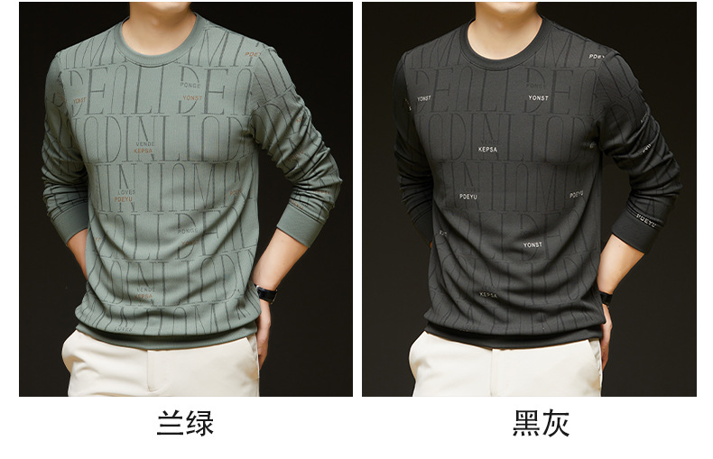 가을 새 남성 긴팔 둥근 목 스웨터 젊고 중년 캐주얼 코튼 프린트 티셔츠 피부 친화적 인 편안한베이스 셔츠