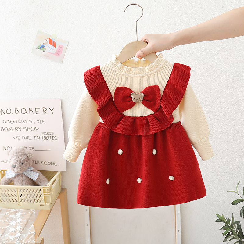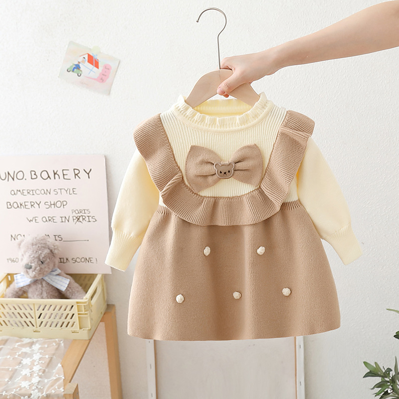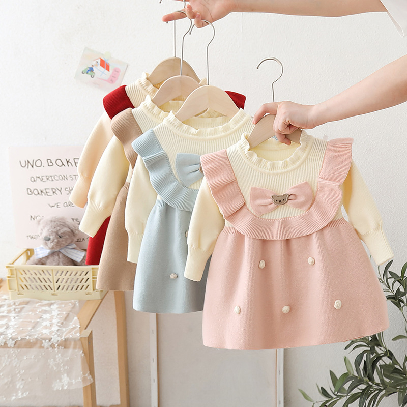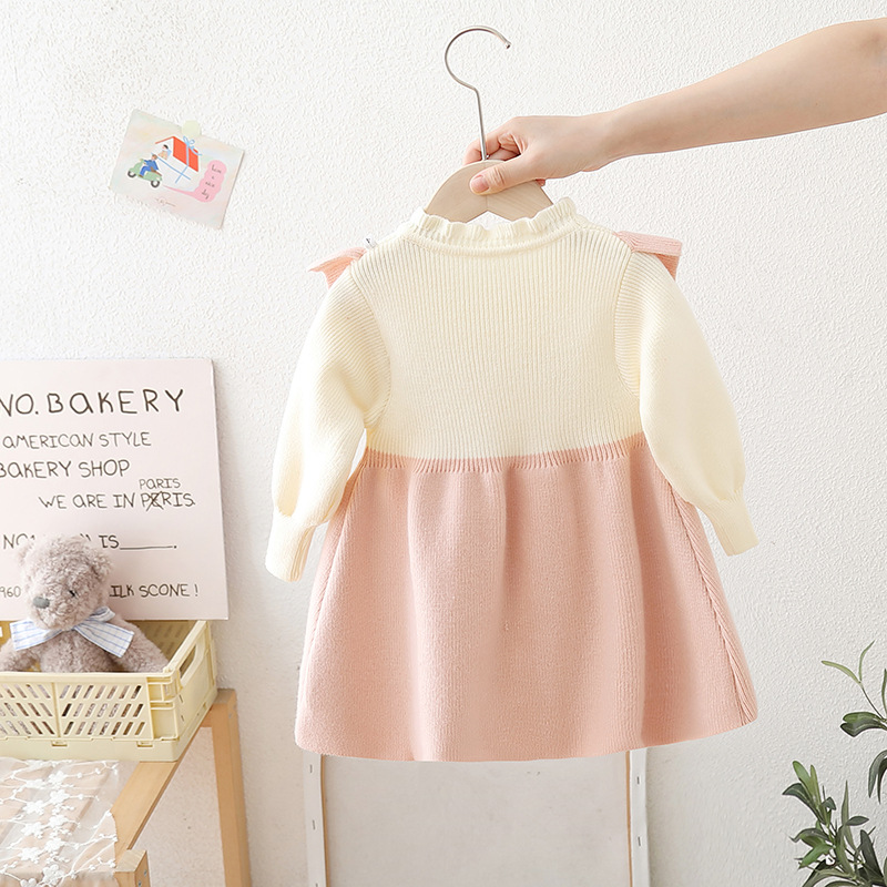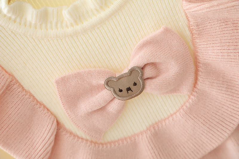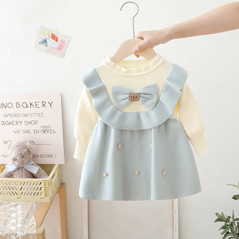 2024 년 새로운 한국 어린이 스웨터 가을과 겨울 소녀 나무 귀 만화 공주 치마 니트 조수스토어 가기