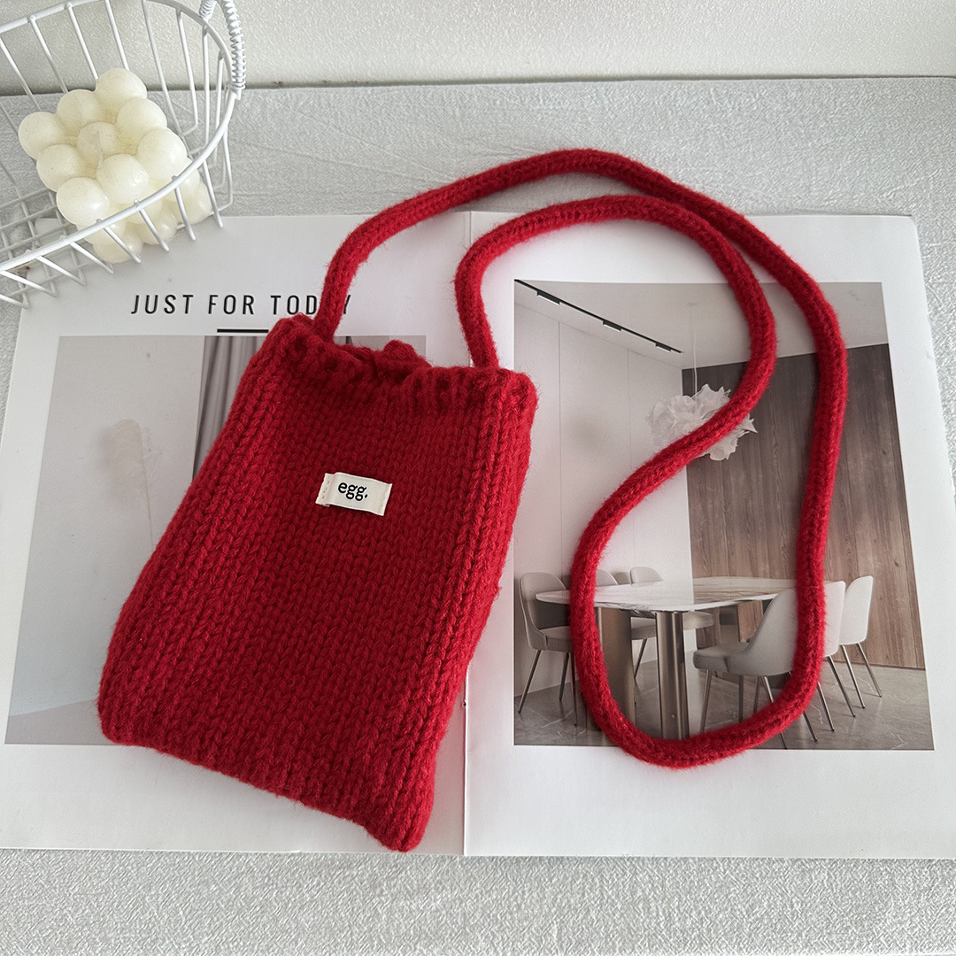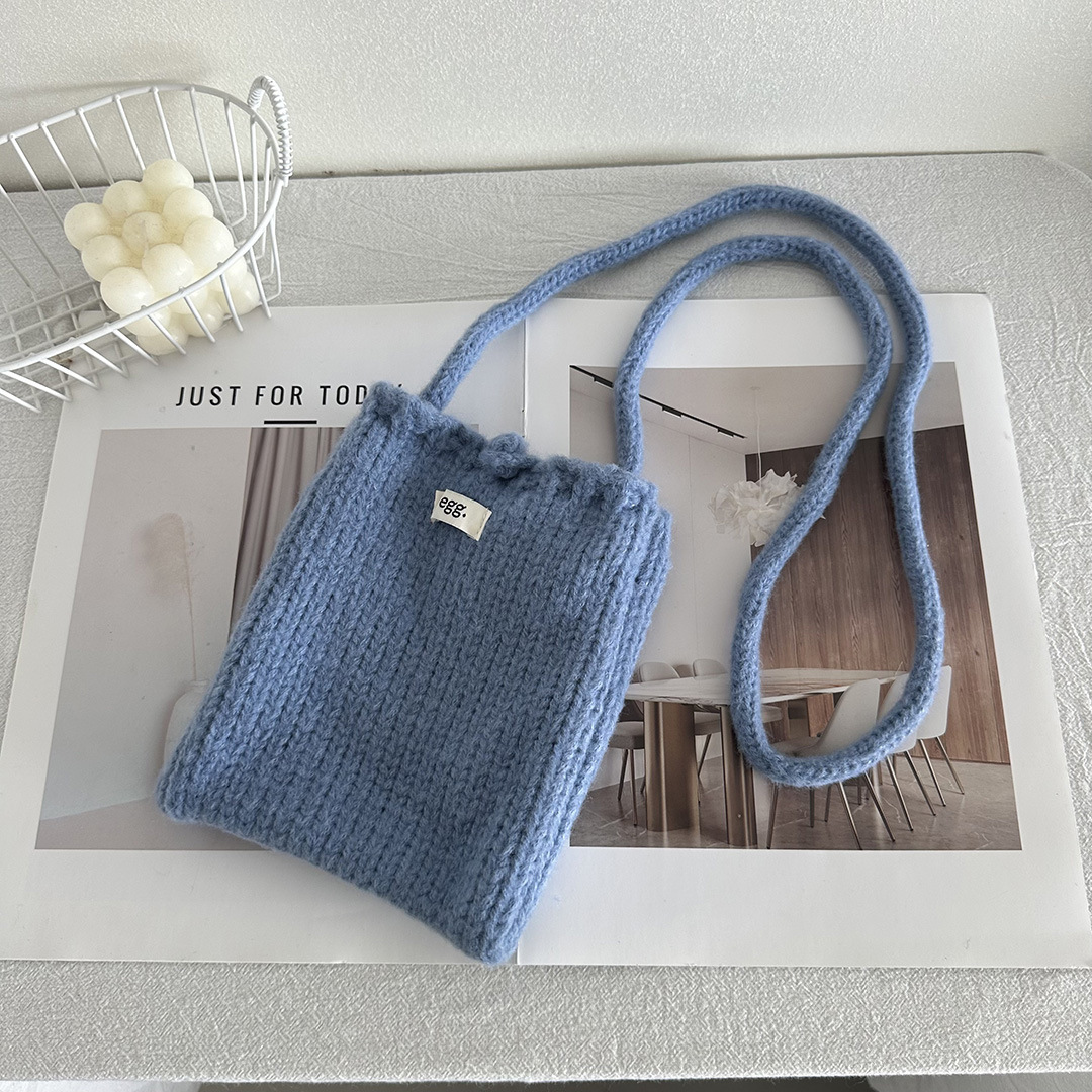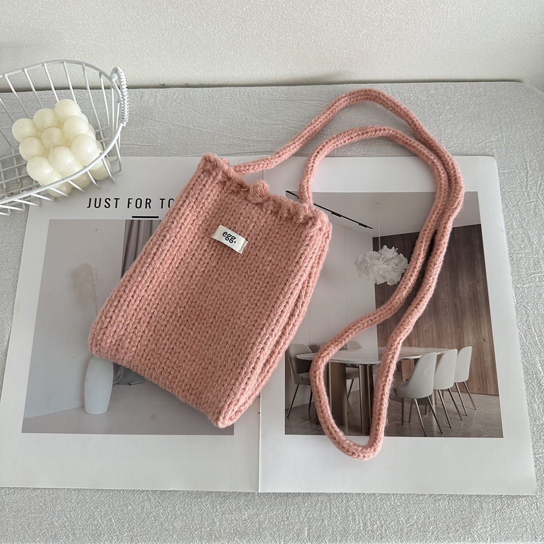 한국 스타일 가을과 겨울 수제 짠 휴대 전화 가방 인스 타 그램 스타일 캔디 컬러 미니 귀여운 양모 니트 숄더 크로스 바디 백
