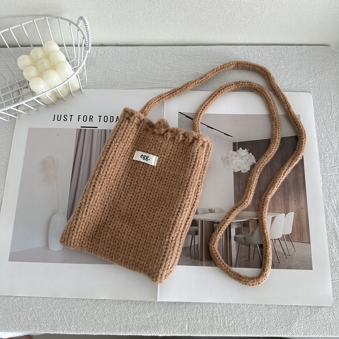 한국 스타일 가을과 겨울 수제 짠 휴대 전화 가방 인스 타 그램 스타일 캔디 컬러 미니 귀여운 양모 니트 숄더 크로스 바디 백스토어 가기