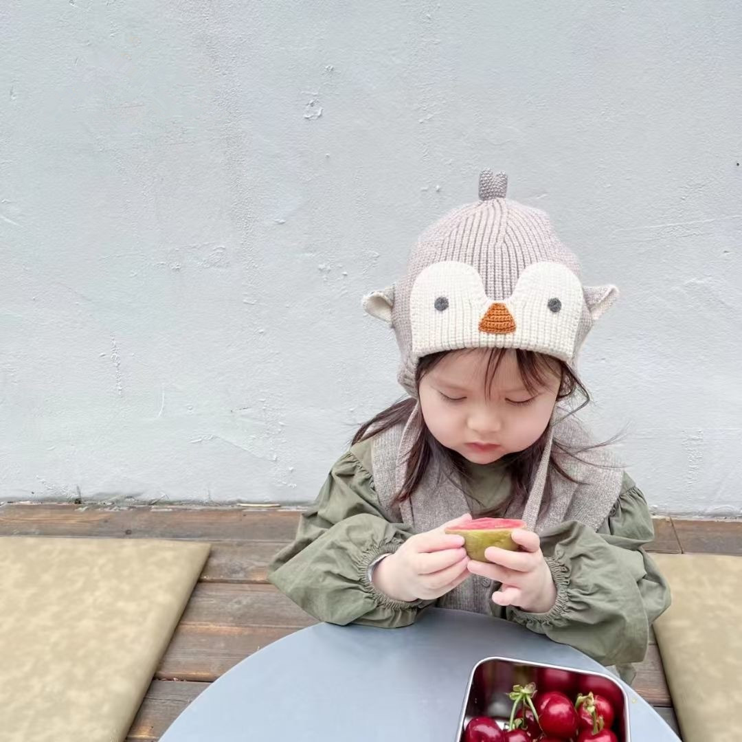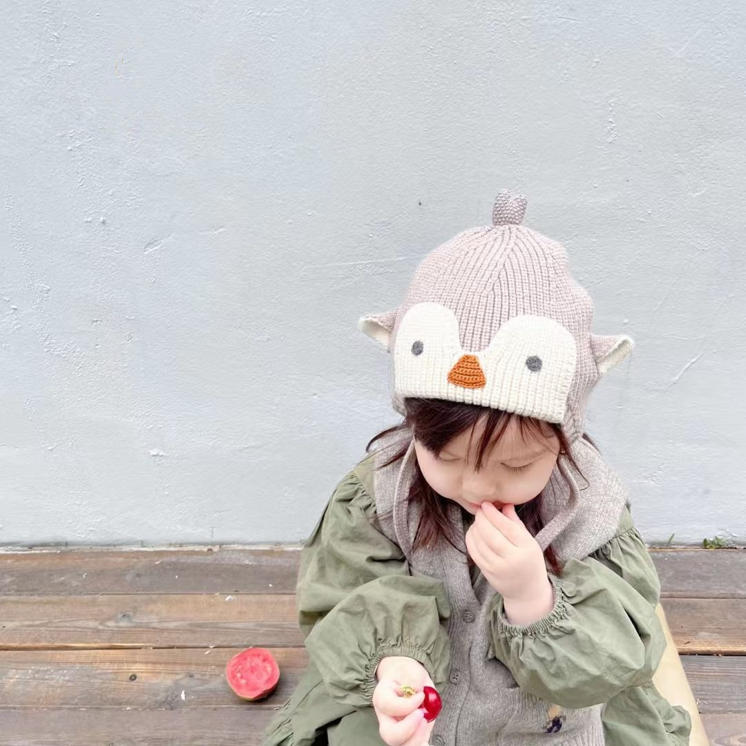 샤오차이캣 S+ 가을 겨울 남녀 아기 순면 안감 모자 작은 펭귄 귀여운 귀덮개 보온 모자 25-500a스토어 가기