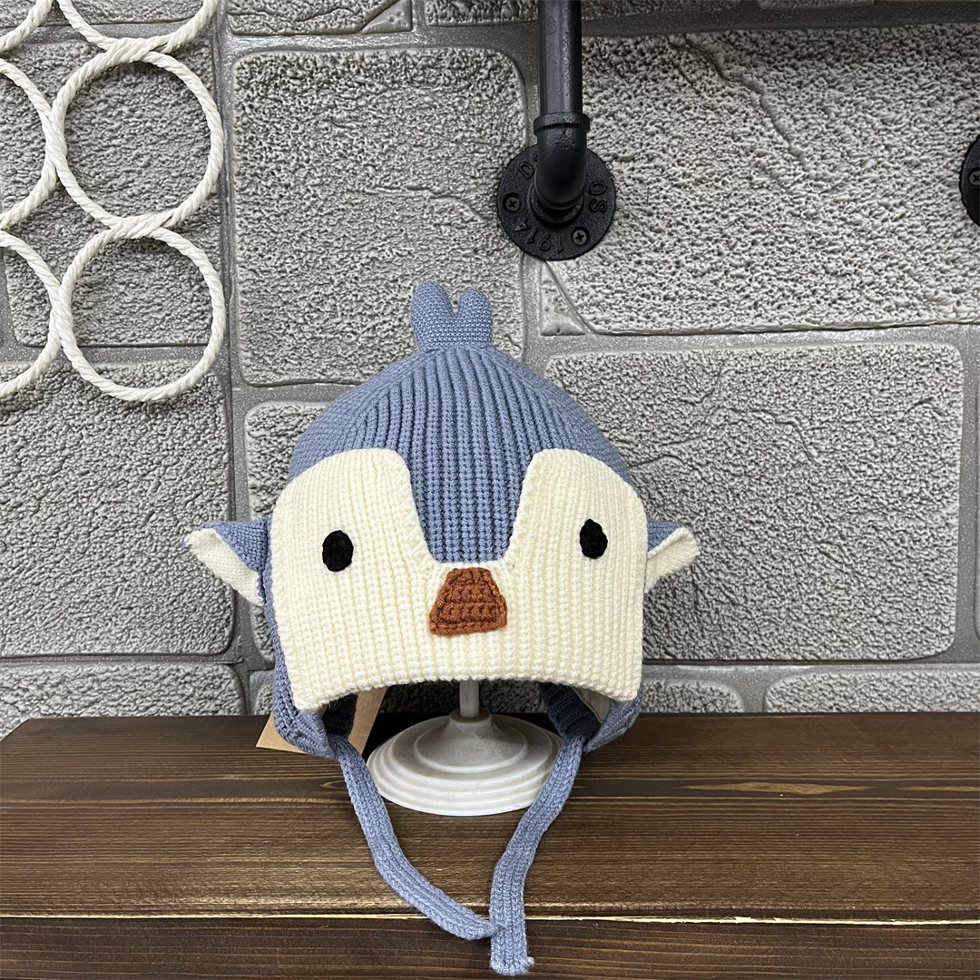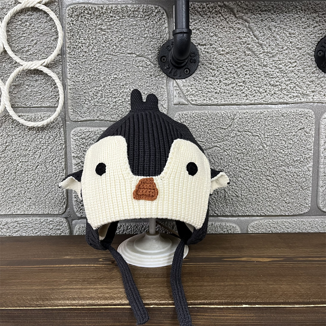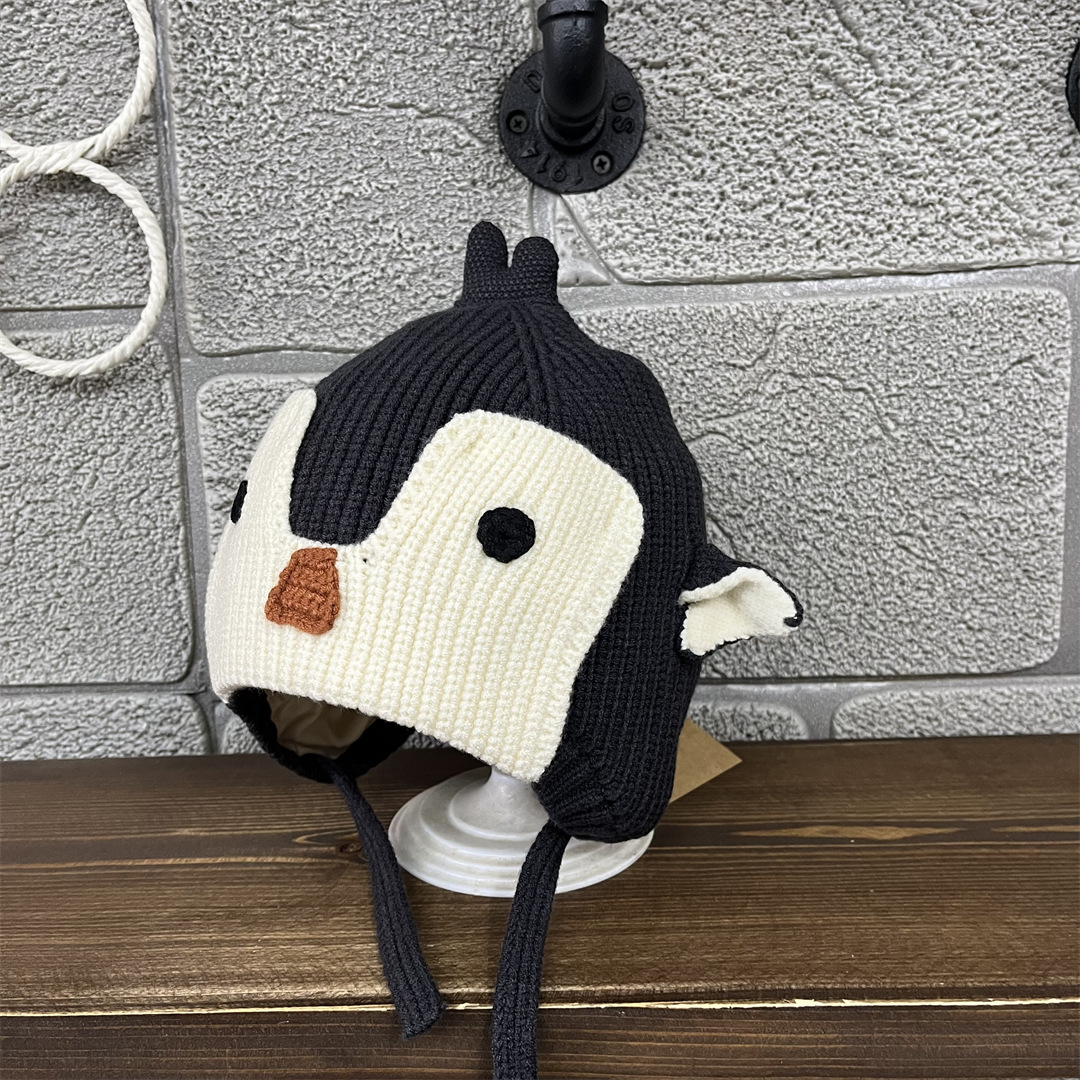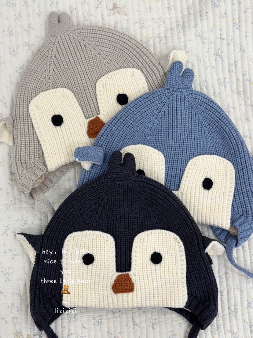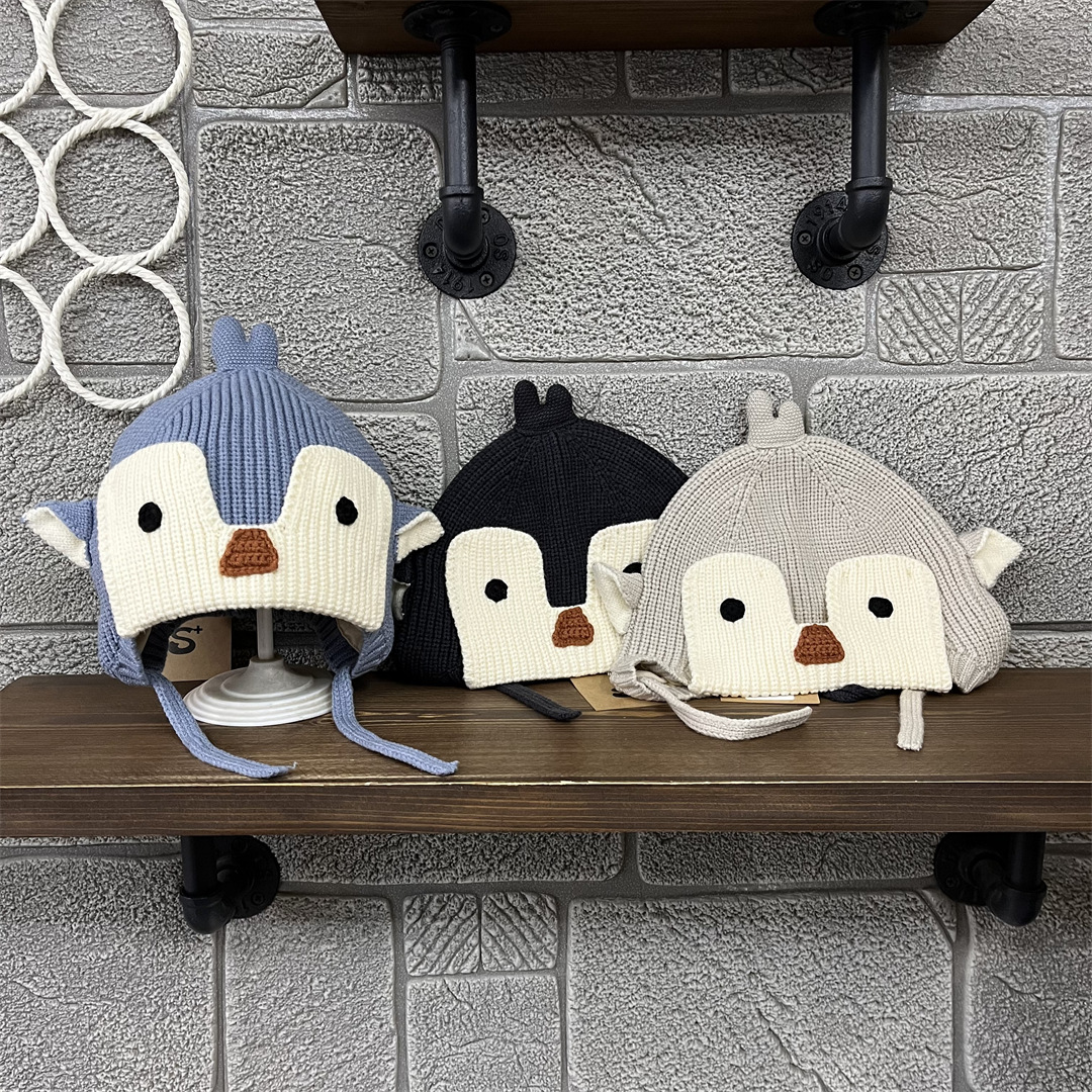 샤오차이캣 S+ 가을 겨울 남녀 아기 순면 안감 모자 작은 펭귄 귀여운 귀덮개 보온 모자 25-500a