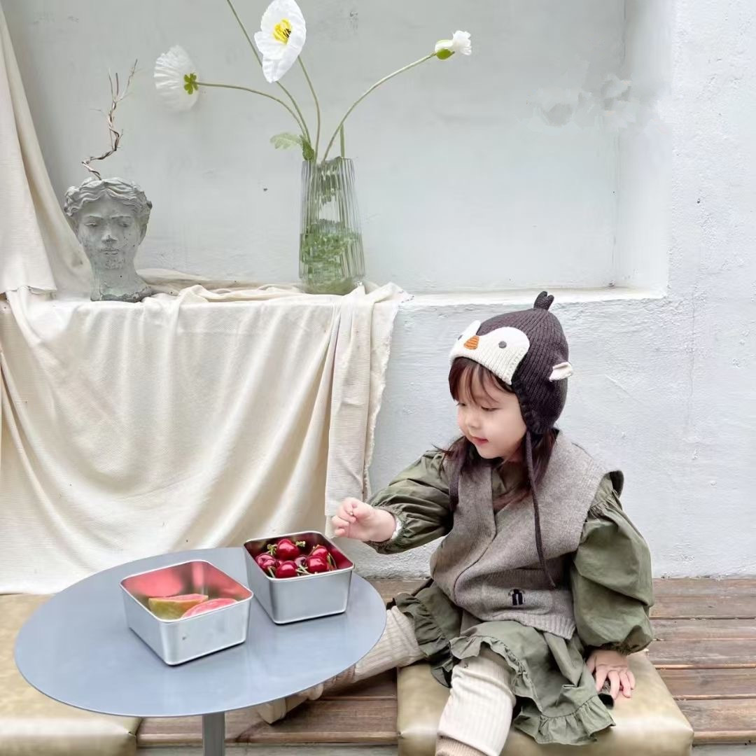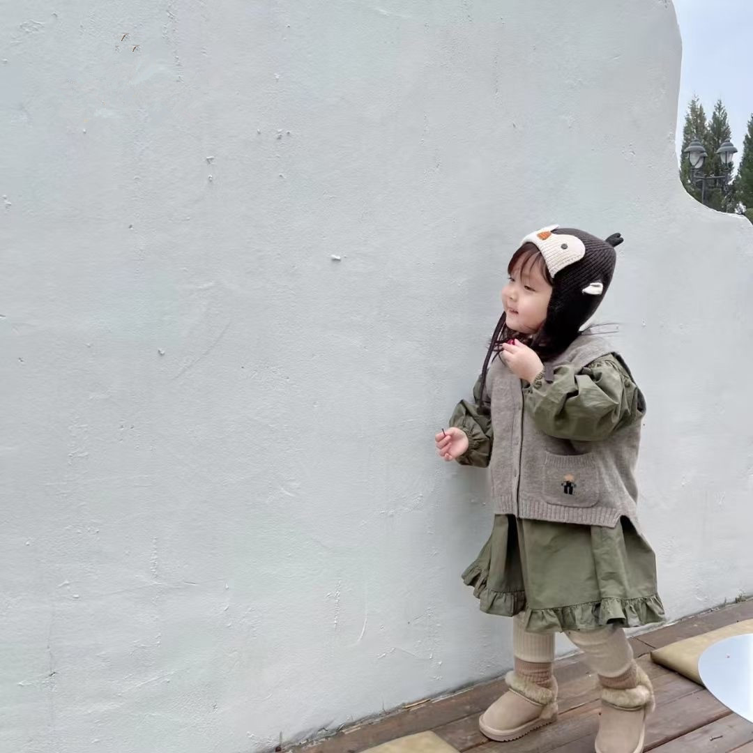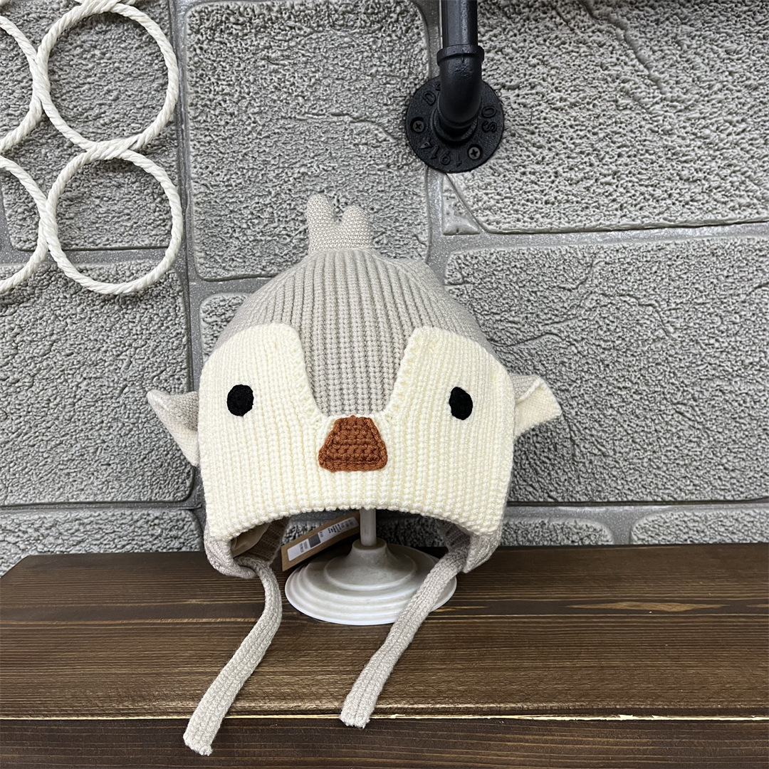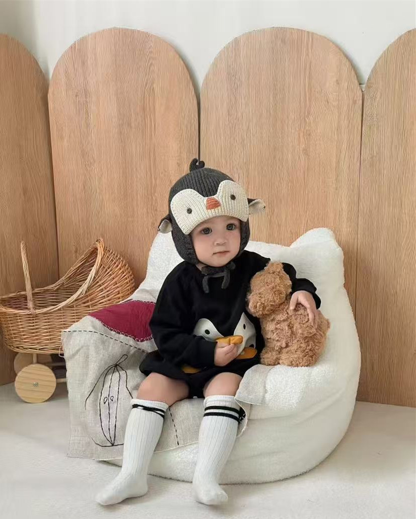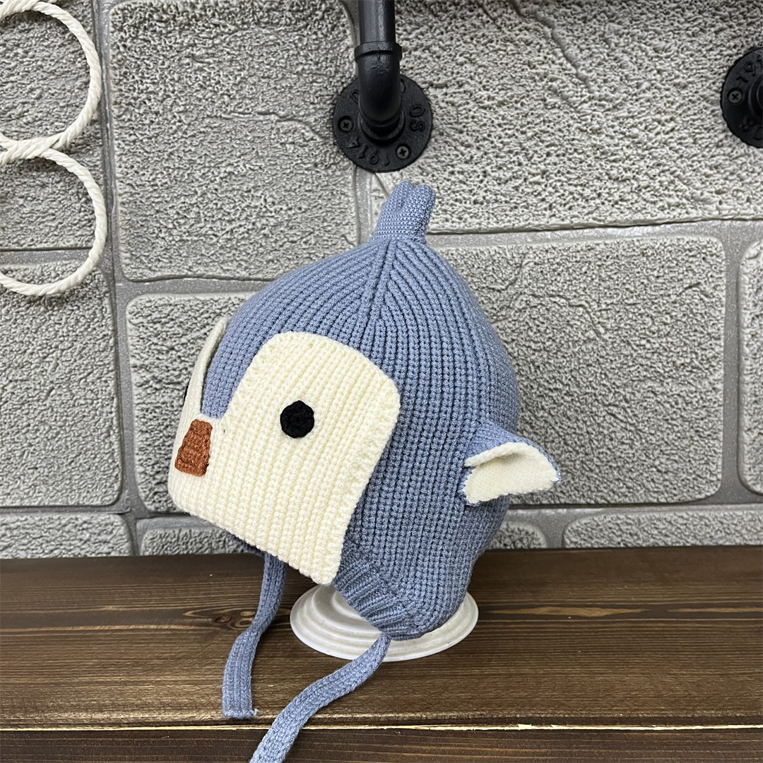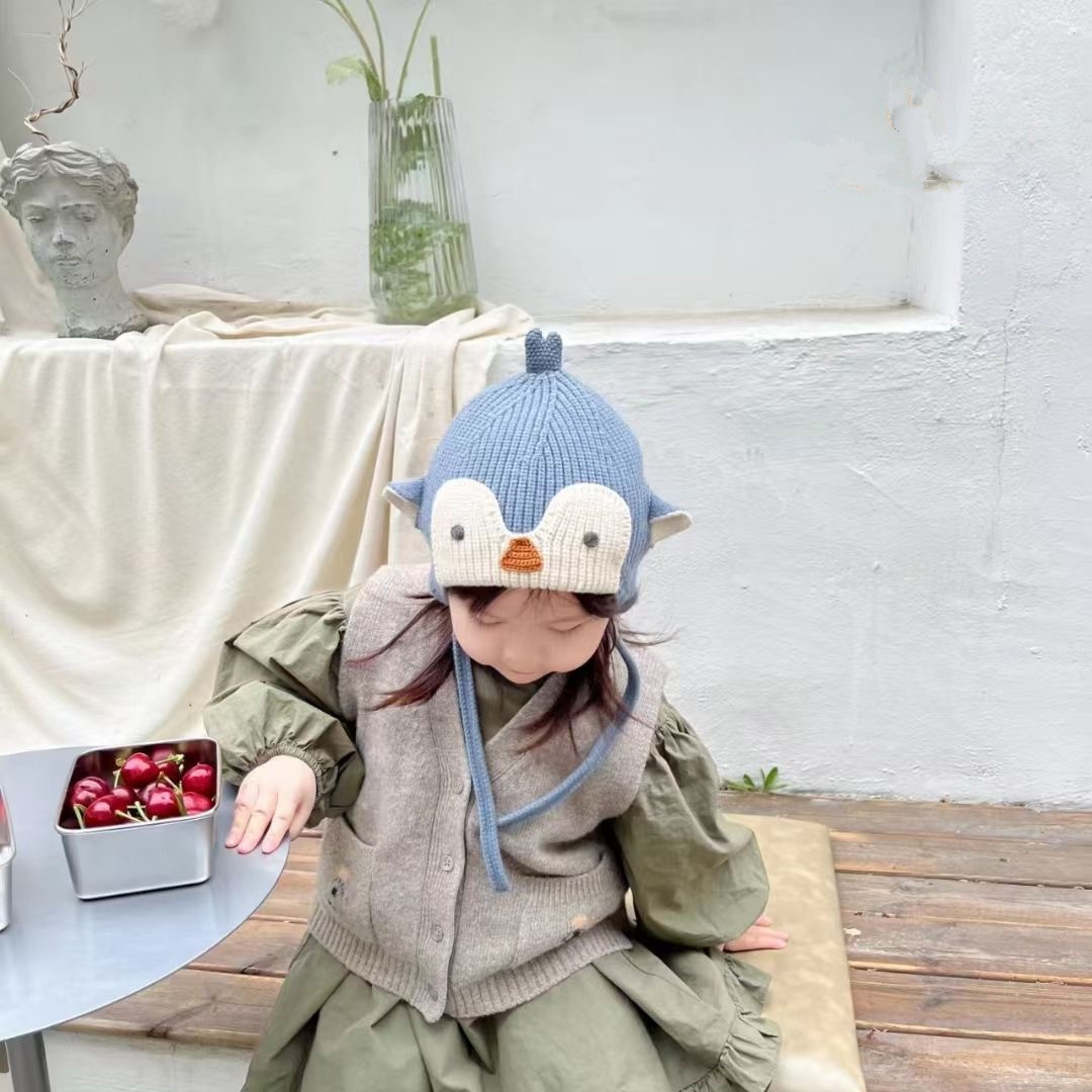 샤오차이캣 S+ 가을 겨울 남녀 아기 순면 안감 모자 작은 펭귄 귀여운 귀덮개 보온 모자 25-500a