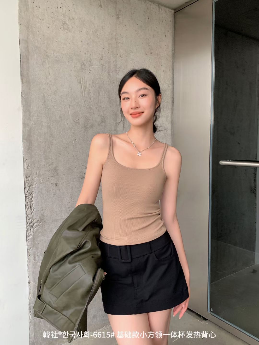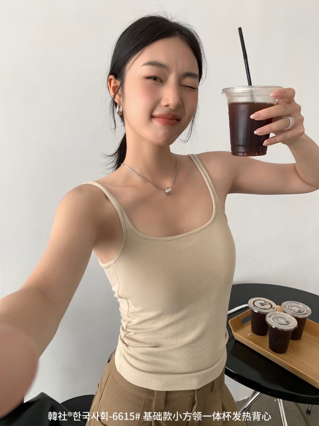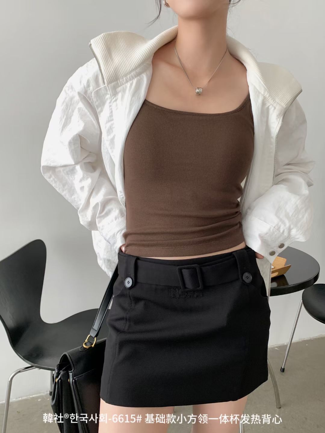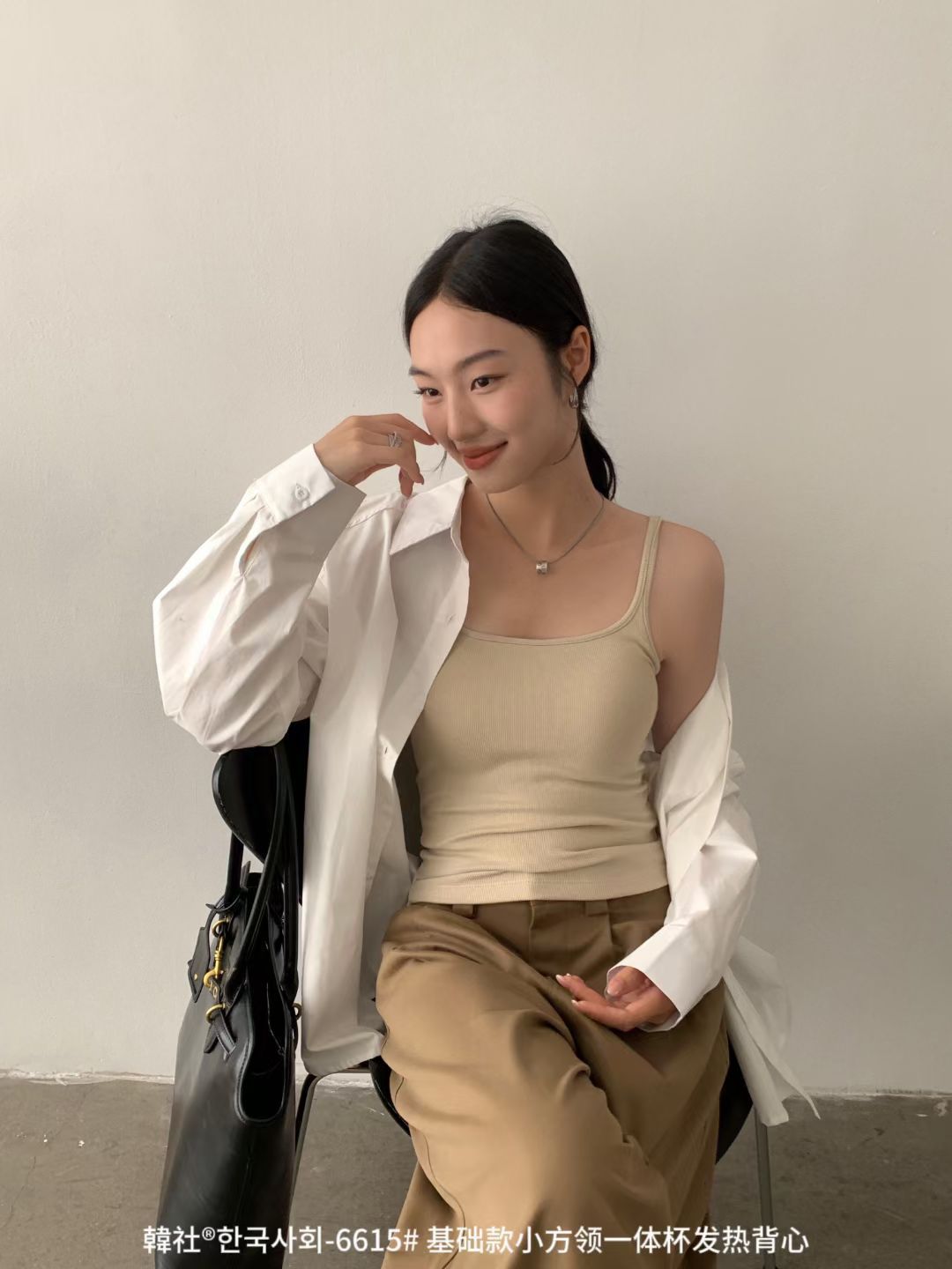 한국사회 6615 기본 스몰 스퀘어 칼라 통합컵 난방 조끼 여성 브랜딩 슬림-핏 슬리밍 올매치 슬링베이스