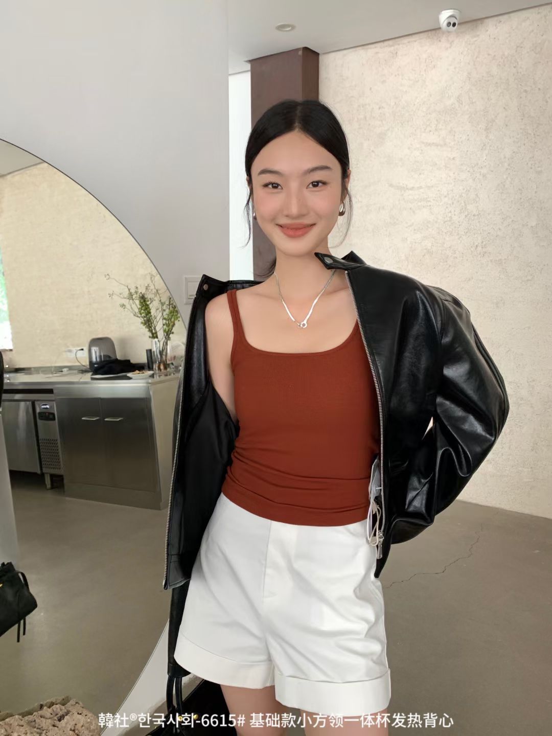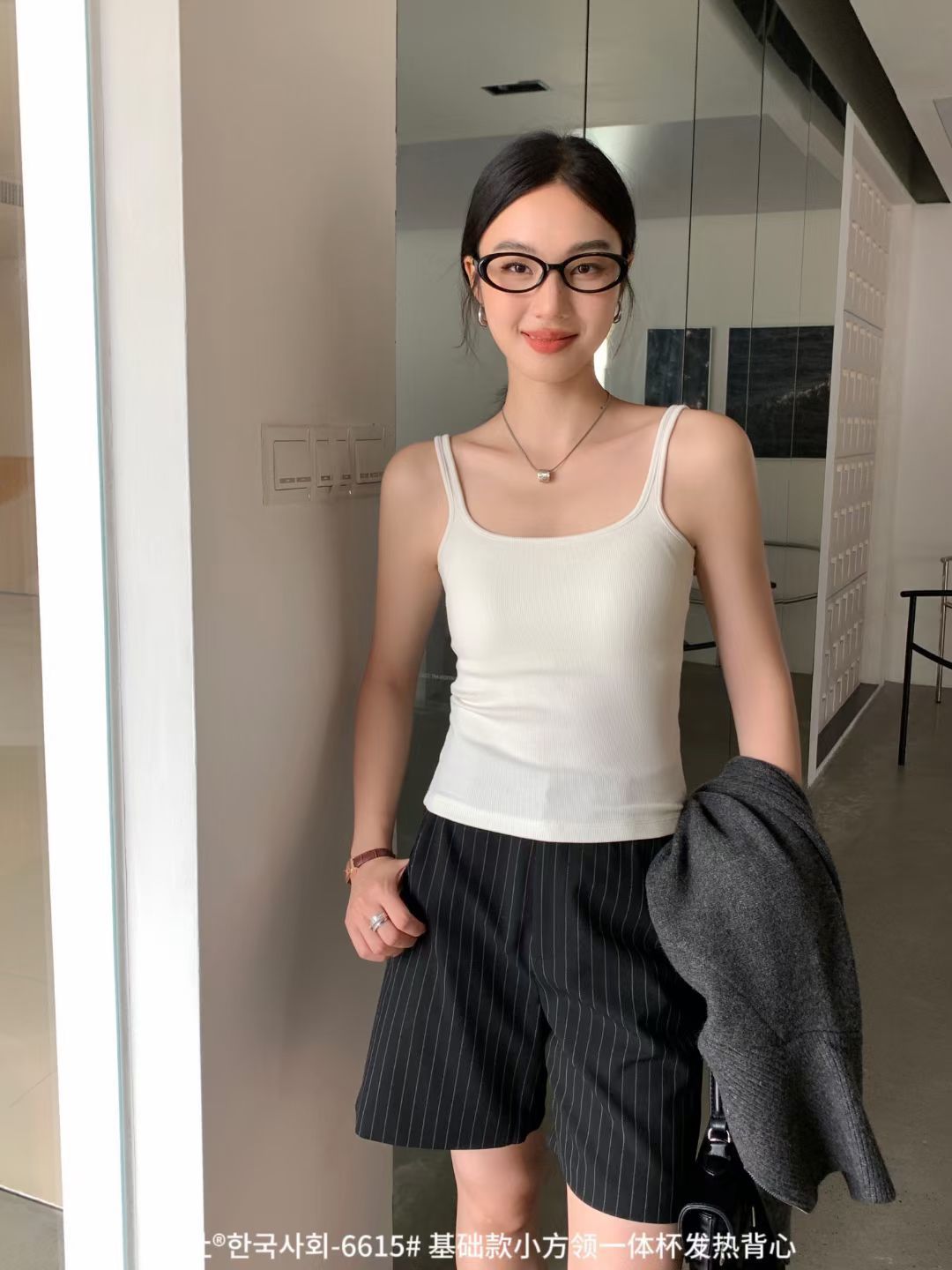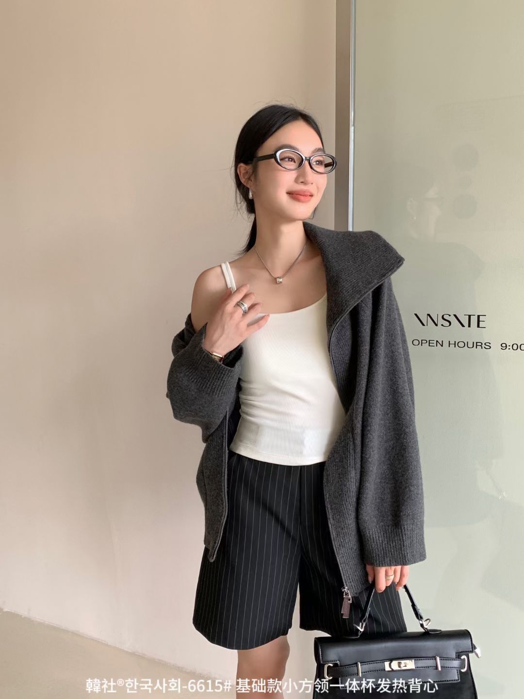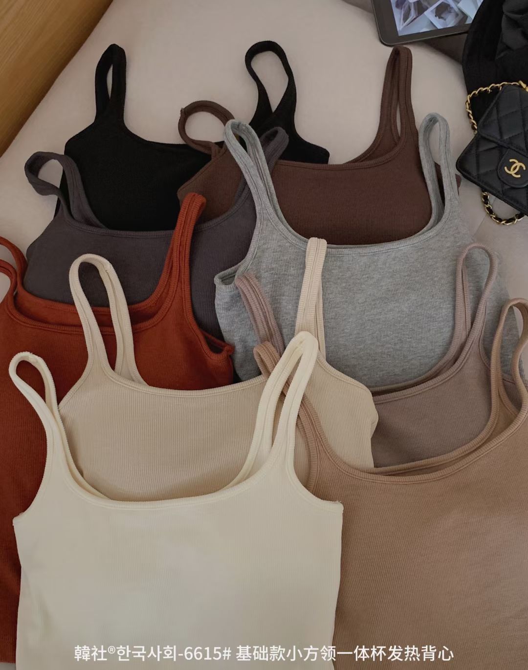 한국사회 6615 기본 스몰 스퀘어 칼라 통합컵 난방 조끼 여성 브랜딩 슬림-핏 슬리밍 올매치 슬링베이스