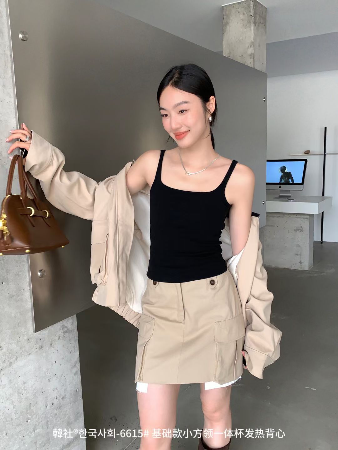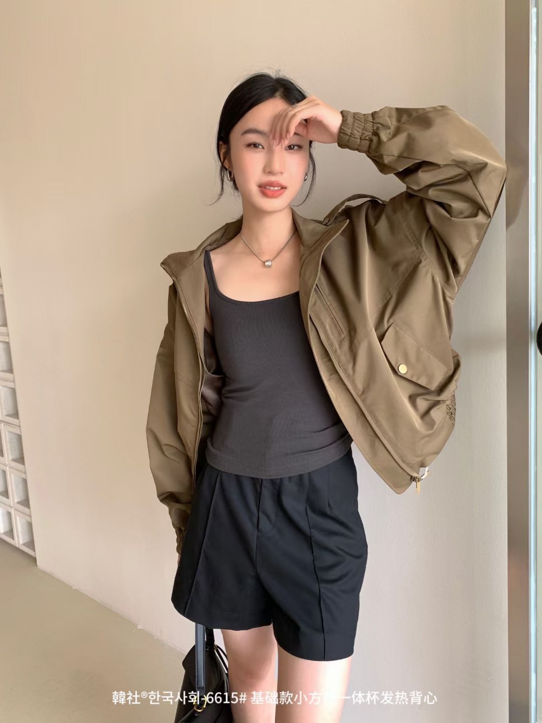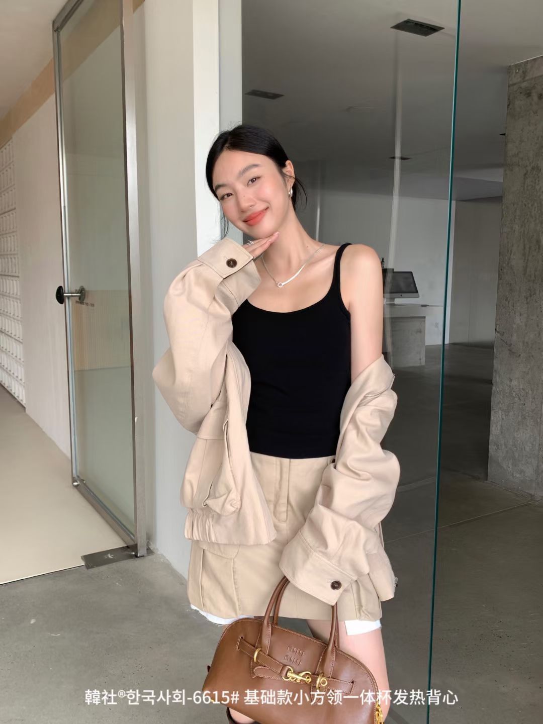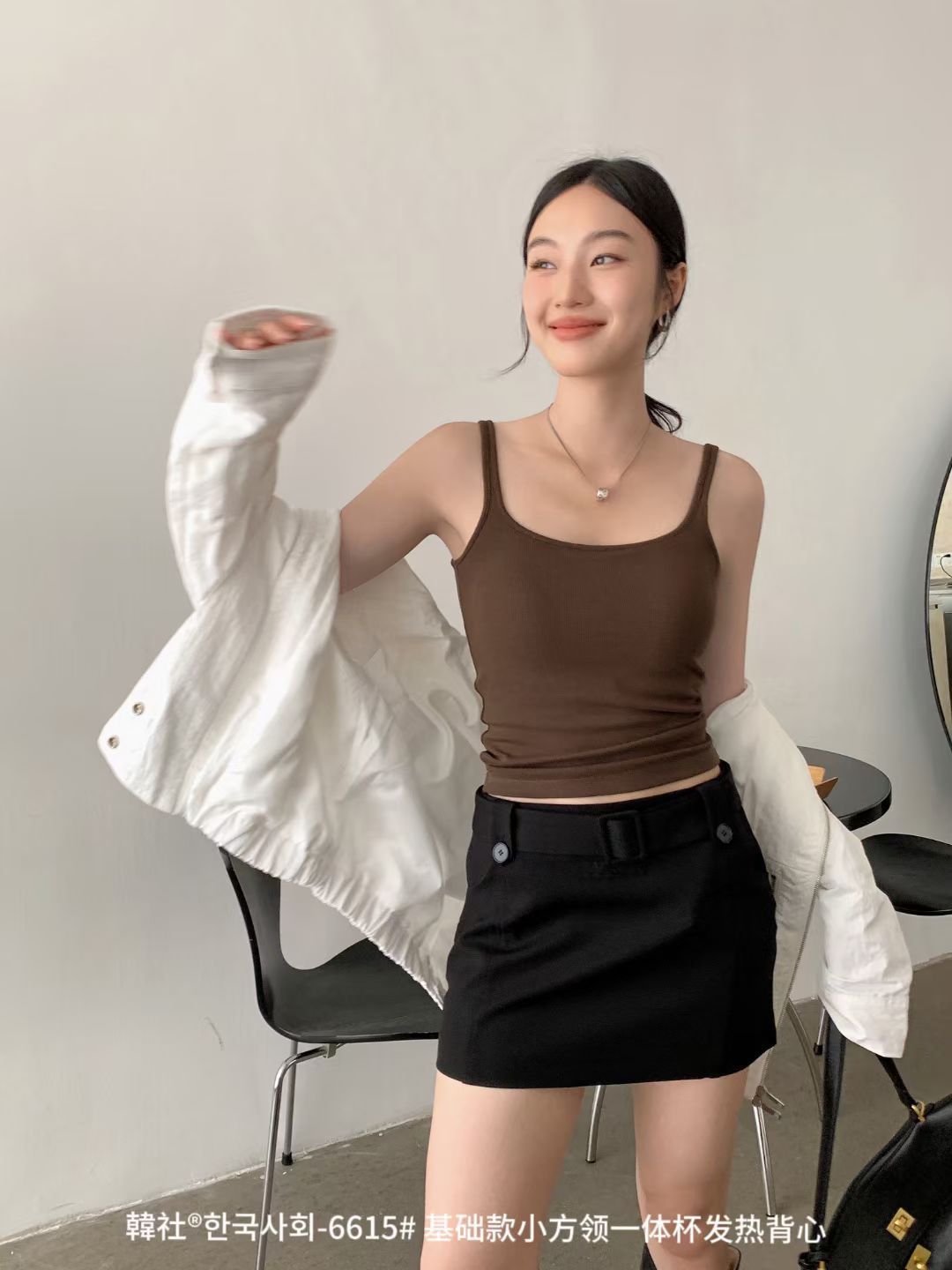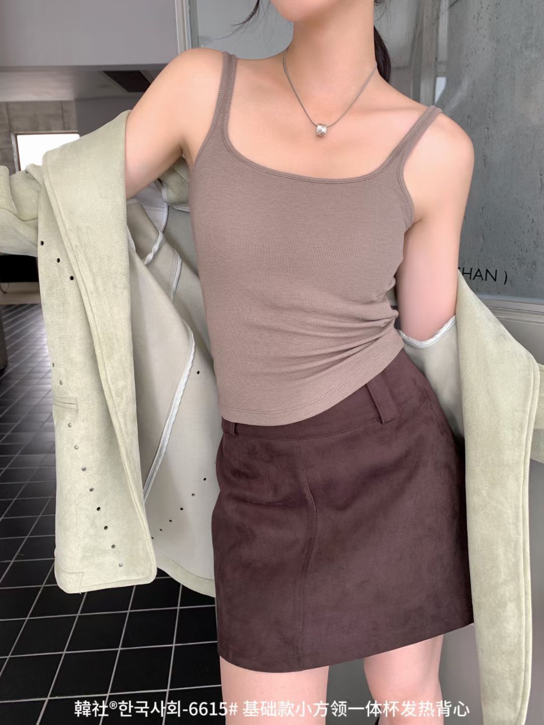 한국사회 6615 기본 스몰 스퀘어 칼라 통합컵 난방 조끼 여성 브랜딩 슬림-핏 슬리밍 올매치 슬링베이스