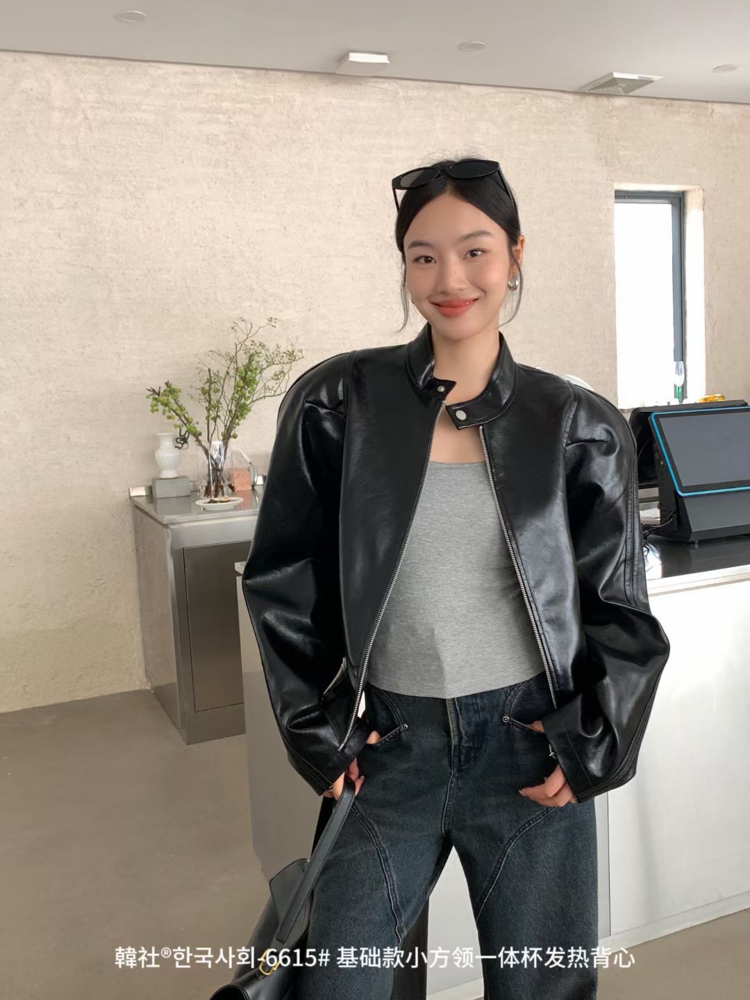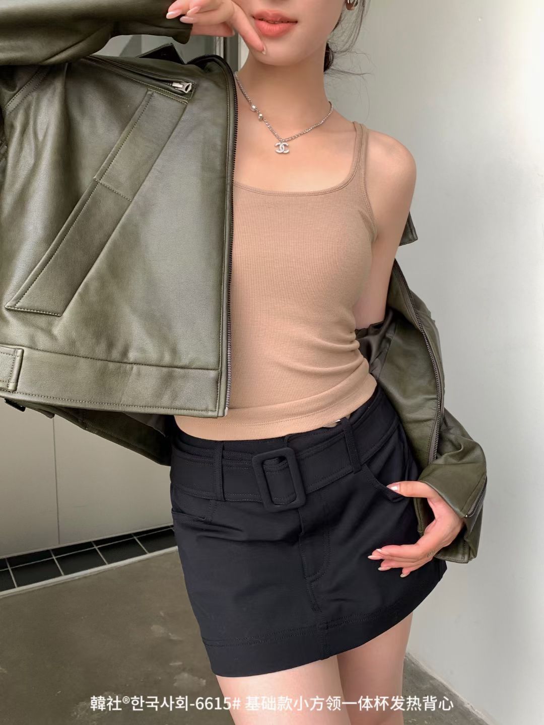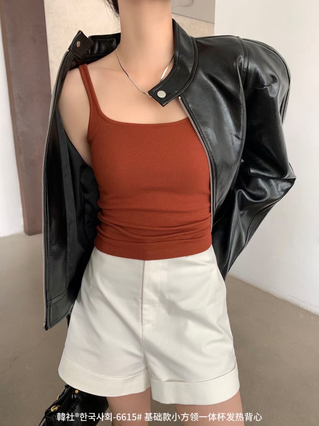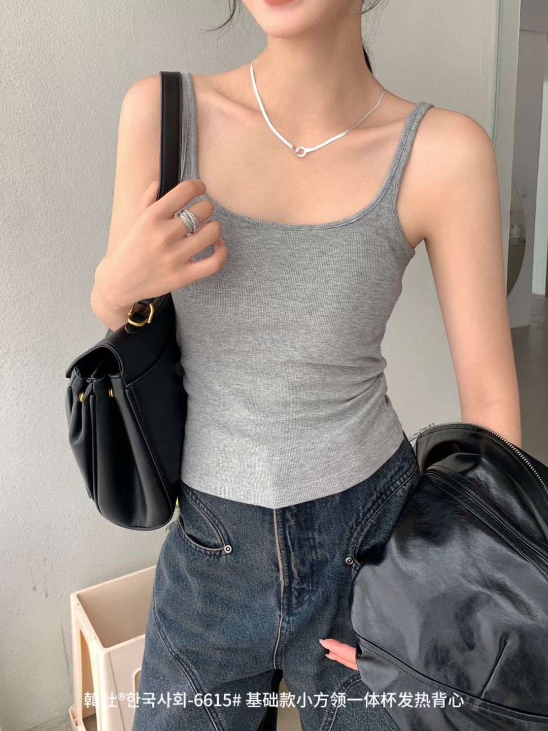 한국사회 6615 기본 스몰 스퀘어 칼라 통합컵 난방 조끼 여성 브랜딩 슬림-핏 슬리밍 올매치 슬링베이스