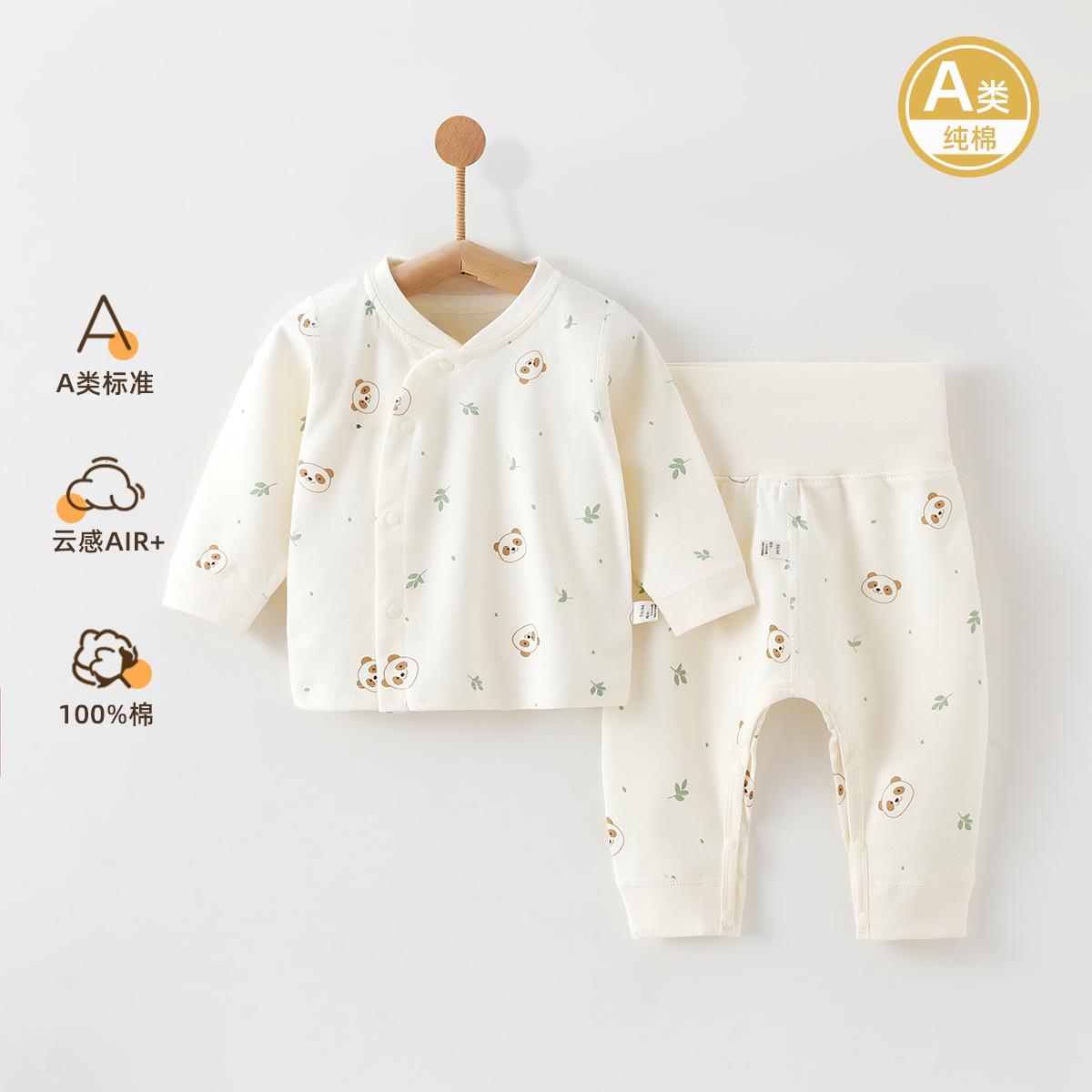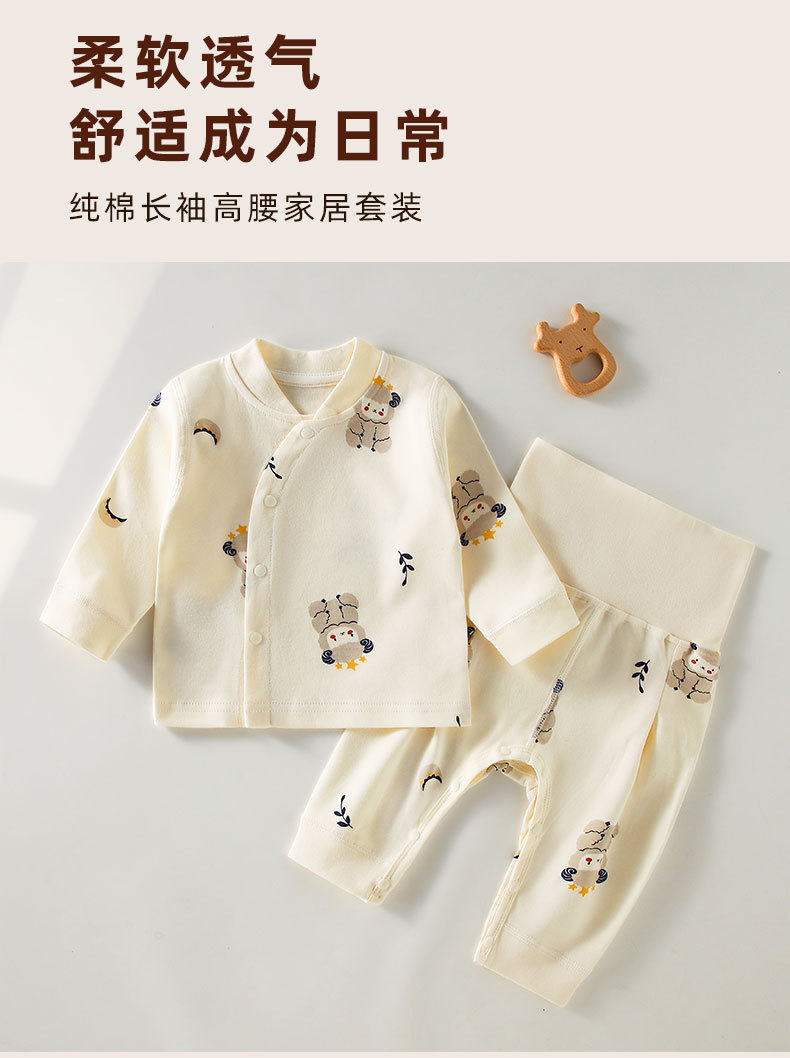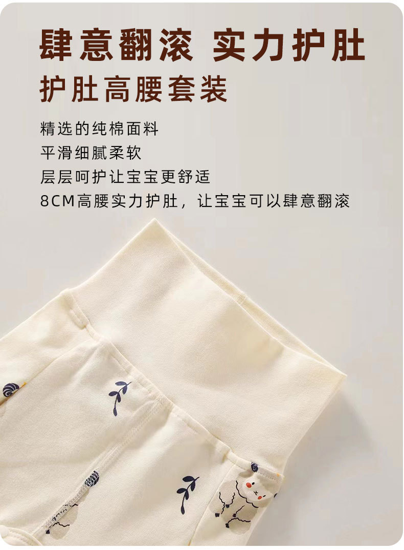 아기 옷 아기 속옷 세트 가을과 겨울 순면 높은 허리 배꼽 보호자 세트 어린이 가을 옷 가을 바지 홈 옷스토어 가기