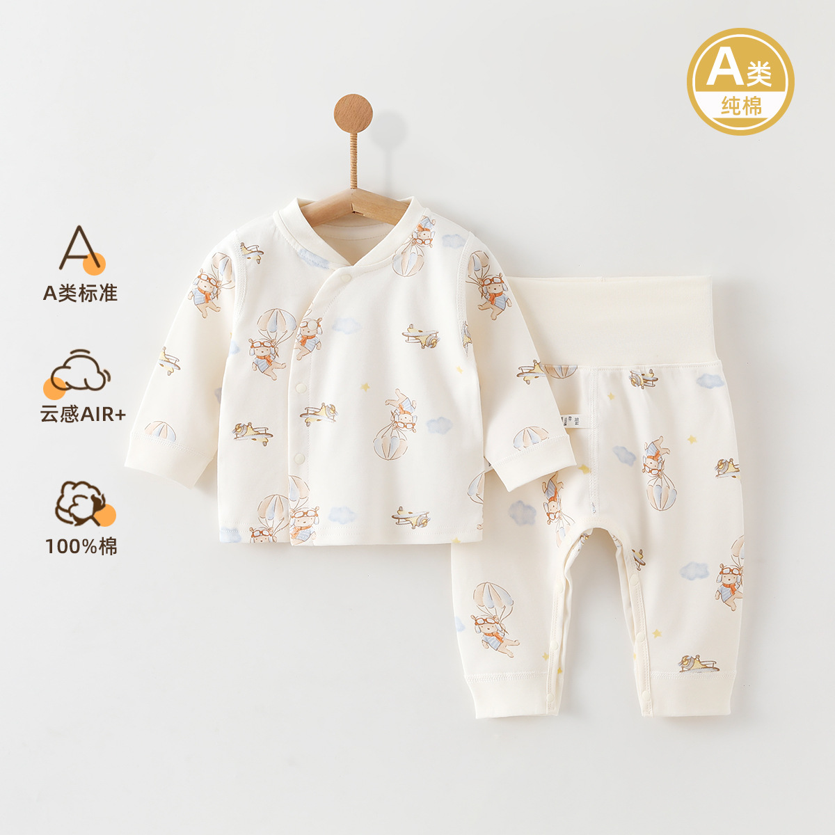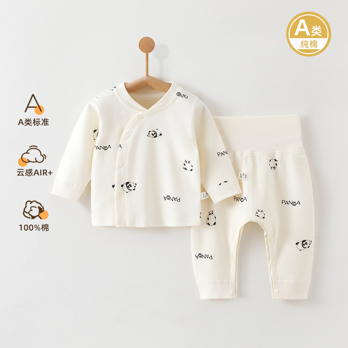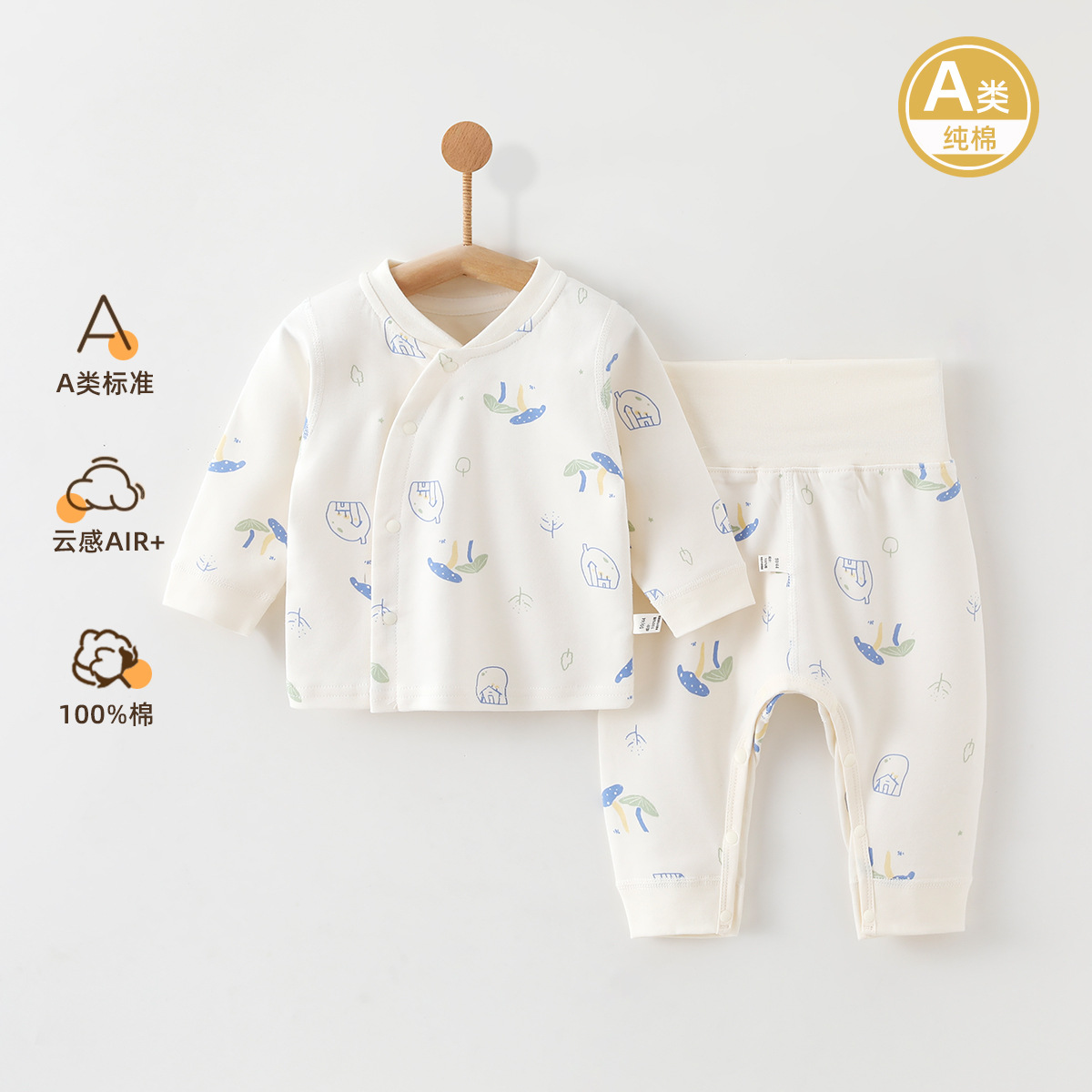 아기 옷 아기 속옷 세트 가을과 겨울 순면 높은 허리 배꼽 보호자 세트 어린이 가을 옷 가을 바지 홈 옷스토어 가기