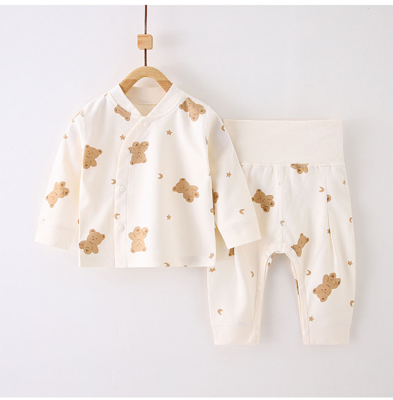 아기 옷 아기 속옷 세트 가을과 겨울 순면 높은 허리 배꼽 보호자 세트 어린이 가을 옷 가을 바지 홈 옷