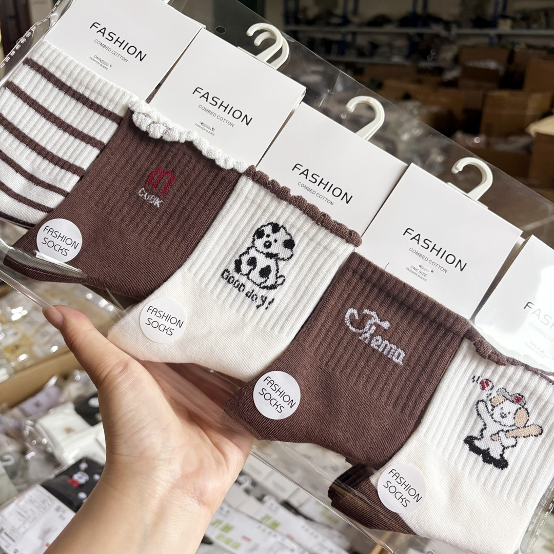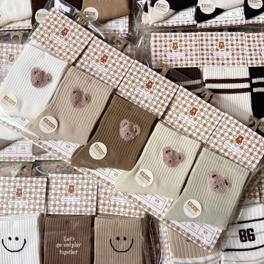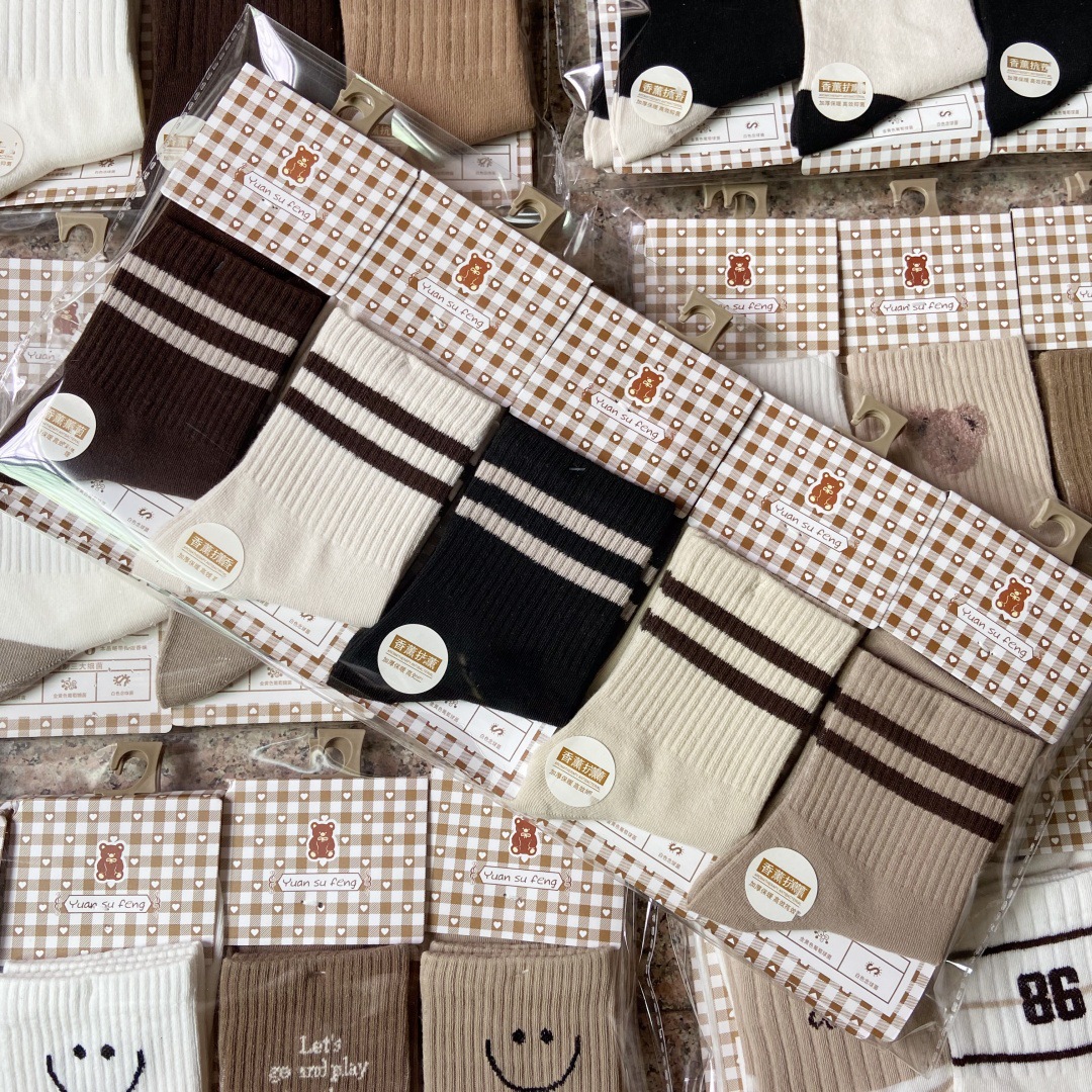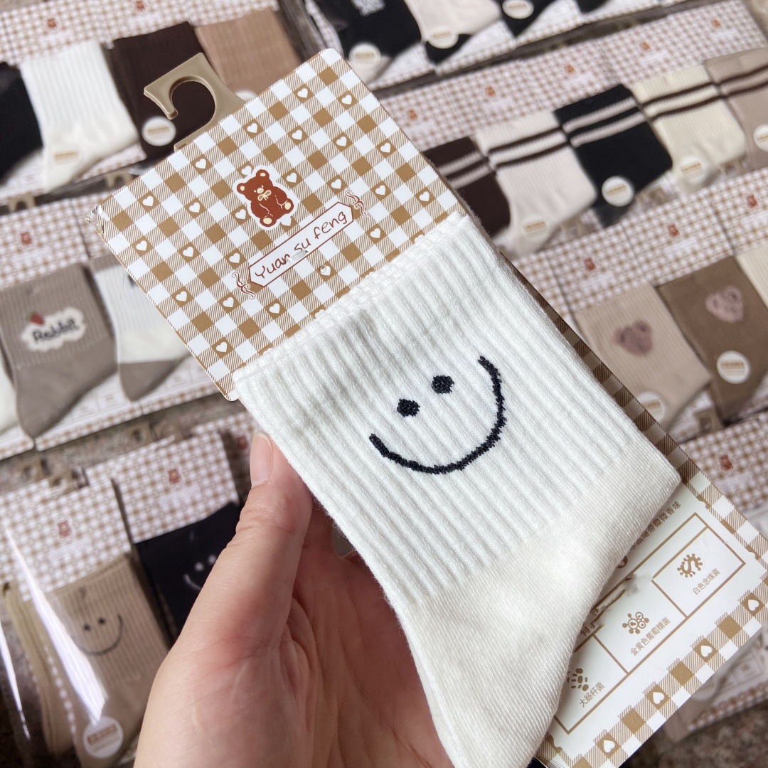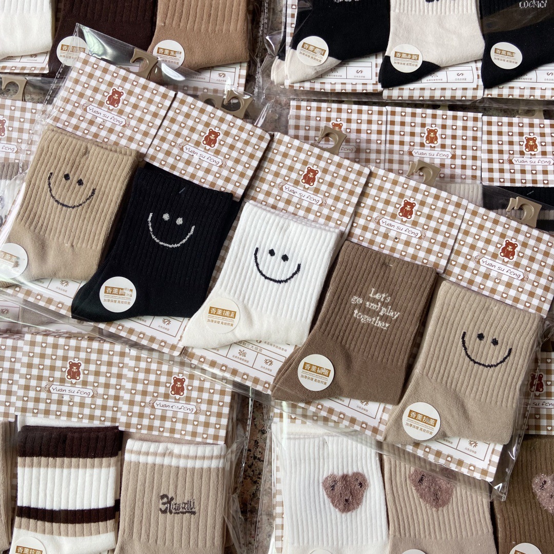 멋진 독립 카드 다크 브라운 스타일 여성 양말 가을과 겨울 스포츠 대학 스타일 스마일리 양말 여성용 코튼 양말스토어 가기
