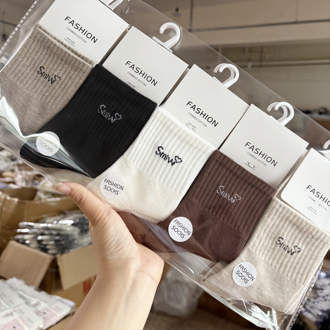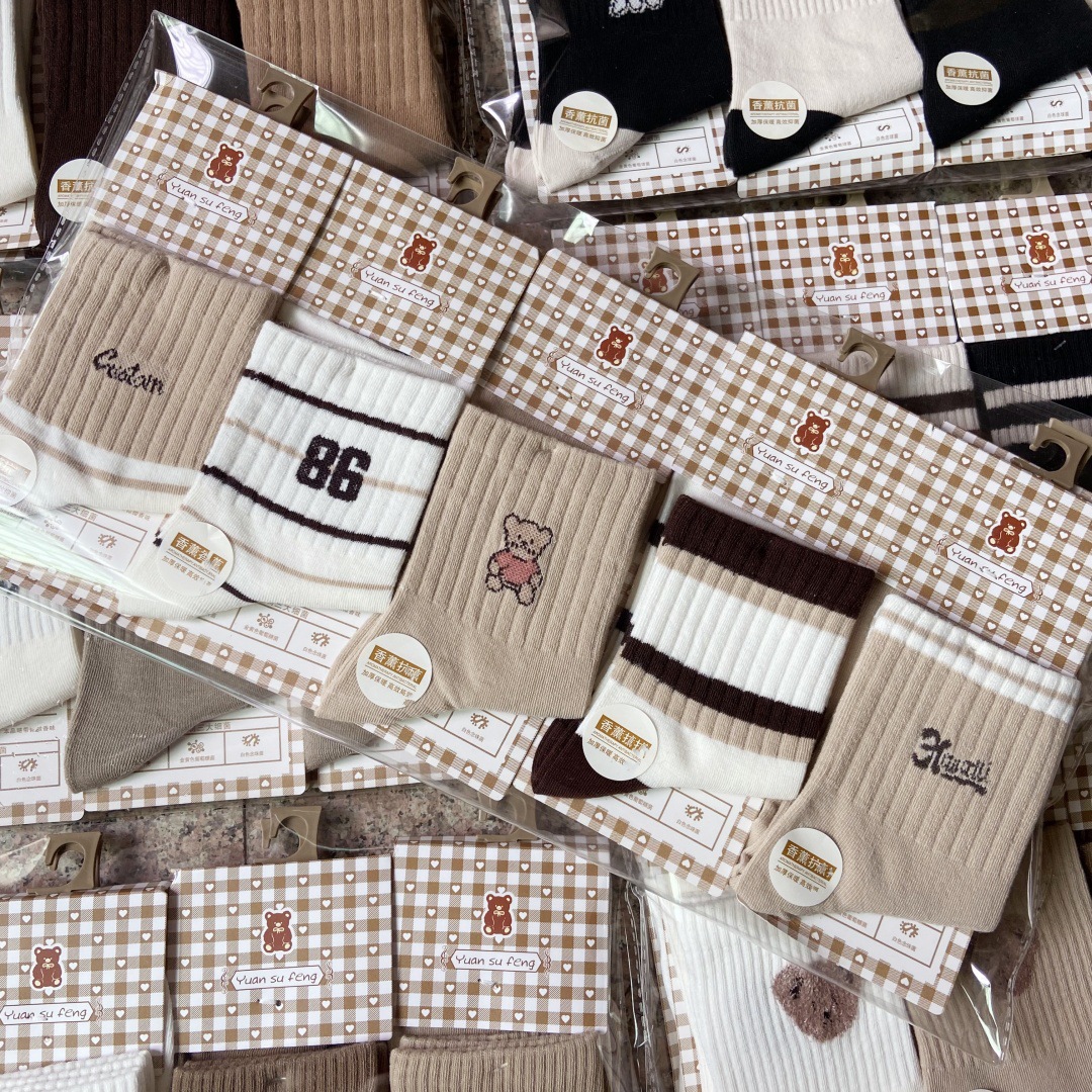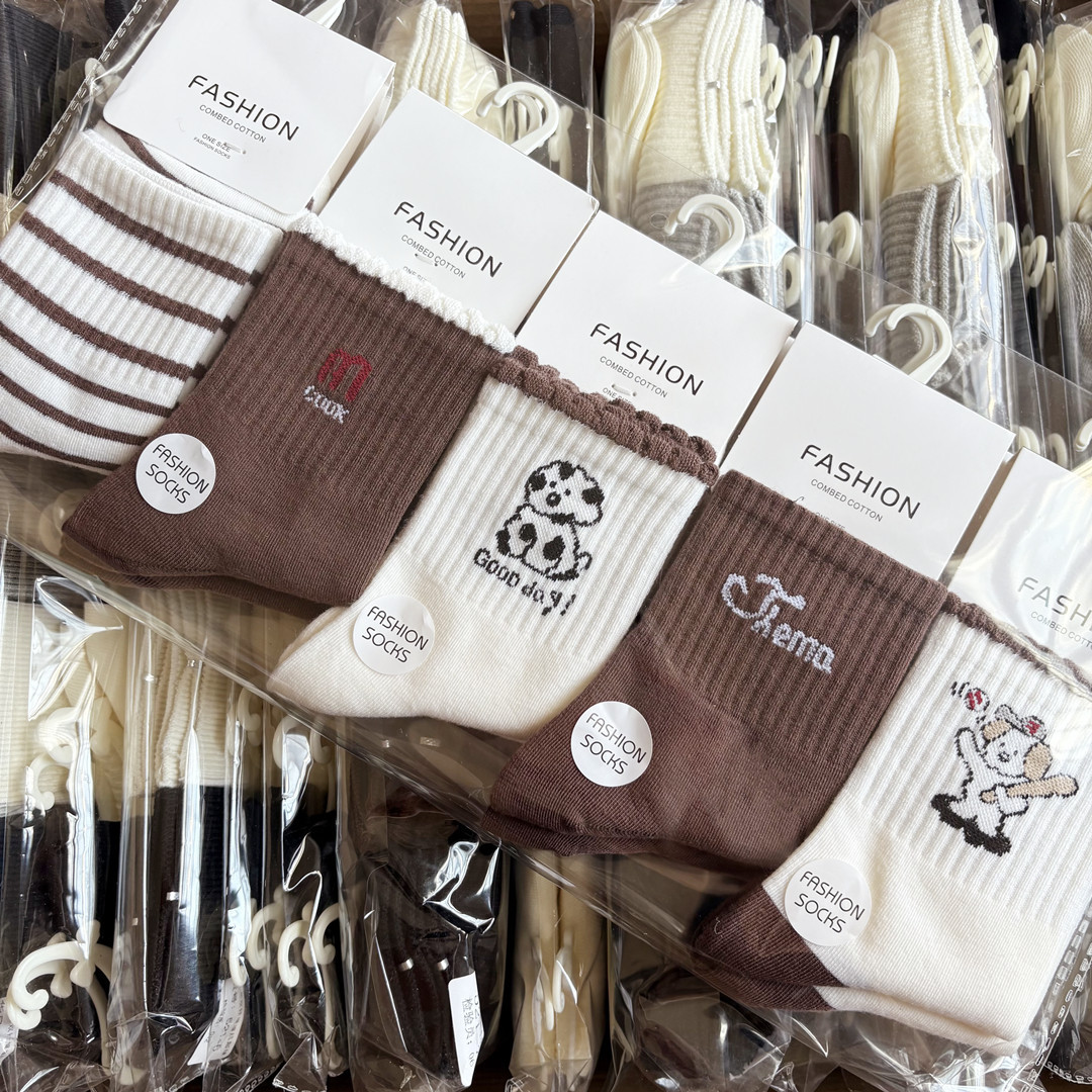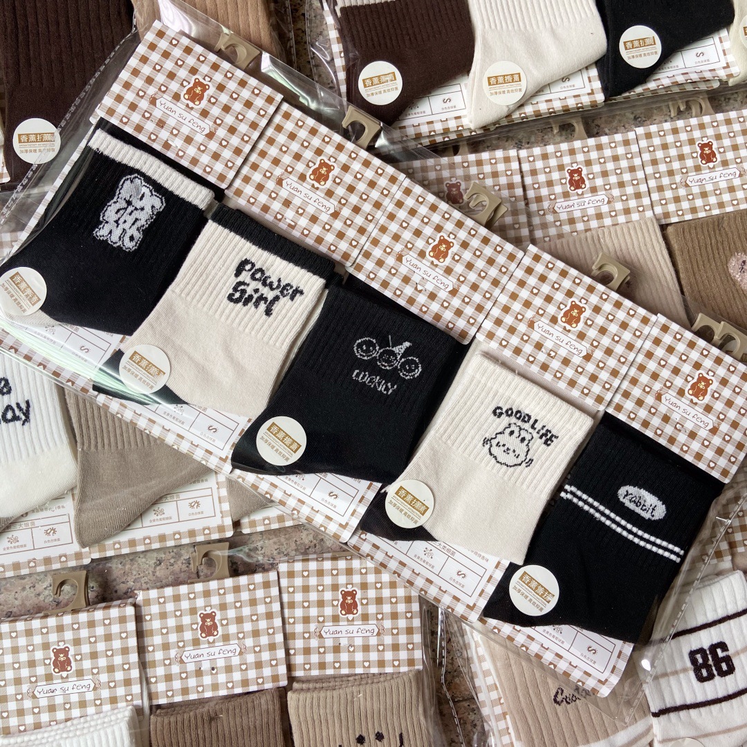 멋진 독립 카드 다크 브라운 스타일 여성 양말 가을과 겨울 스포츠 대학 스타일 스마일리 양말 여성용 코튼 양말스토어 가기