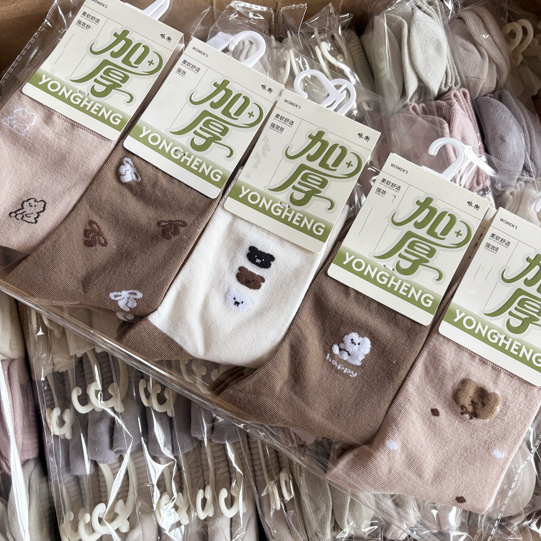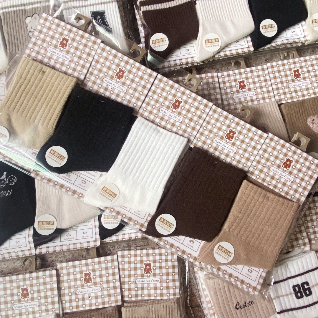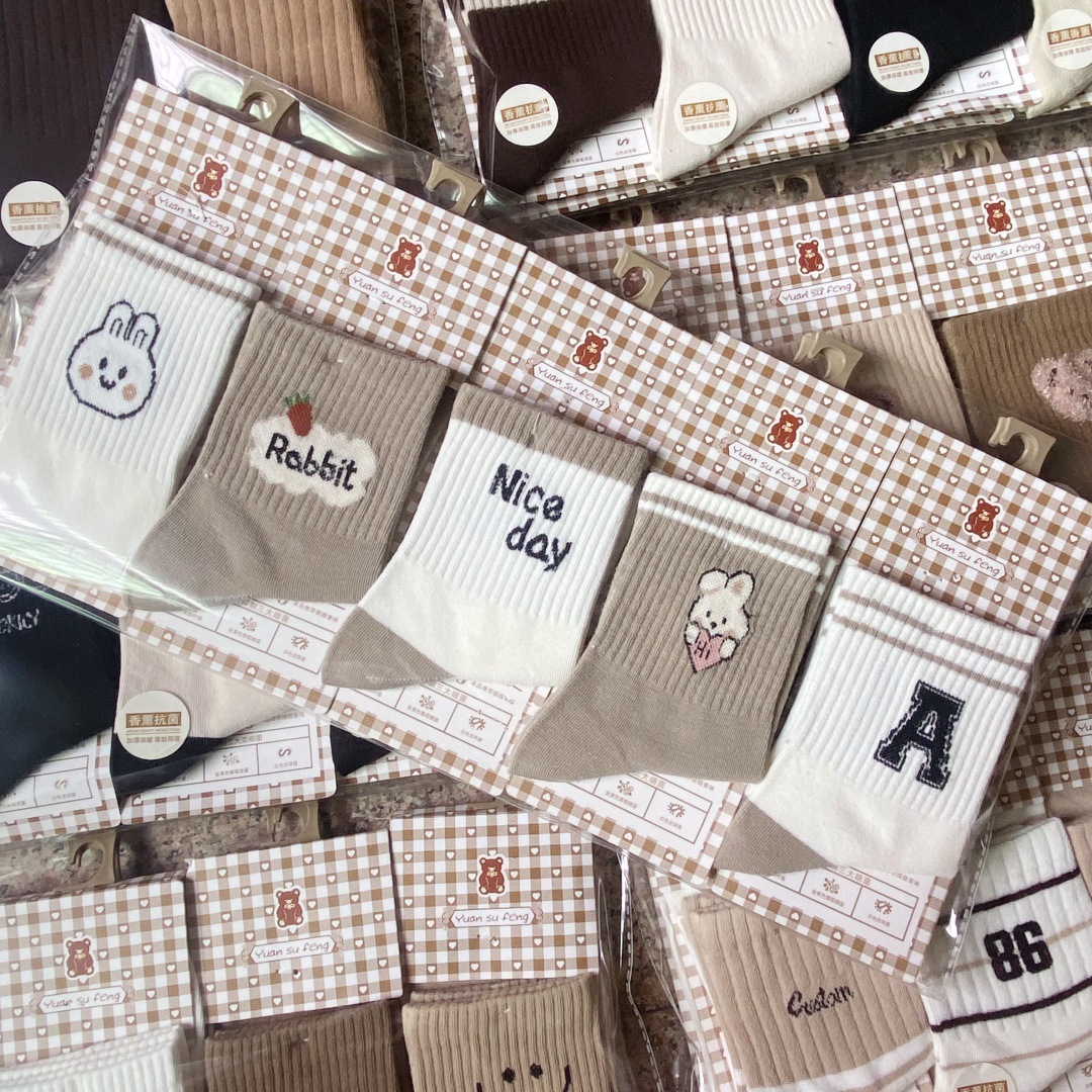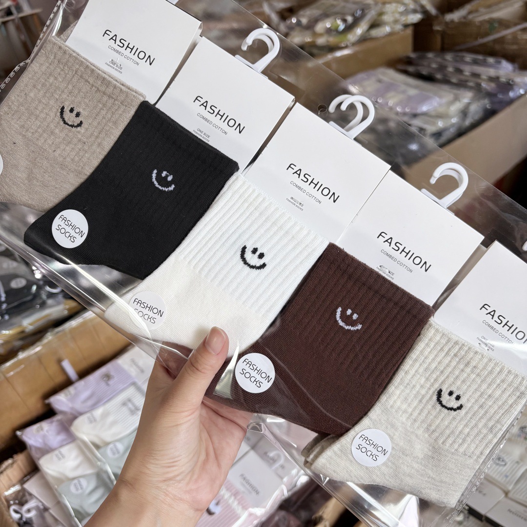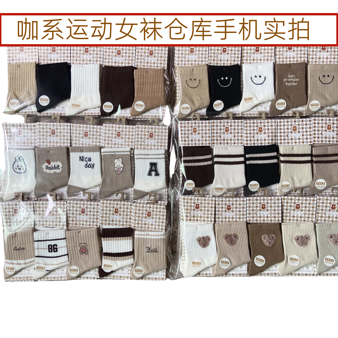 멋진 독립 카드 다크 브라운 스타일 여성 양말 가을과 겨울 스포츠 대학 스타일 스마일리 양말 여성용 코튼 양말스토어 가기