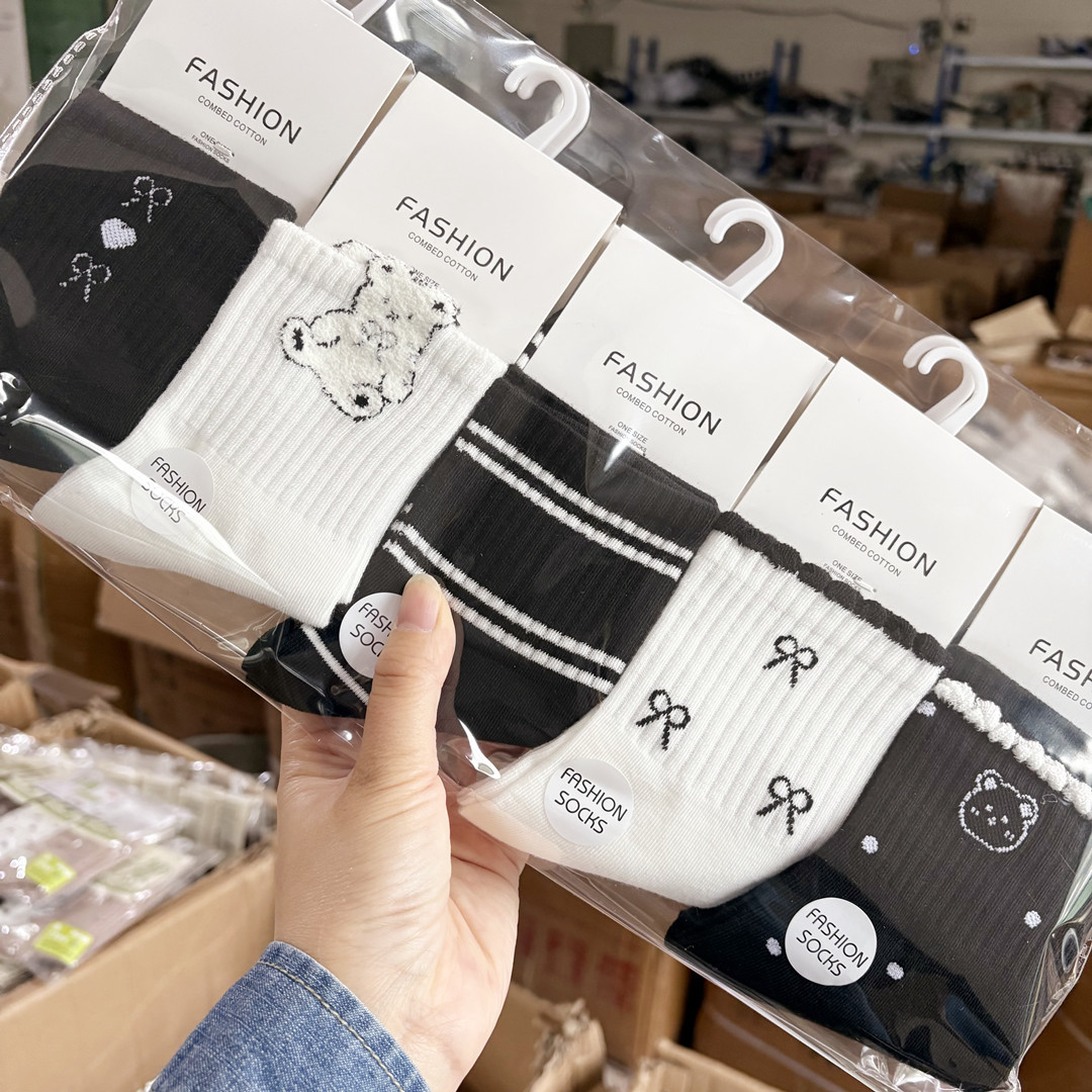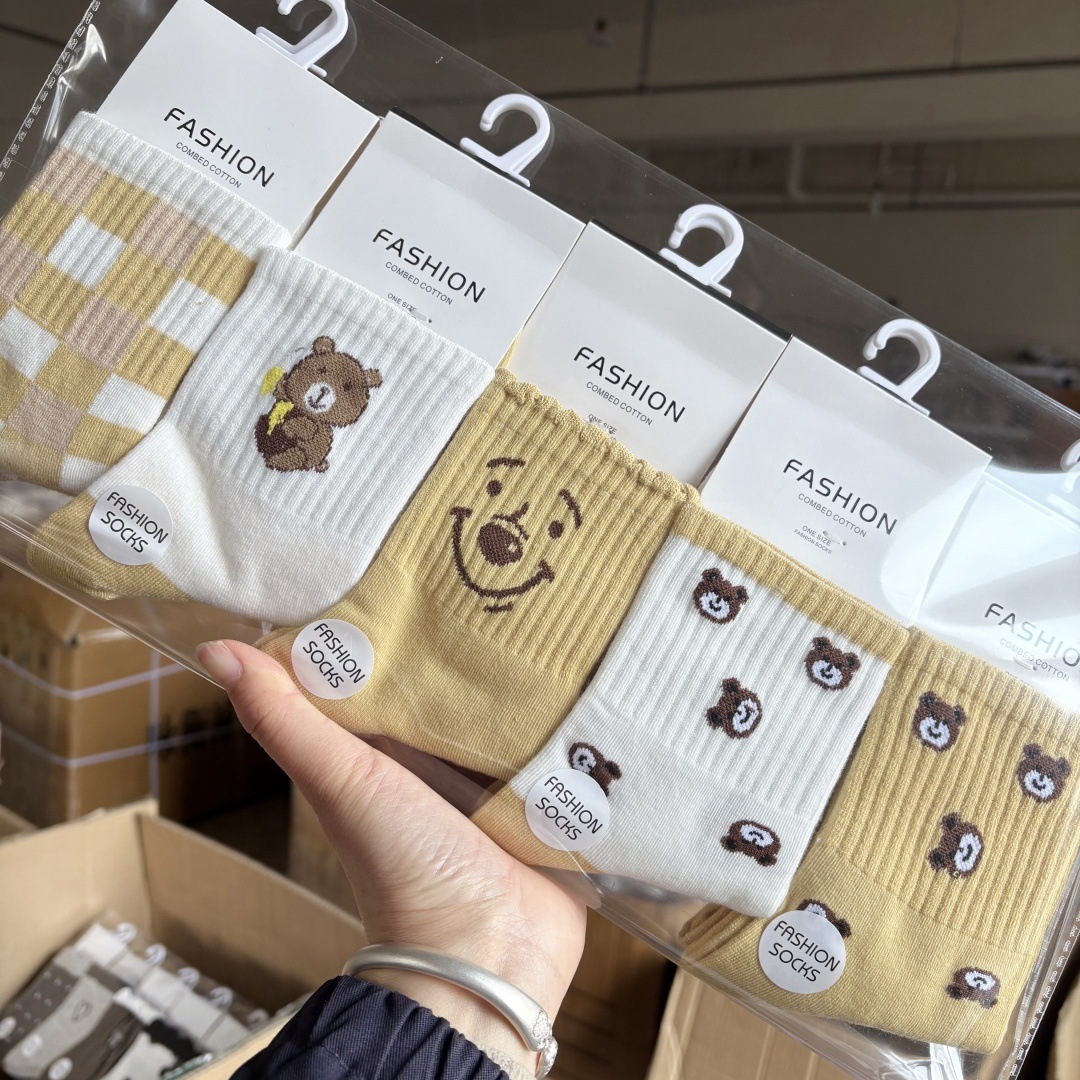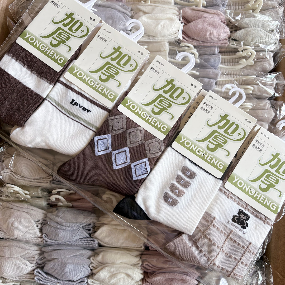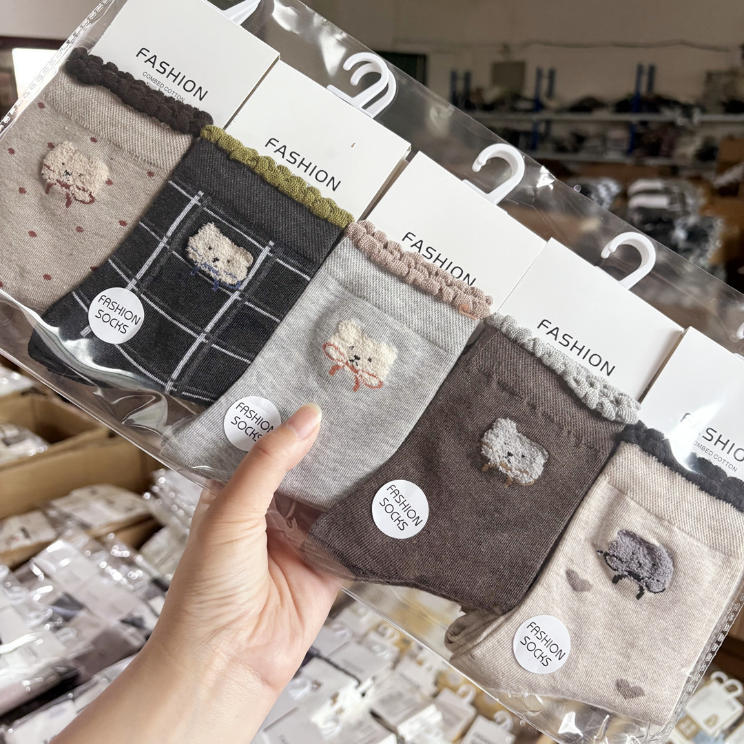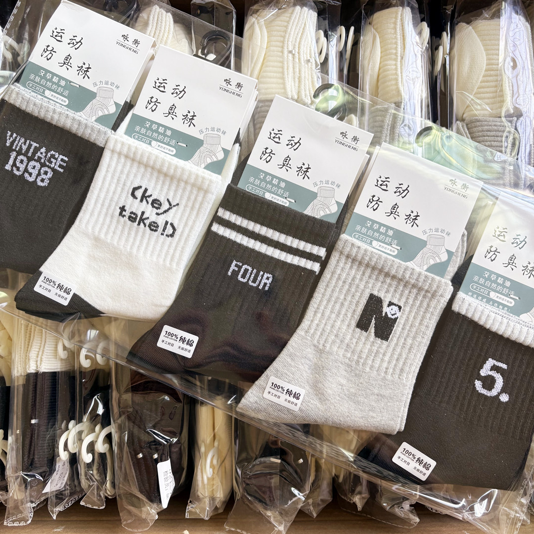 멋진 독립 카드 다크 브라운 스타일 여성 양말 가을과 겨울 스포츠 대학 스타일 스마일리 양말 여성용 코튼 양말스토어 가기