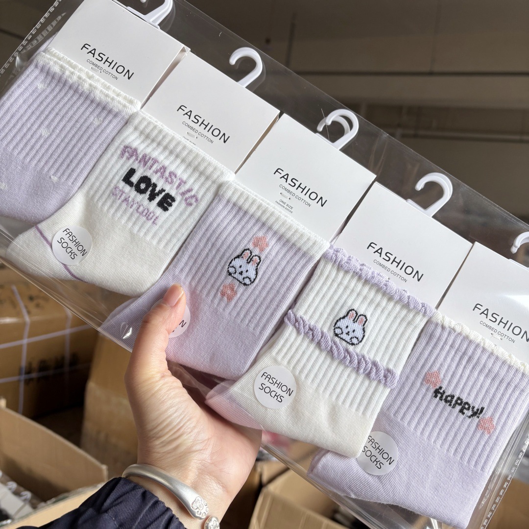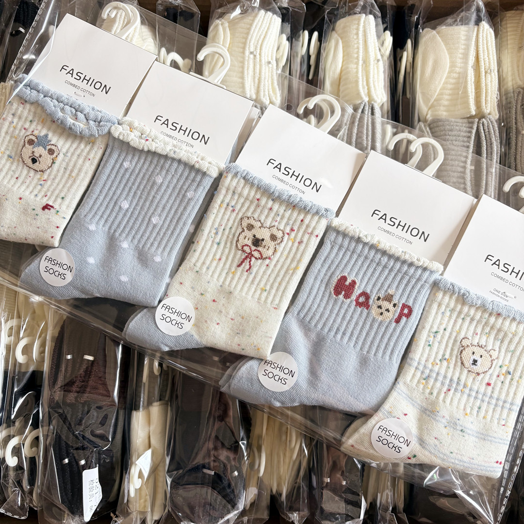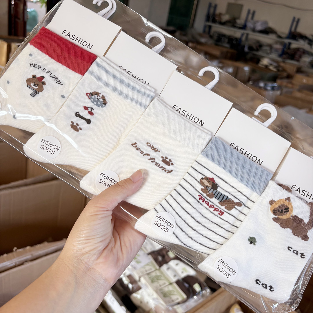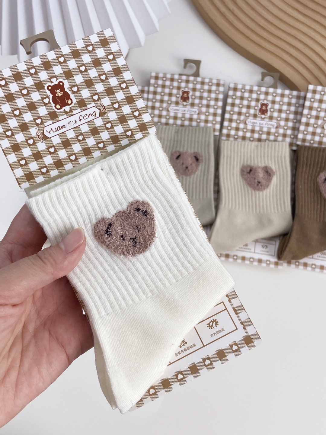 멋진 독립 카드 다크 브라운 스타일 여성 양말 가을과 겨울 스포츠 대학 스타일 스마일리 양말 여성용 코튼 양말스토어 가기