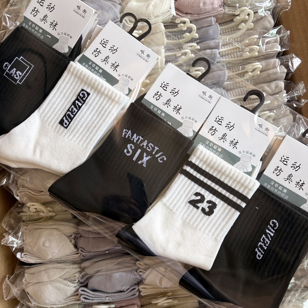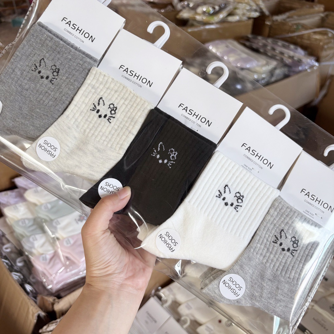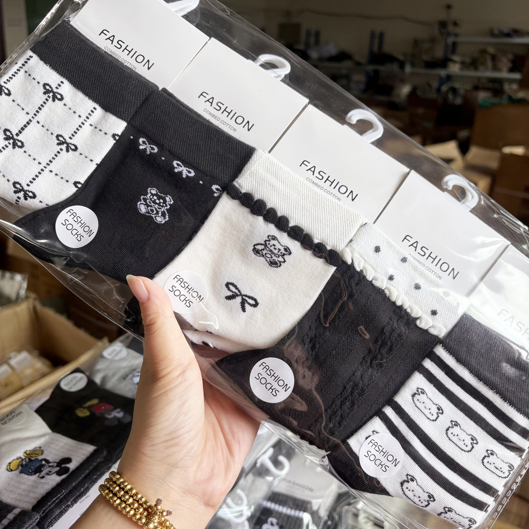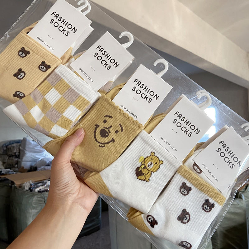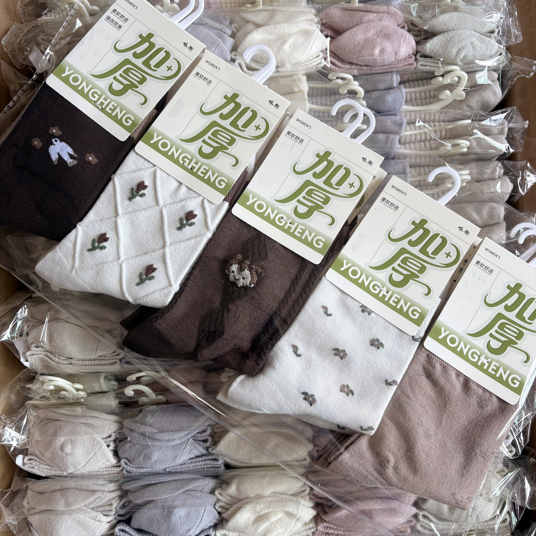 멋진 독립 카드 다크 브라운 스타일 여성 양말 가을과 겨울 스포츠 대학 스타일 스마일리 양말 여성용 코튼 양말스토어 가기
