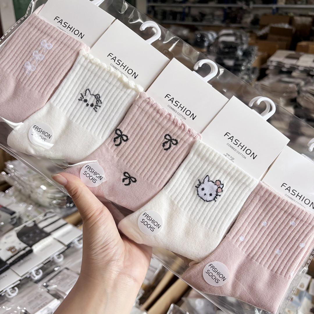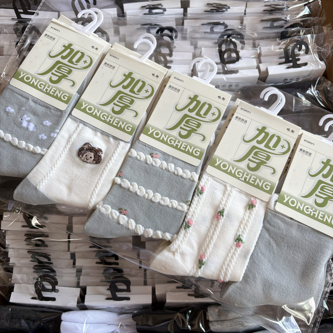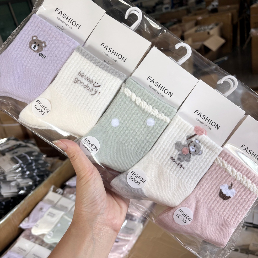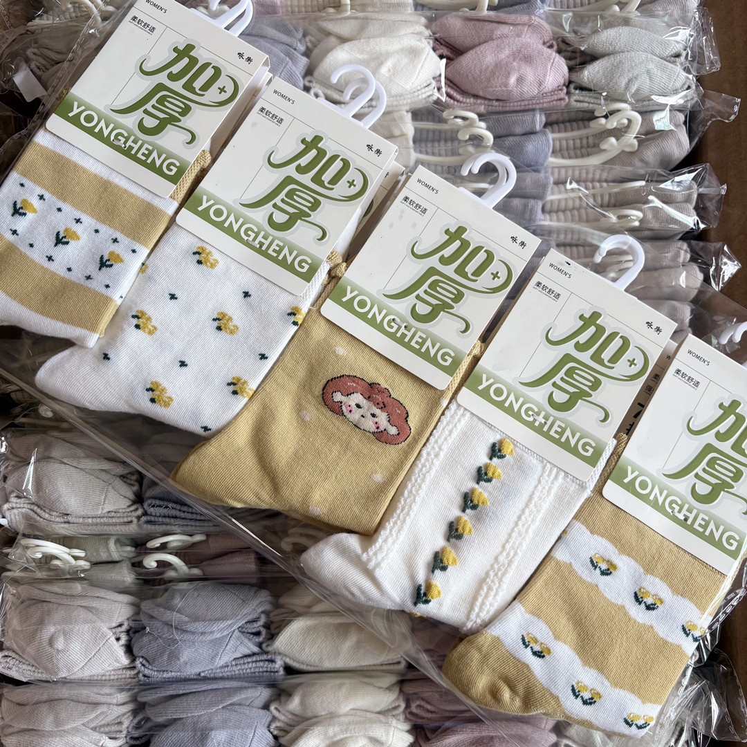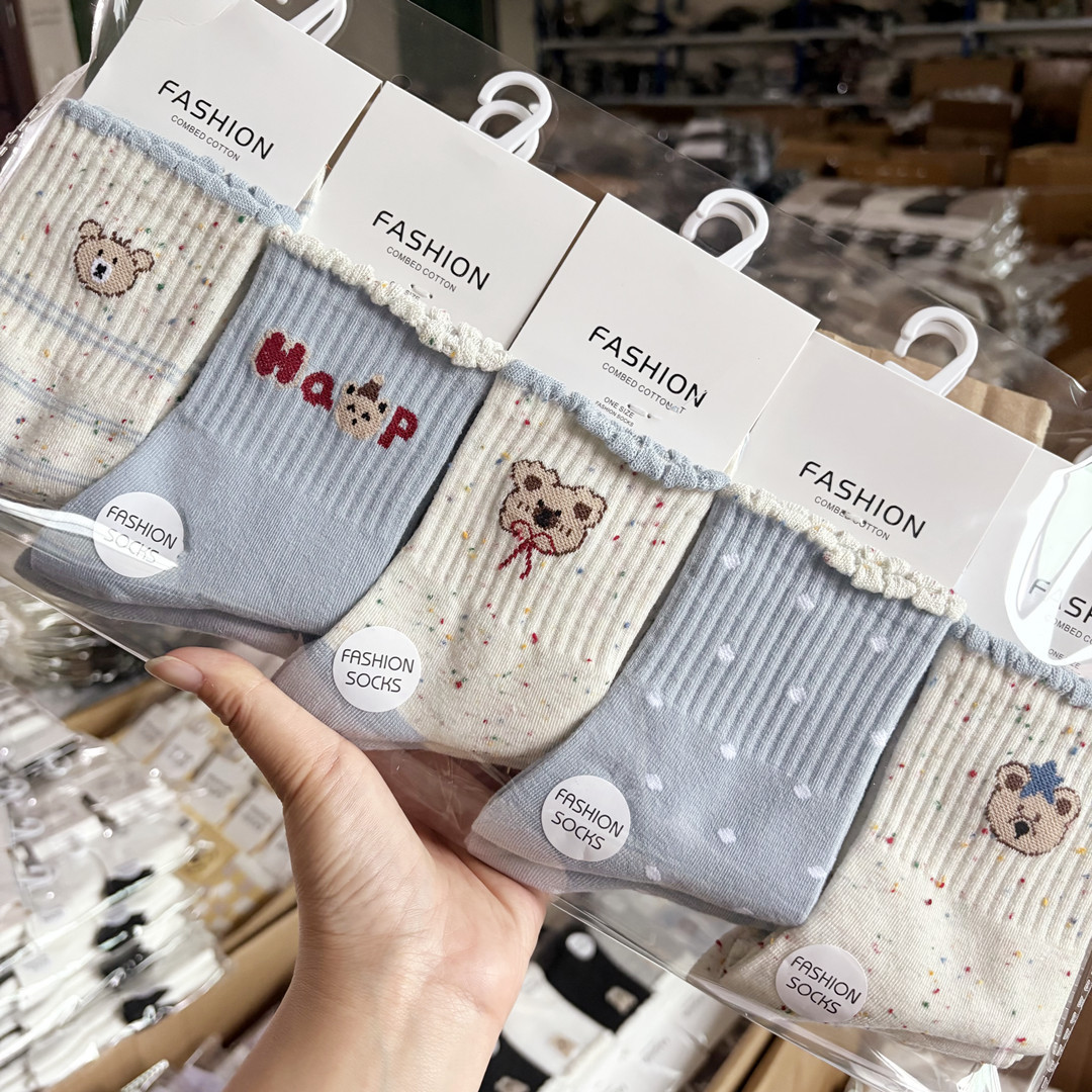 멋진 독립 카드 다크 브라운 스타일 여성 양말 가을과 겨울 스포츠 대학 스타일 스마일리 양말 여성용 코튼 양말스토어 가기
