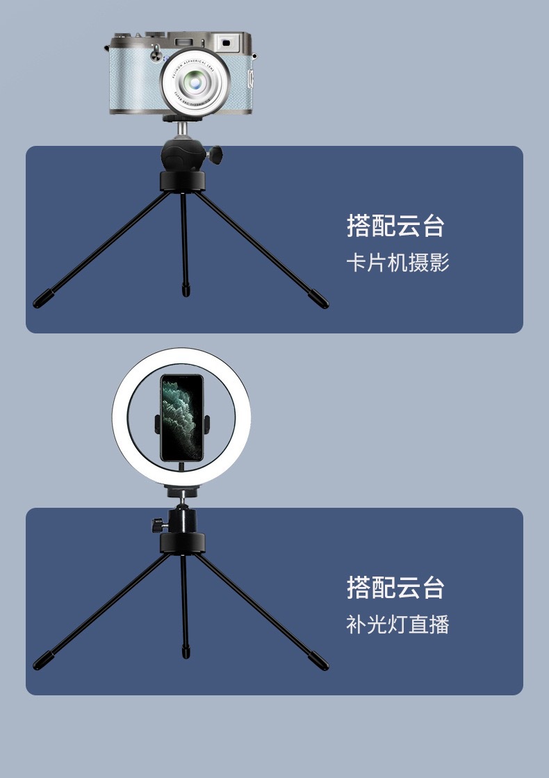 1/4 인터페이스 총 길이 14cm19cm 휴대폰 카메라 보조 조명 셀카 데스크탑 삼각대 금속 휴대폰 스탠드