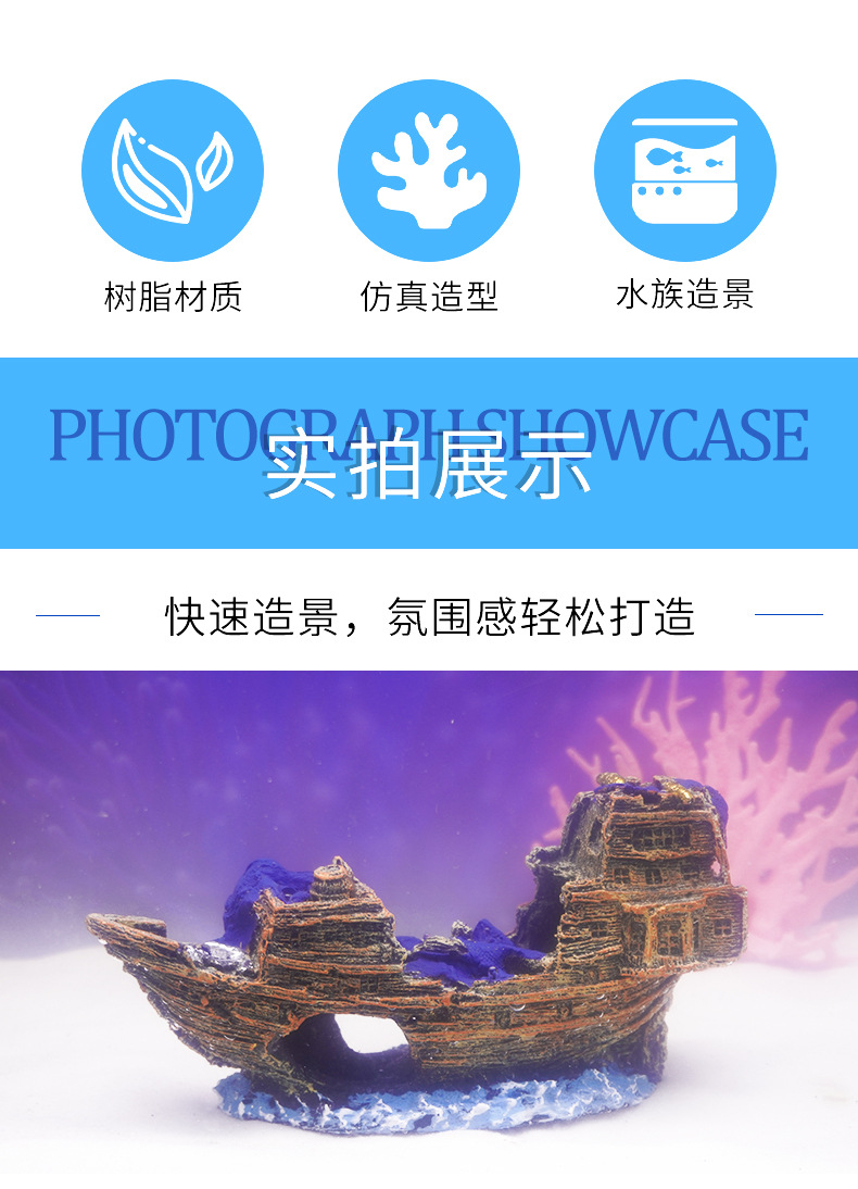시뮬레이션 보트 탈출 하우스 수족관 풍경 장식 오래된 물고기 탱크 풍경 장식품 해적 선박 난파 낚시 보트 잔해스토어 가기