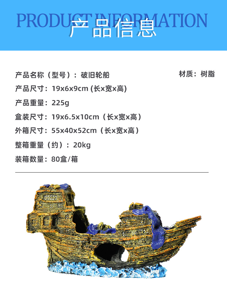 시뮬레이션 보트 탈출 하우스 수족관 풍경 장식 오래된 물고기 탱크 풍경 장식품 해적 선박 난파 낚시 보트 잔해