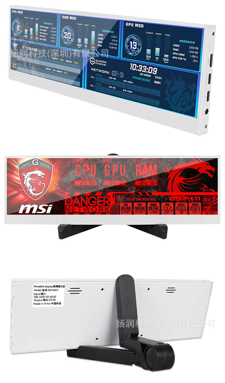 특수 14 "4K 초 고화질 스트립 휴대용 디스플레이 유형-C 1 라인 컴퓨터 섀시 모니터링 서브 화면